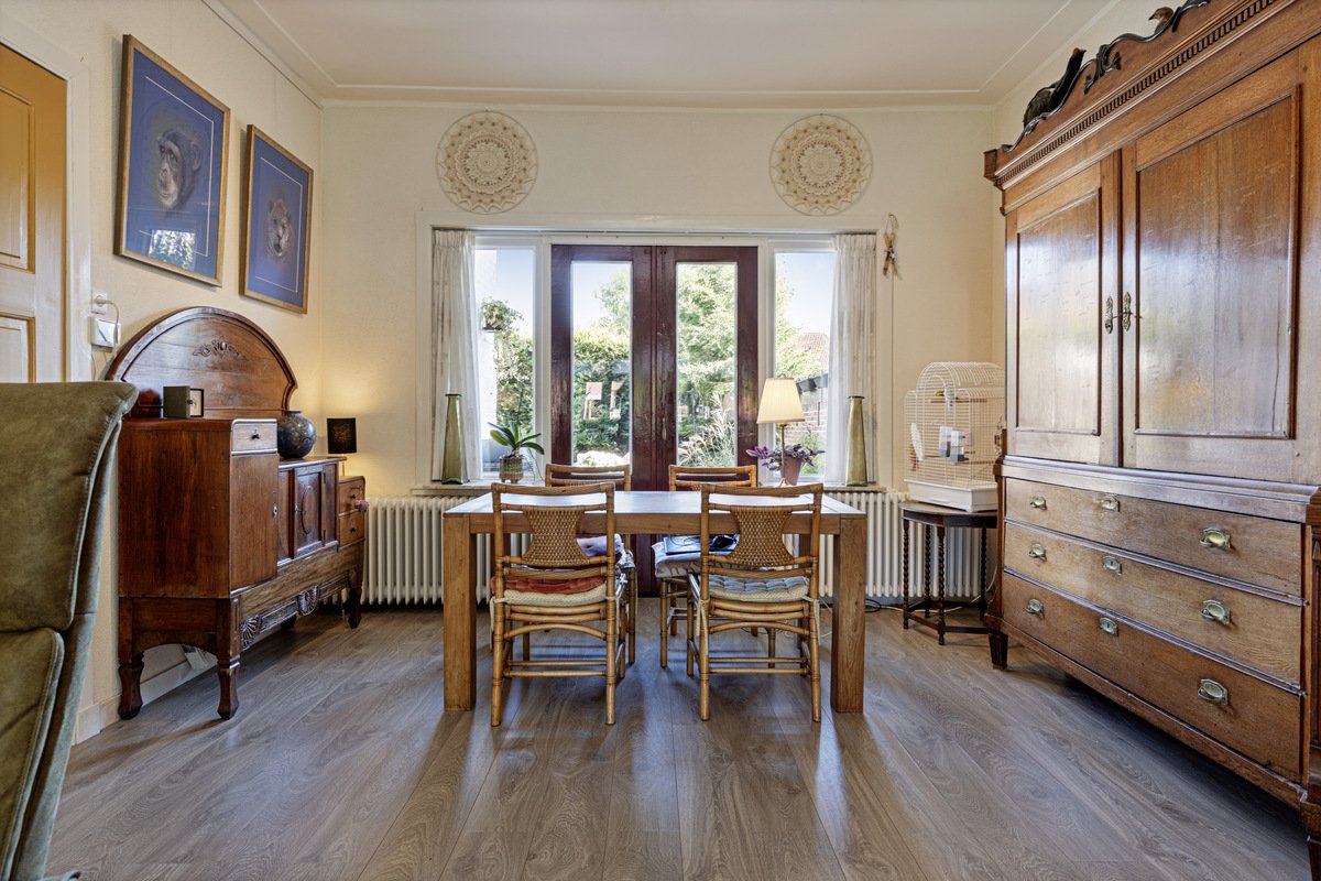 Op schitterende locatie in centrum en met vrij uitzicht over vijverpartij richting Hertenkamp en Wilkens fontein gelegen goed onderhouden sfeervolle, karakteristieke helft van herenhuis met aangebouwde garage en verzorgde besloten tuin.