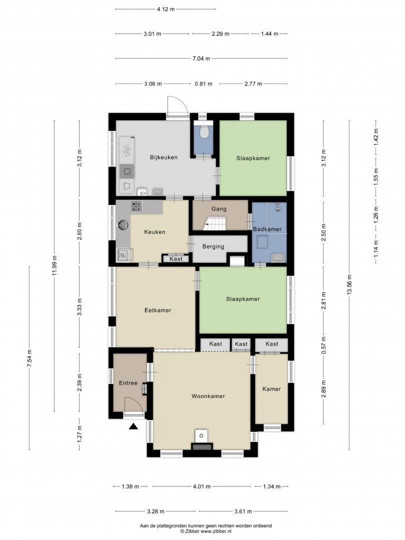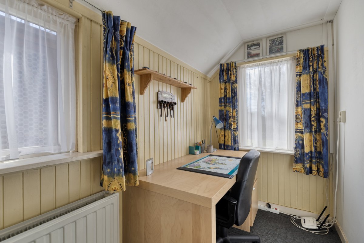 Begane grond: entree/hal en toegang tot de Z-vormige woonkamer ca 25m² met laminaatvloer en houtkachel, studeerkamer/kantoor ca.2.90x1.35m met vaste kast, slaapkamer ca.3.50x2.80m met toegang tot de badkamer voorzien van douchecabine en wastafel, keuken ca.3.05x2.60m met vaste kast en toegang tot de berging/inloopkast, bijkeuken (plv) ca.3.10x3.10 met achterentree, hangend toilet, slaapkamer ca.3.10x2.75m, tussenhal met toegang tot de badkamer en de trapopgang naar de 1e verdieping.