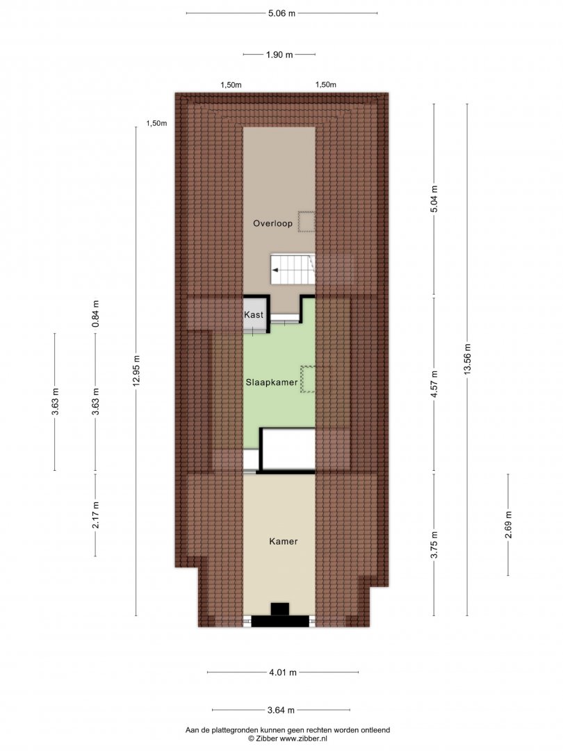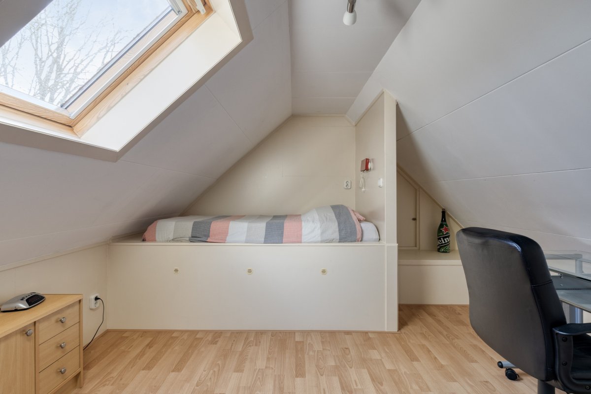 1e Verdieping: ruime overloop, zolderslaapkamer en een zolderruimte.