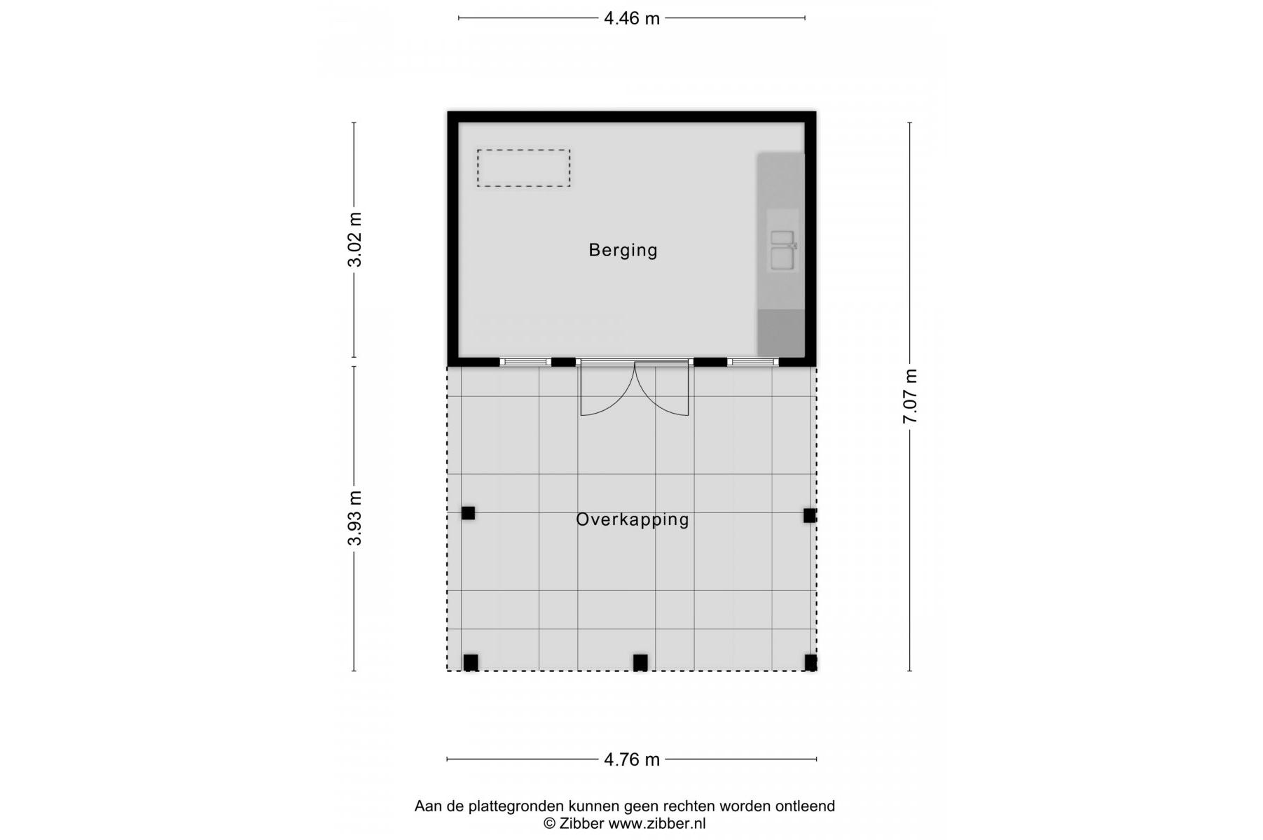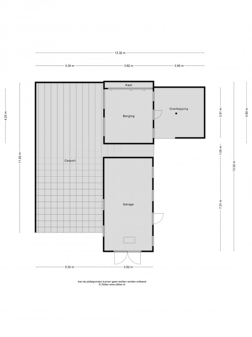 Vrijstaande stenen garage ca.7.30x3.80m met een zolderruimte en een dubbel carport geschikt voor 2 auto's. Vrijstaande stenen berging ca.3.90x3.80m.