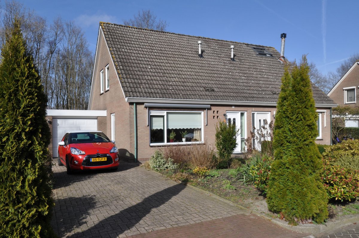In kindvriendelijke omgeving op ruim perceel aan bossingel gelegen goed onderhouden helft van een dubbel woonhuis (bj ca.1976) met aangebouwde garage en een beschutte tuin met schuur en veranda (opp.ca.397m²).