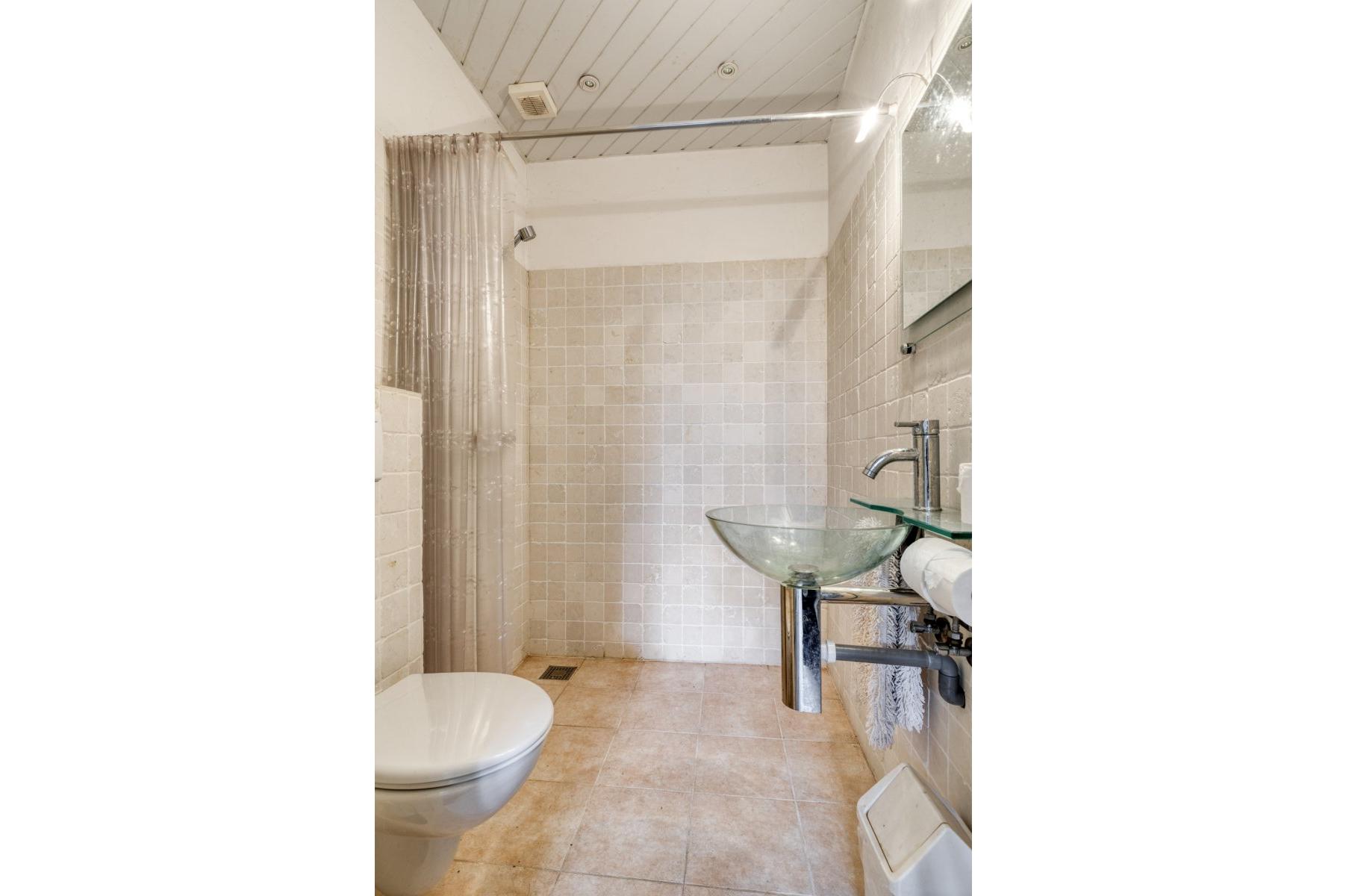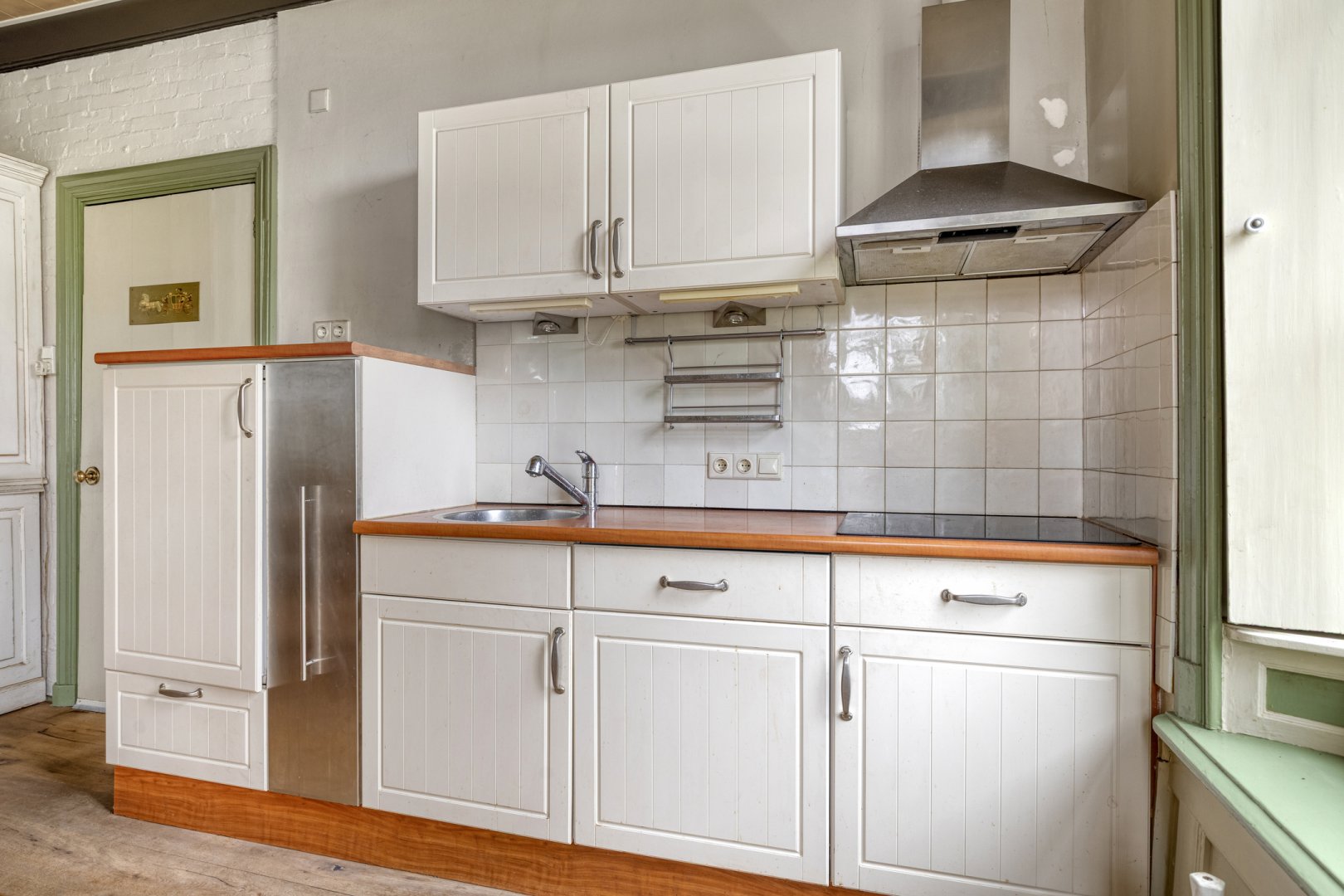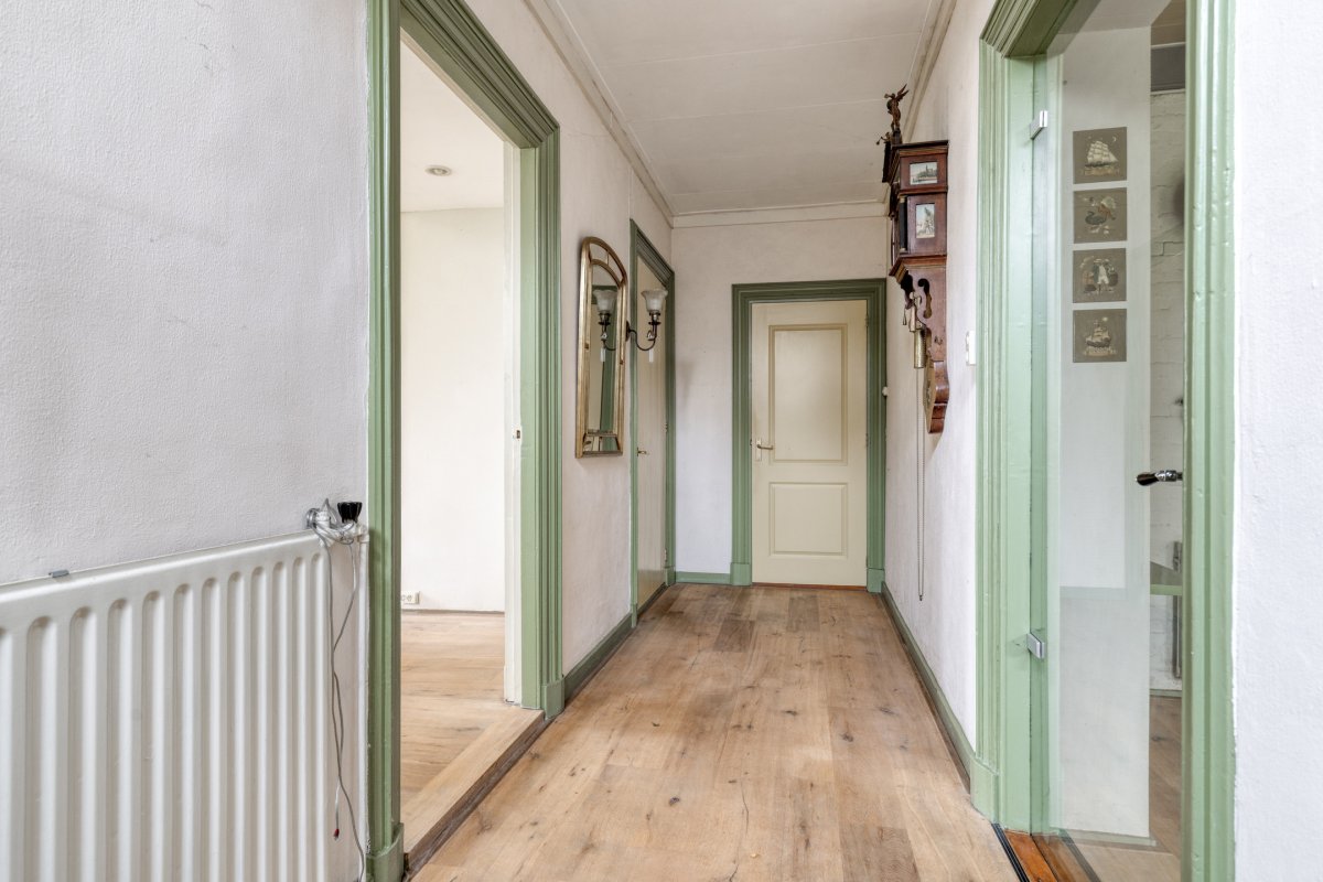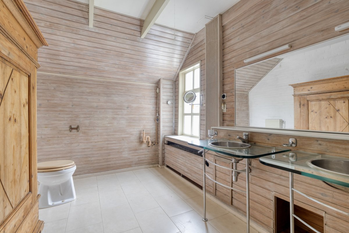 De woonkeuken ca.5.90x3.75m met keukenblok voorzien van een keramische gaskookplaat, rvs-wasemkap, koelkast en vaatwasser (Franse plankenvloer), verder een opkamer ca.4.65x2.95m, royale badkamer ca.4.85x2.70m met inloop douche, toilet en dubbele wastafel.