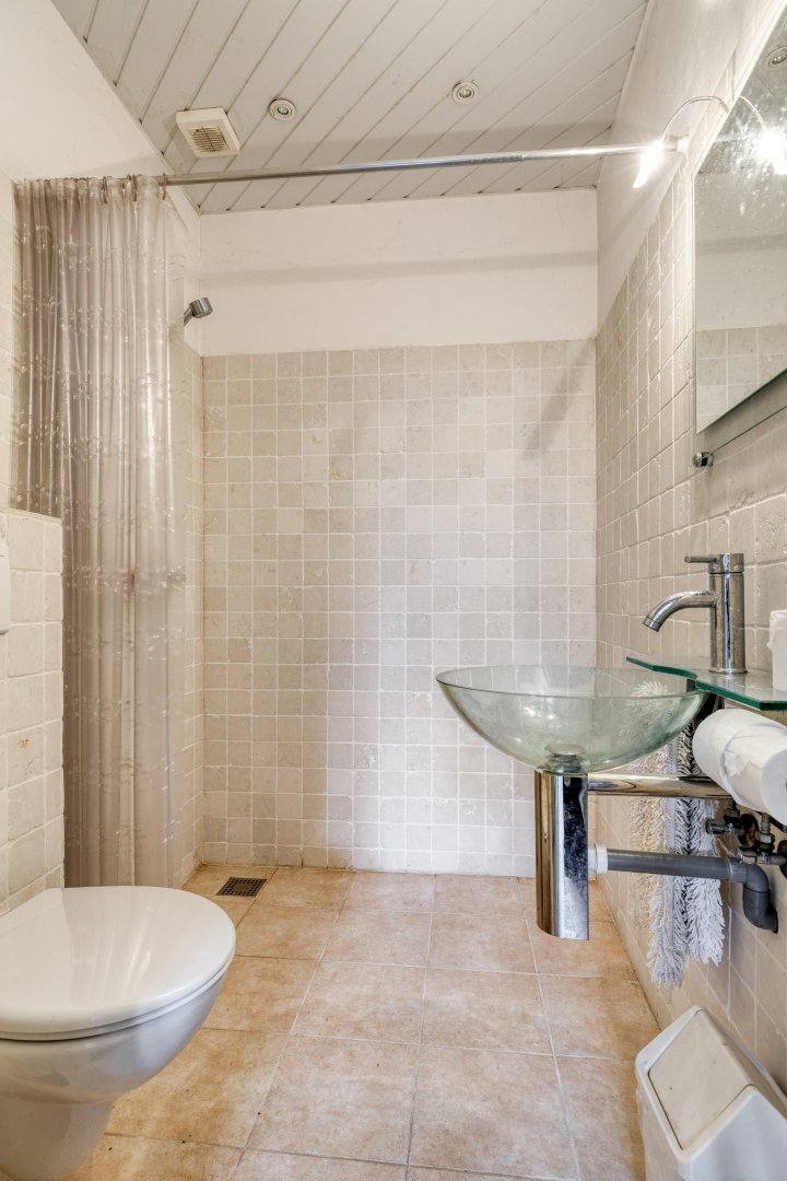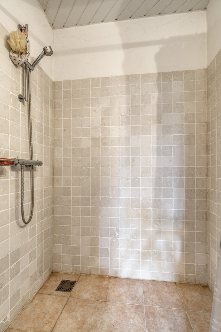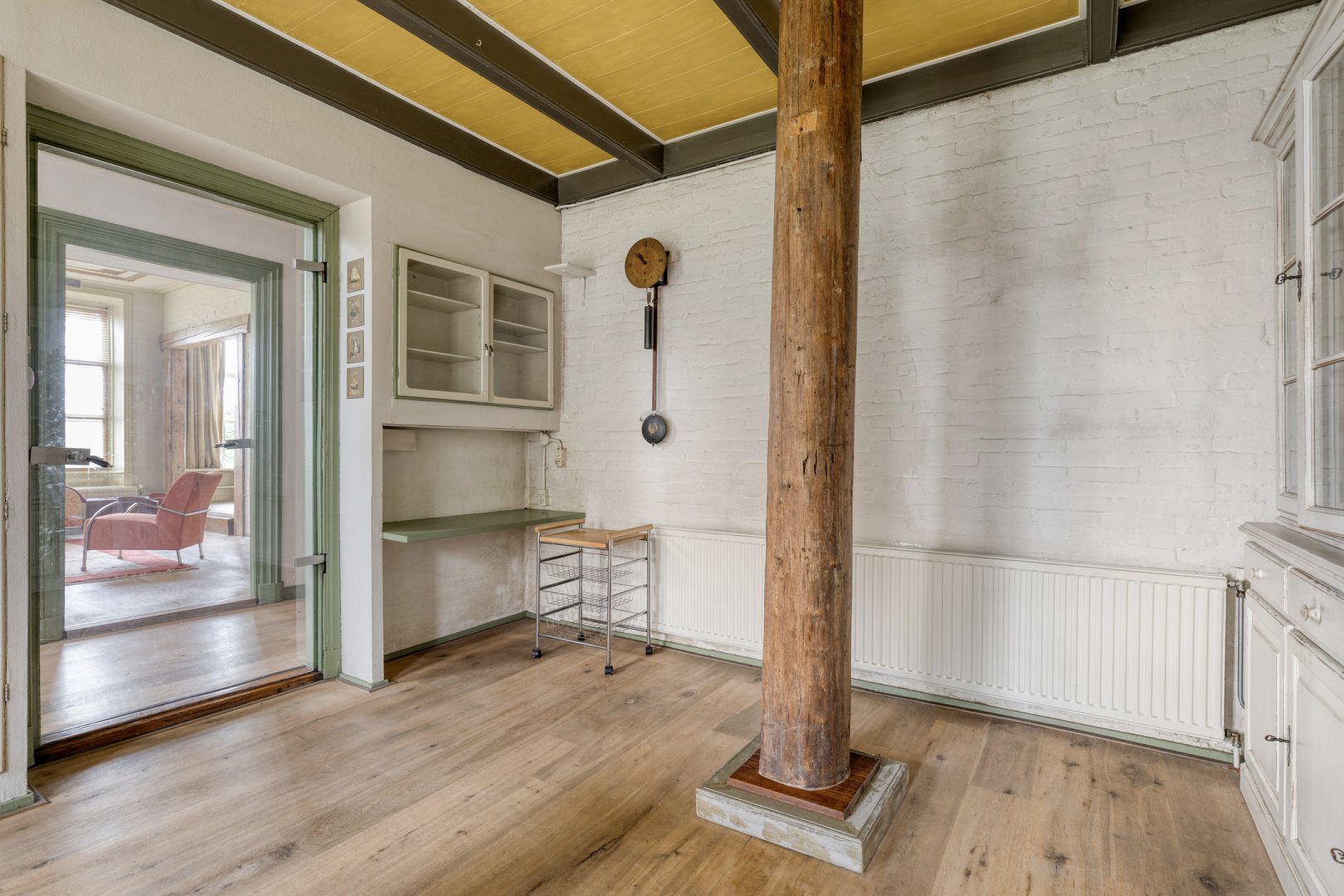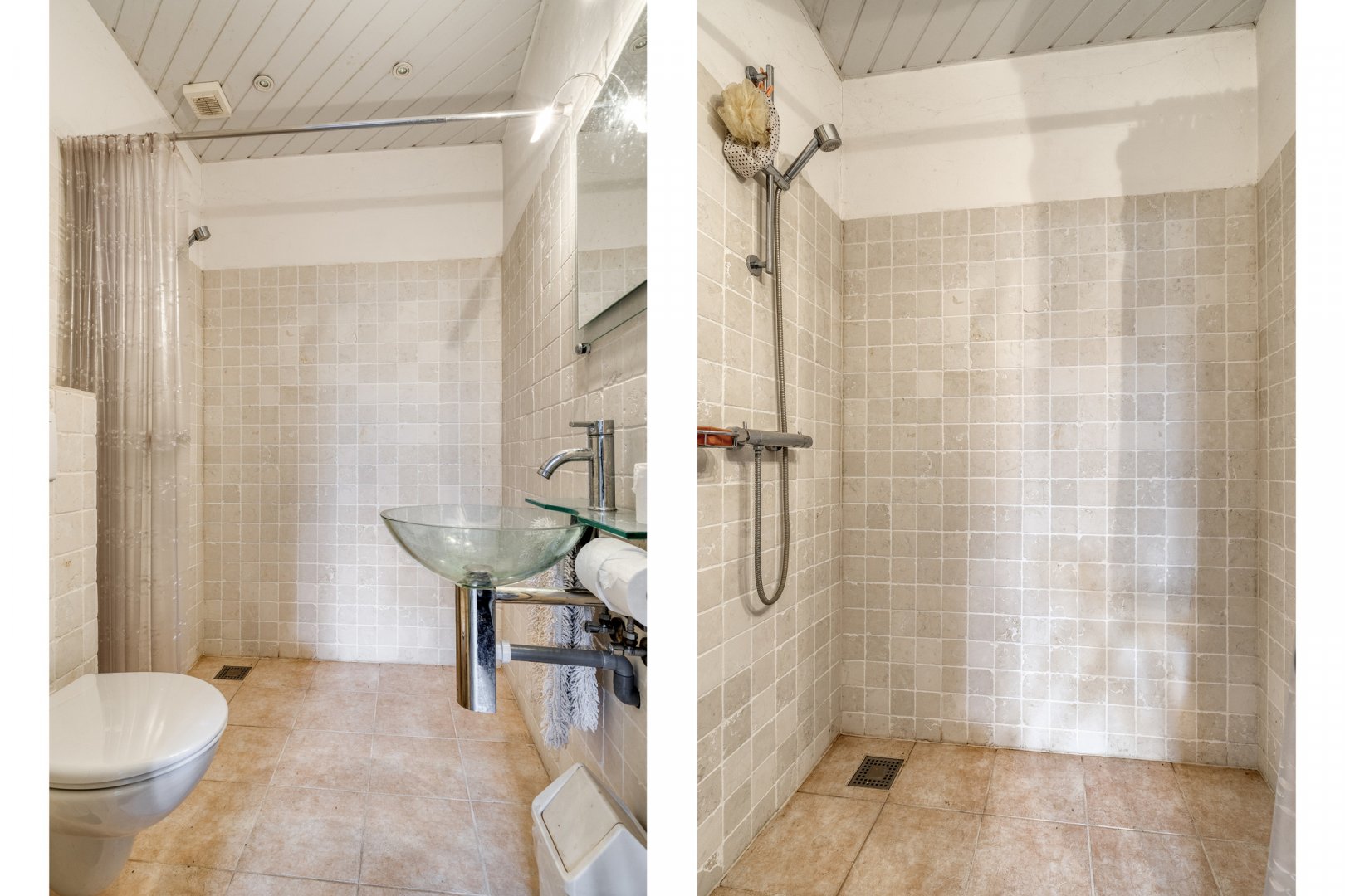 De woonkeuken ca.5.90x3.75m met keukenblok voorzien van een keramische gaskookplaat, rvs-wasemkap, koelkast en vaatwasser (Franse plankenvloer), verder een opkamer ca.4.65x2.95m, royale badkamer ca.4.85x2.70m met inloop douche, toilet en dubbele wastafel.
