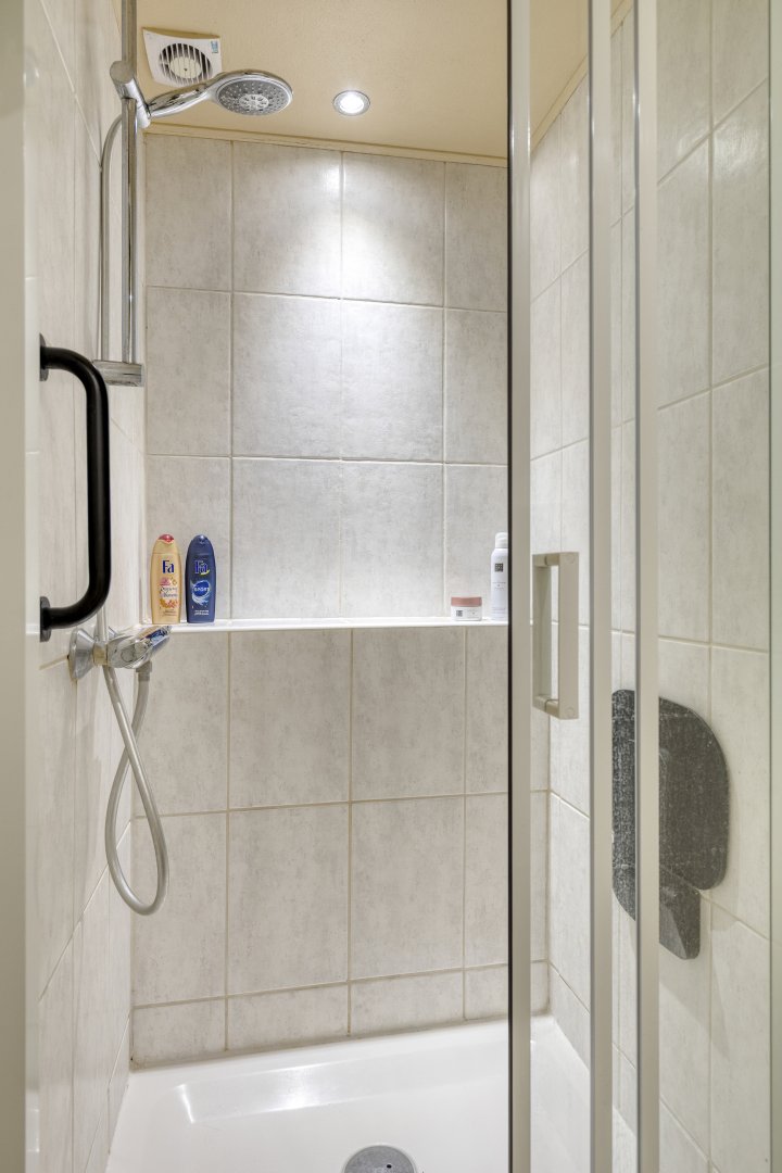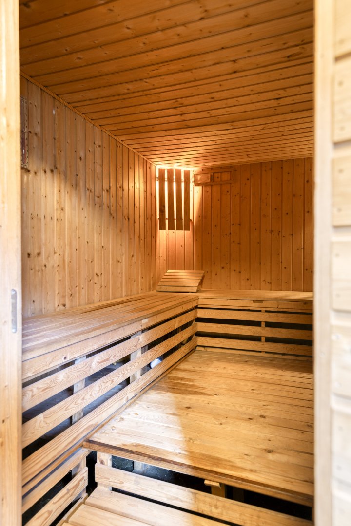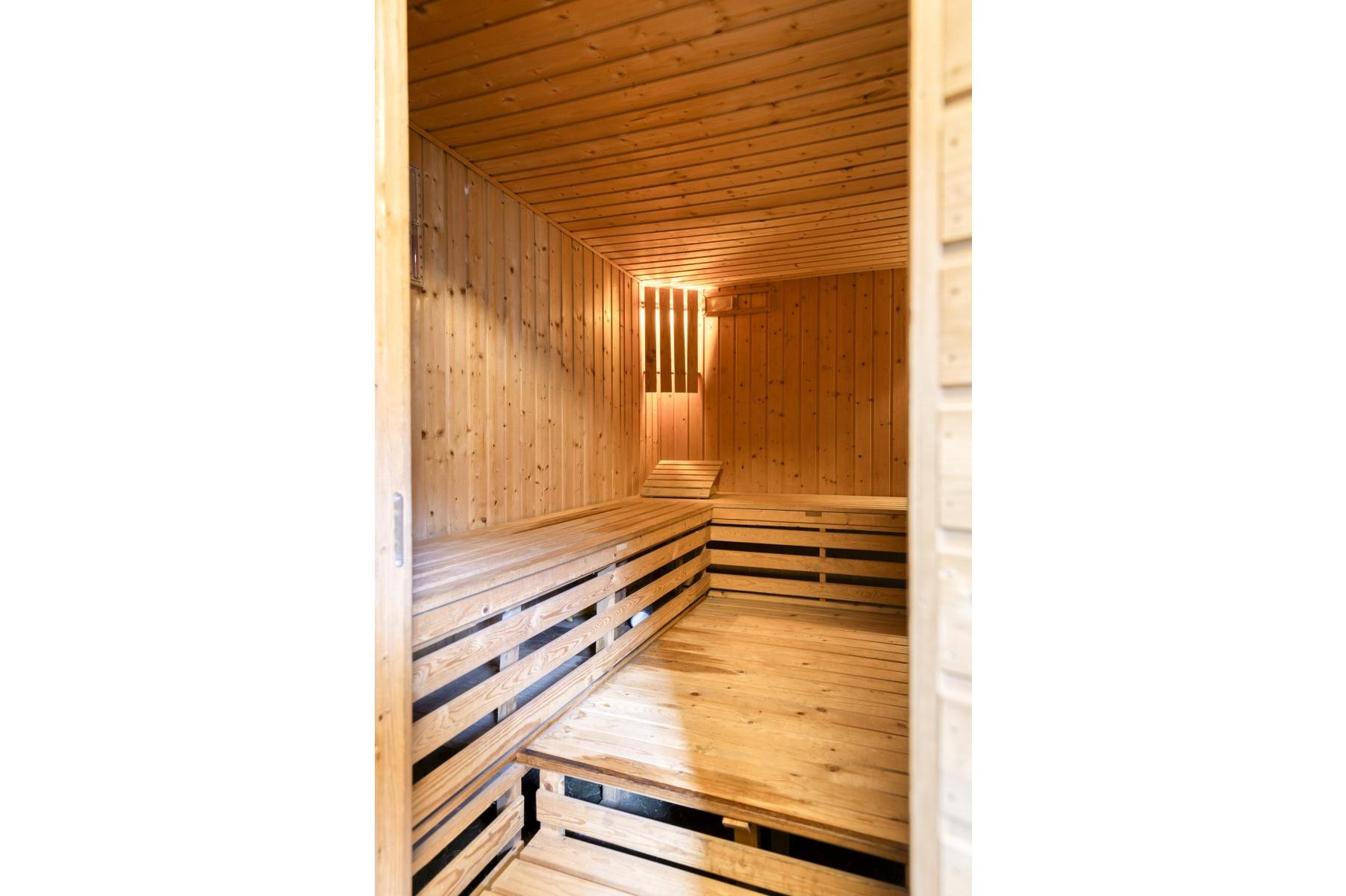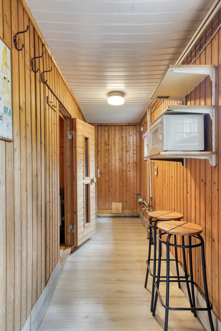 Daarnaast een sauna en een inpandige schuurruimte met betonvloer en twee baanderdeuren.