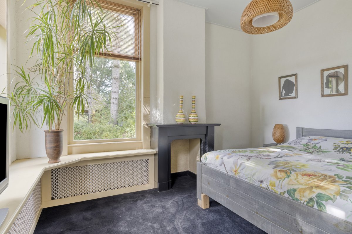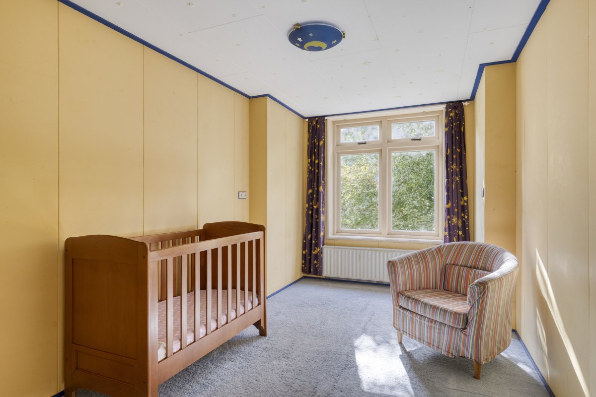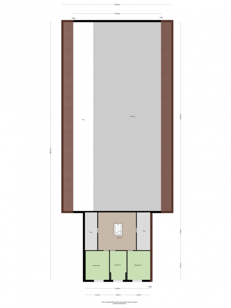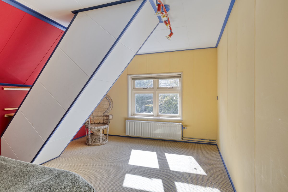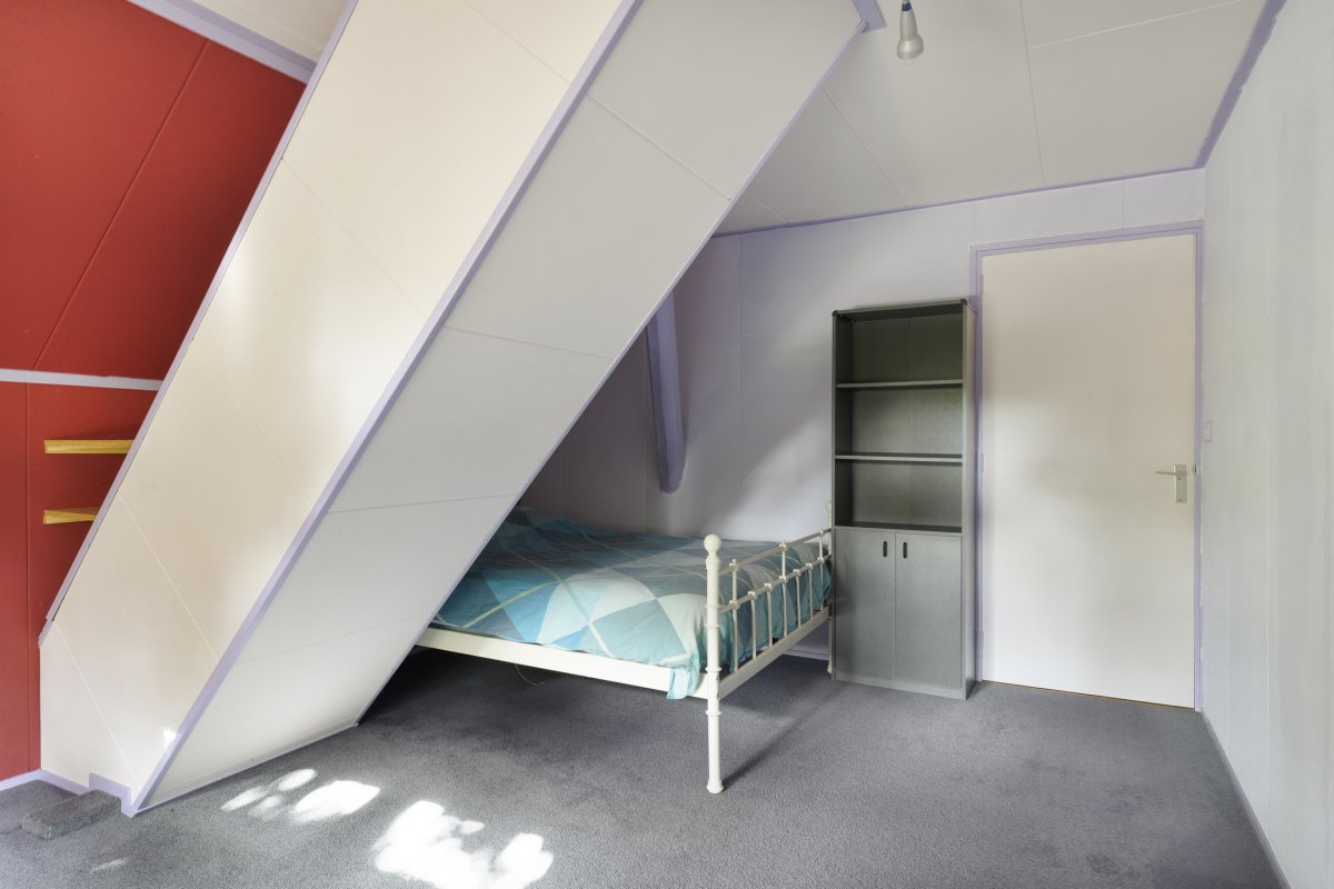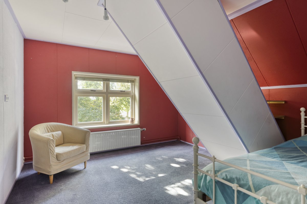 Ruime overloop met bergingen, drie slaapkamers van respectievelijk ca. 3,45 x 4,40 m, ca. 3,65 x 4,65 m en ca. 3,30 x 4,40 m, en een zolderberging/vliering.