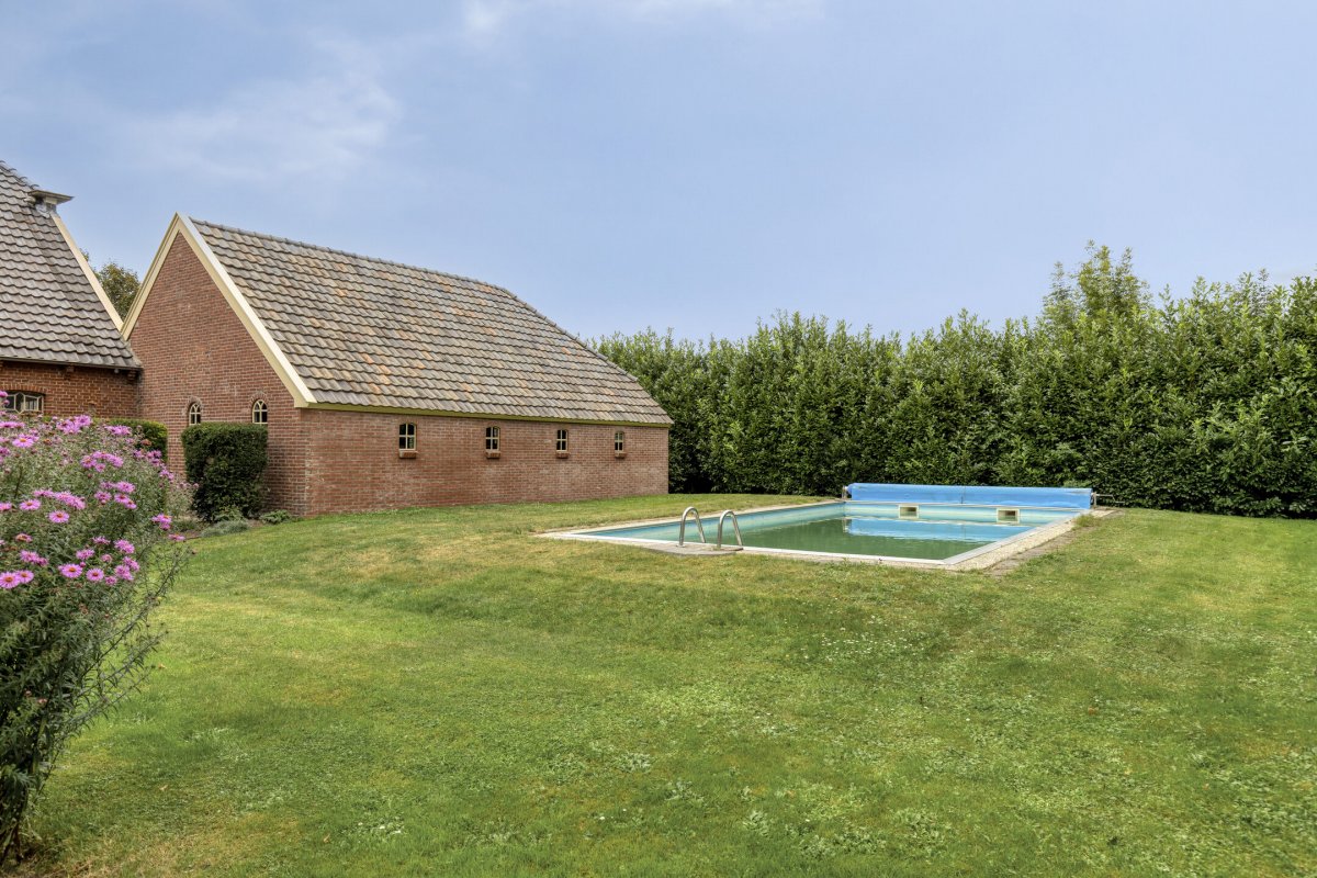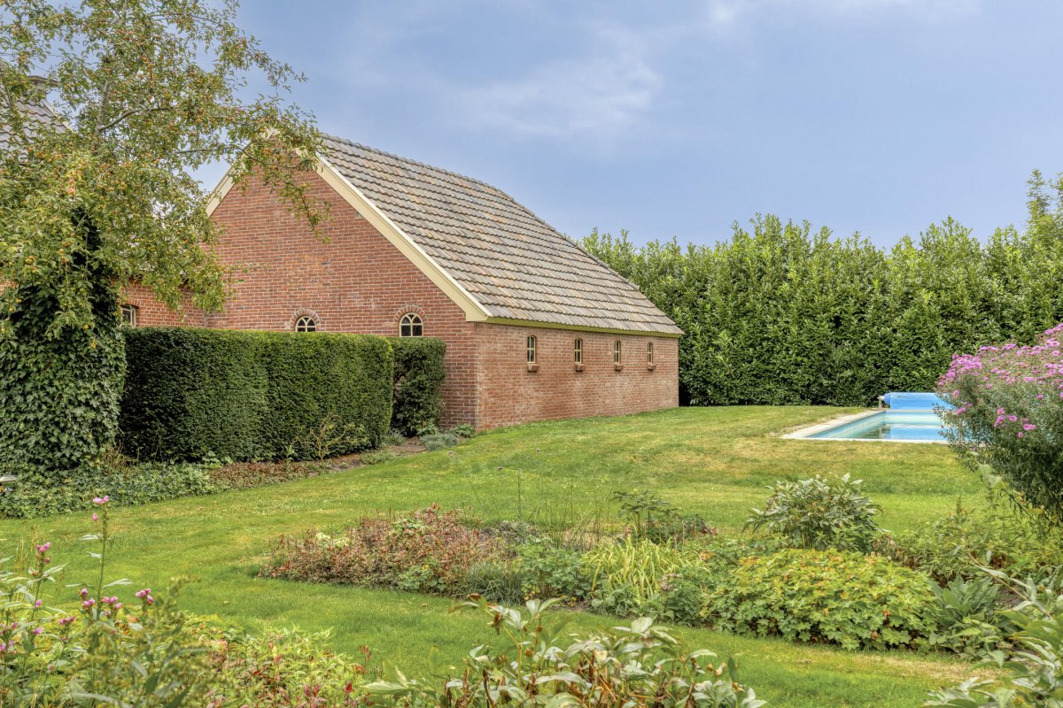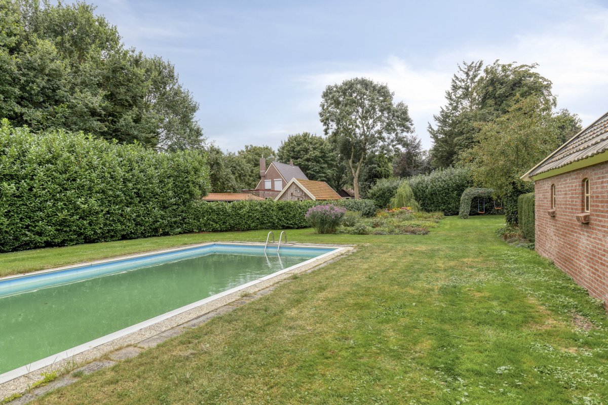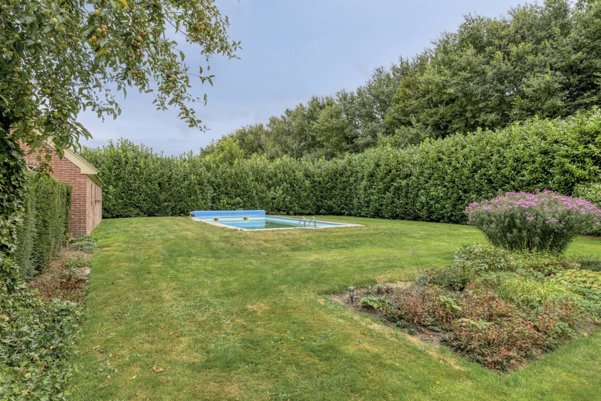 een stenen schuur van ca. 10 x 8 m én een fraai aangelegde tuin met zwembad (10 x 5 m) en zonnig terras op het zuiden.