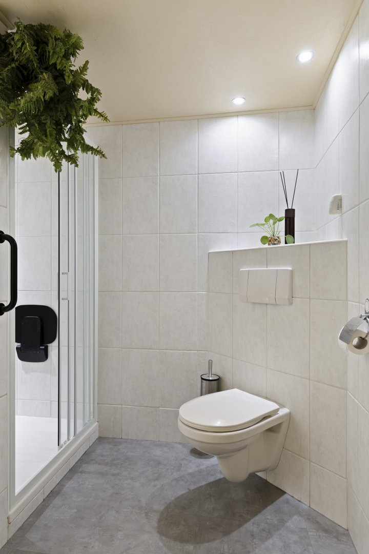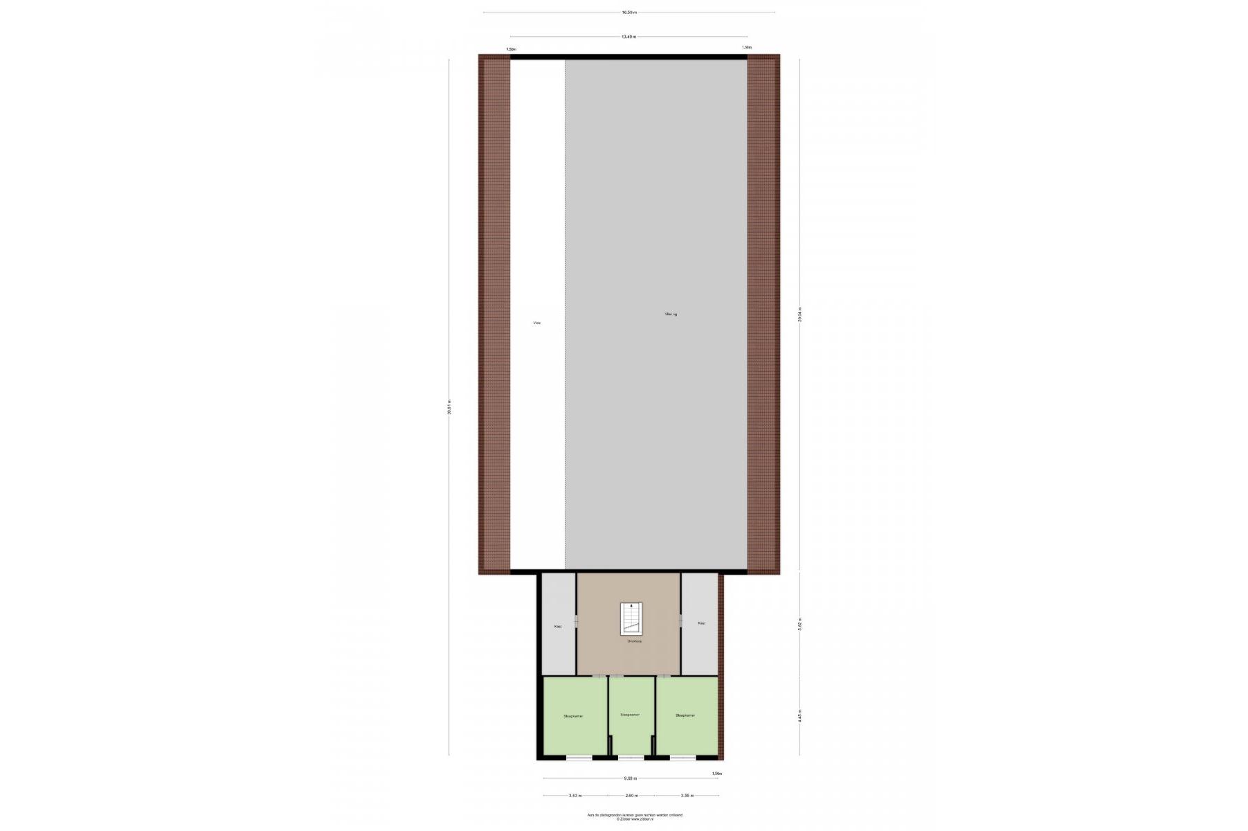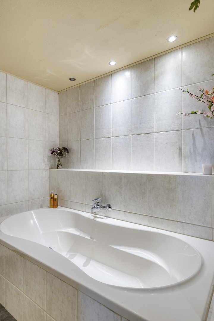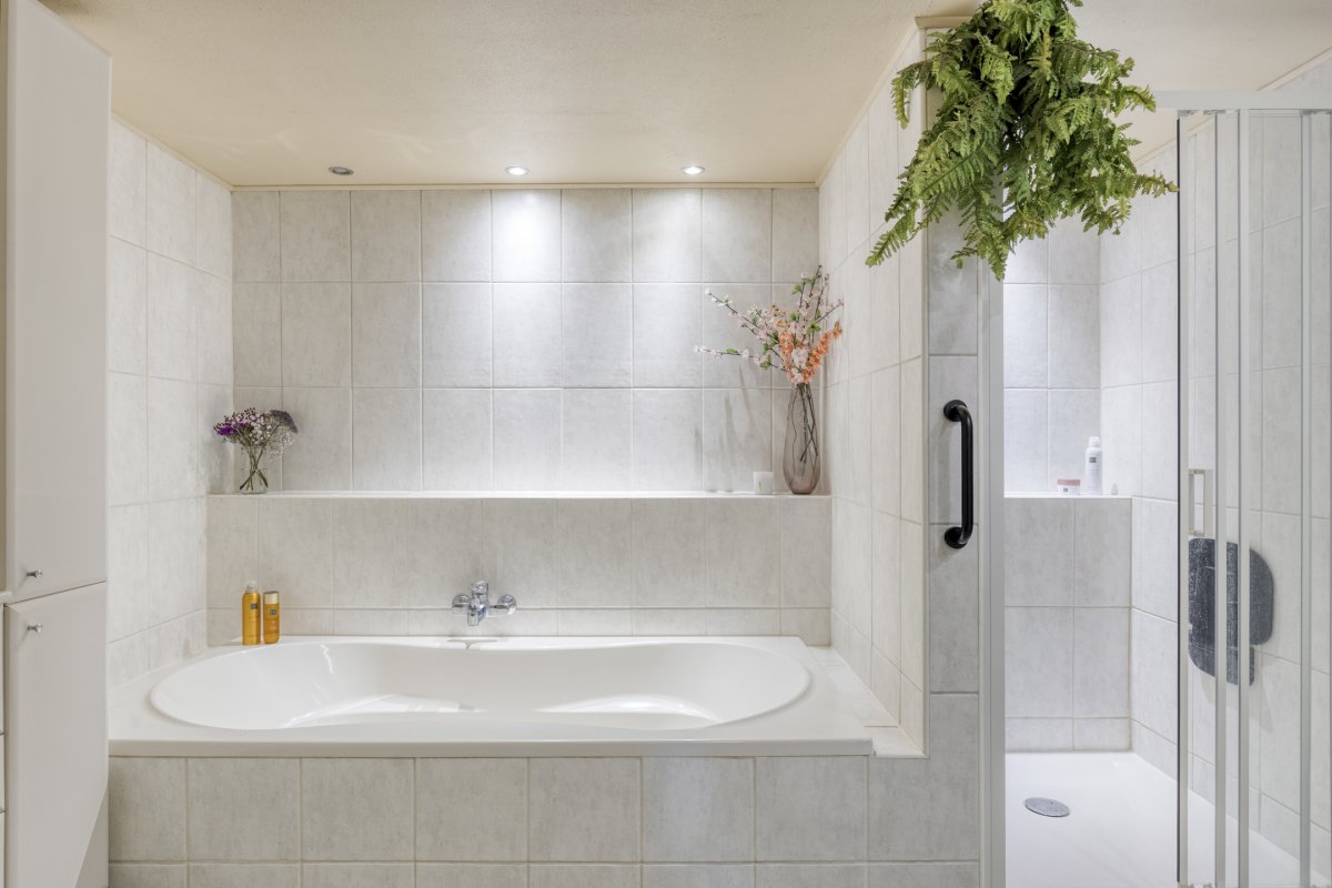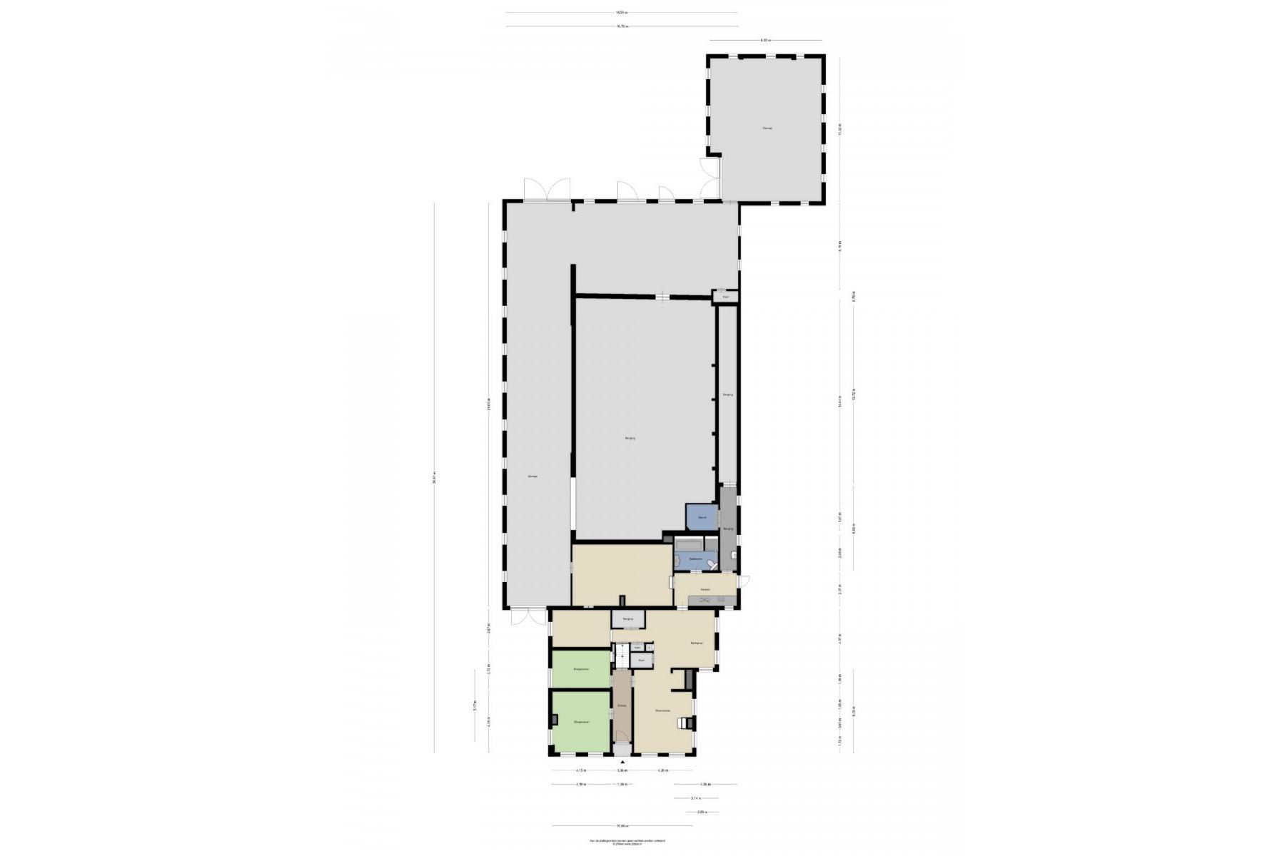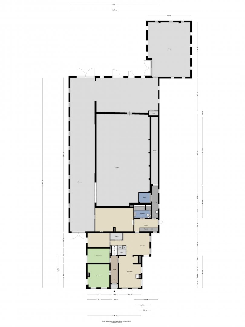 Verder een bijkeuken (ca. 7,20 x 4,40 m), tweede hal (ca. 6,30 x 1,20 m), badkamer (ca. 3,10 x 2,55 m) met ligbad, douchecabine, toilet en wastafelmeubel (met mechanische afzuiging).