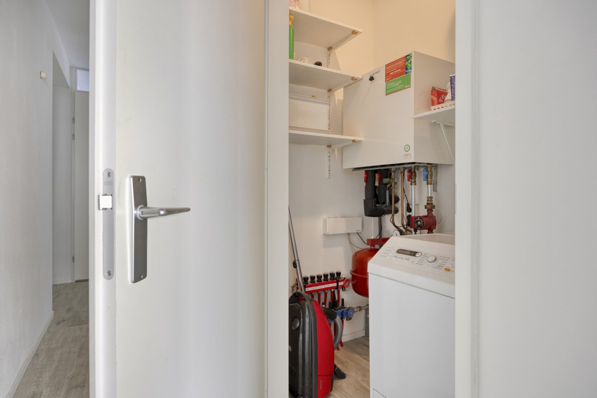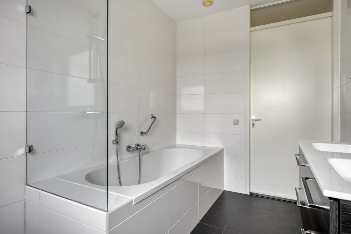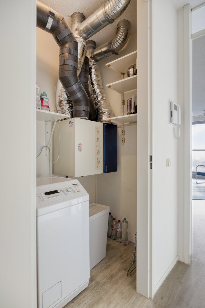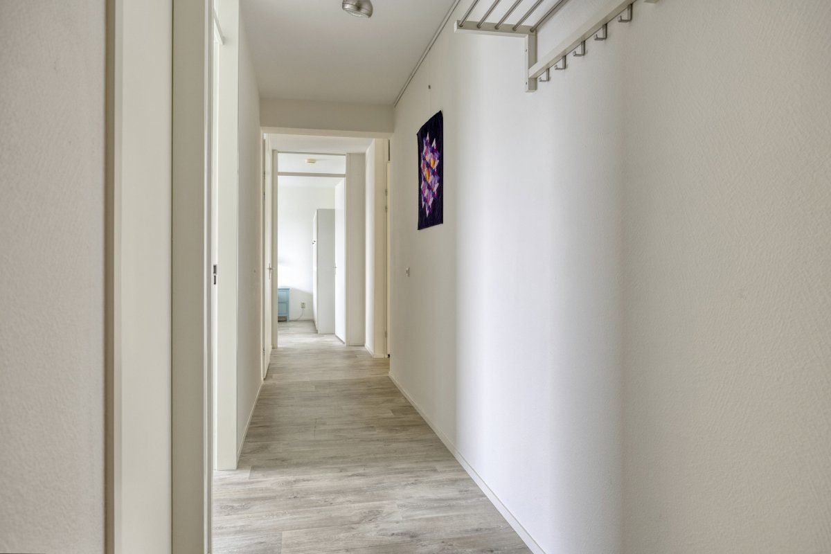 Entree, hal/gang, slaapkamer ca. 10m², slaapkamer ca. 12m², ruime volledig betegelde badkamer met ligbad, inloopdouche en een badkamermeubel met dubbele wastafel, slaapkamer ca. 16m2 , hangend toilet met fonteintje, technische ruimte annex wasruimte met WTW, lichte woonkamer met schuifpui (voorzien van hor) naar het balkon, een open keuken (totaal groot ca. 45m²) met een zeer nette hoekkeuken voorzien van inductie kookplaat, rvs wasemkap, koelkast/vrieskast (Liebherr), combi magnetron met stoomfunctie (2023), vaatwasser en een composiet aanrecht blad.