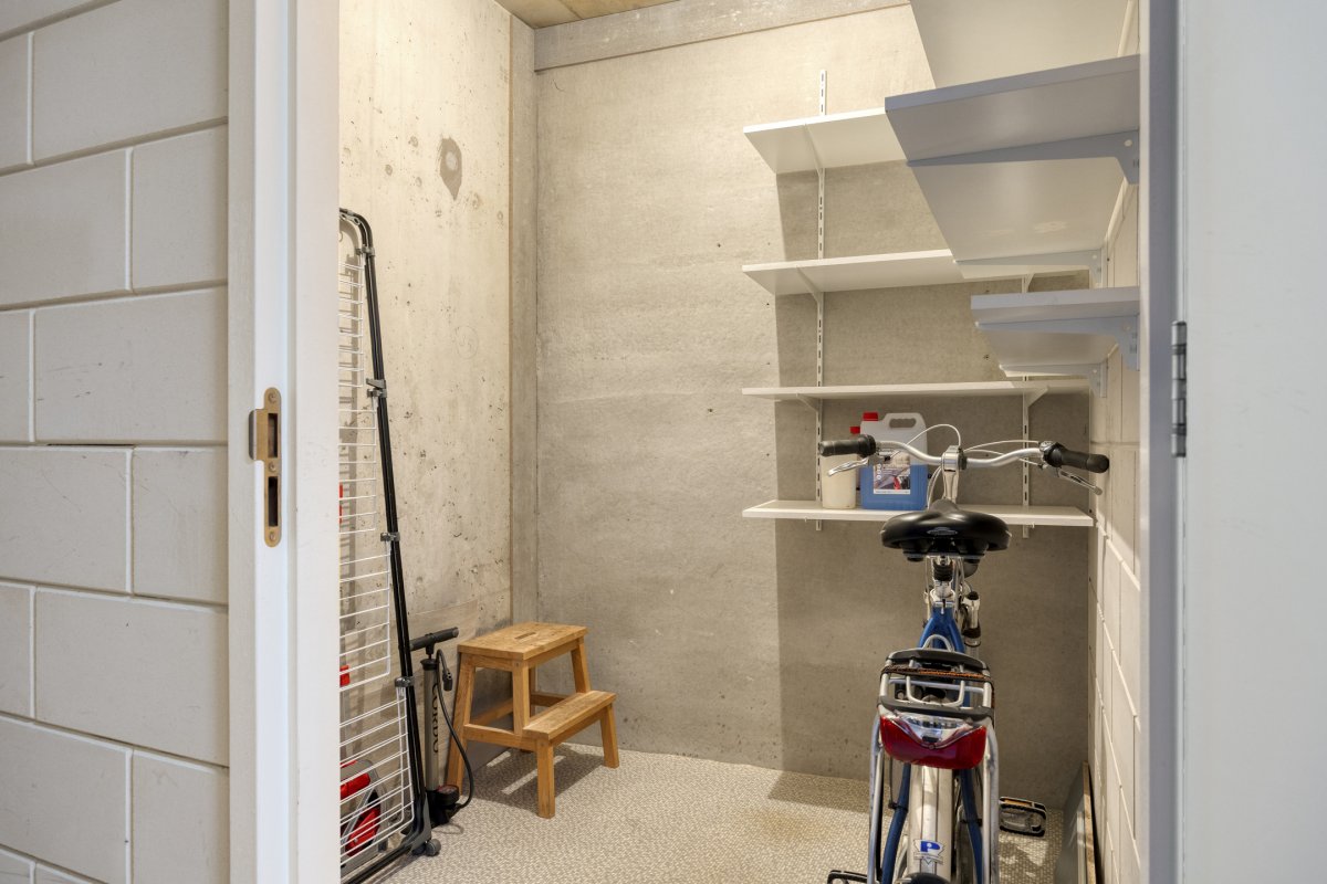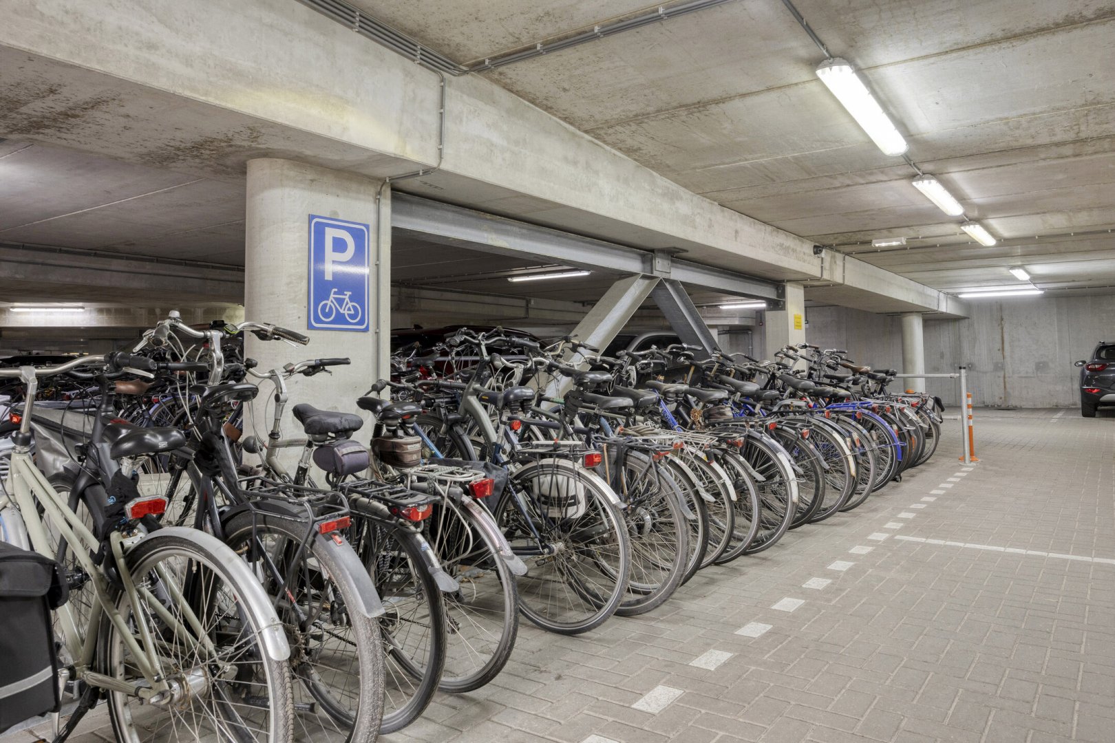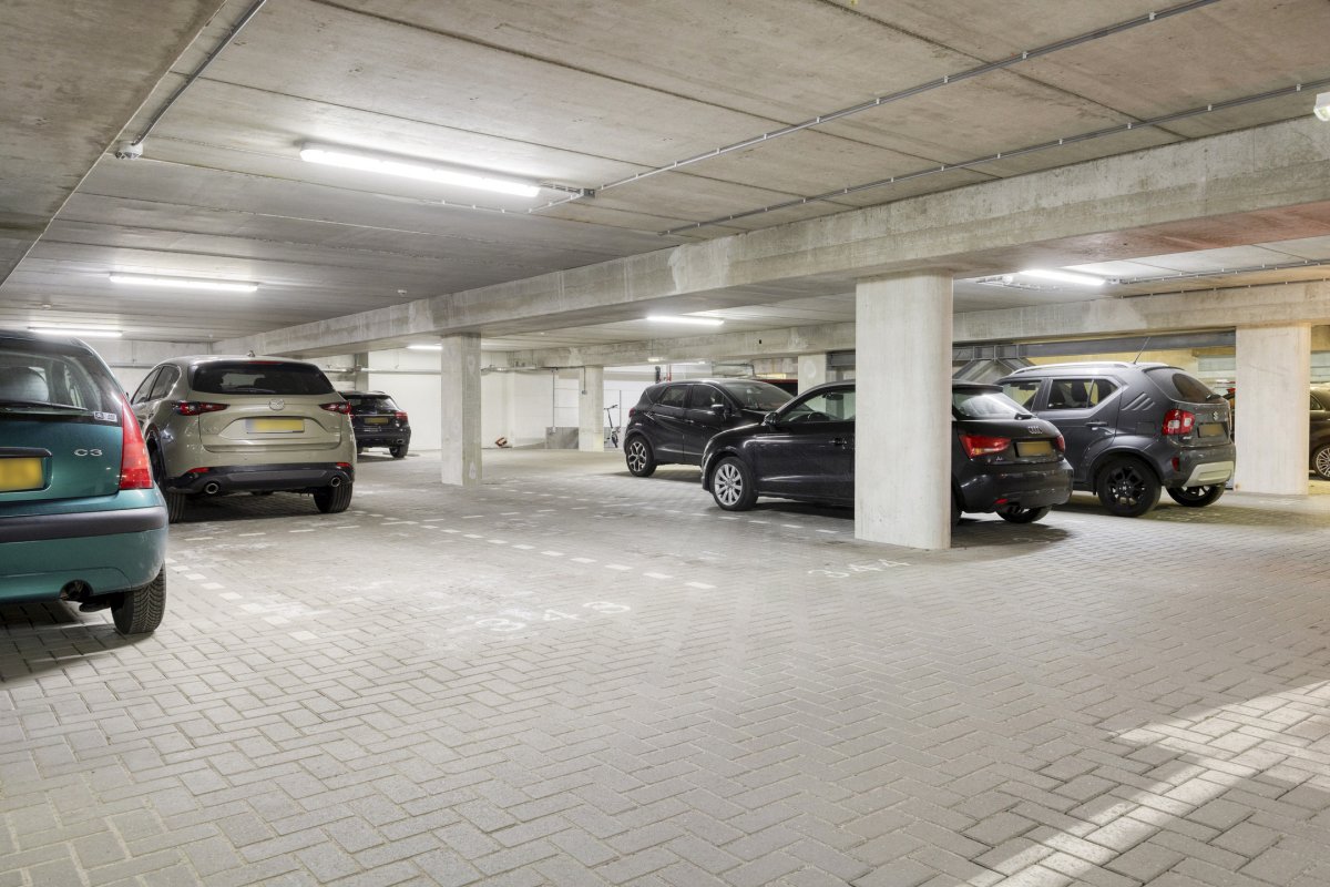 Parkeren kan in de afgesloten parkeergarage onder het complex. Ieder appartement heeft een eigen, vaste parkeerplaats en eigen privé berging voor o.a. het stallen van fietsen. Deze zijn van binnenuit bereikbaar via een lift.