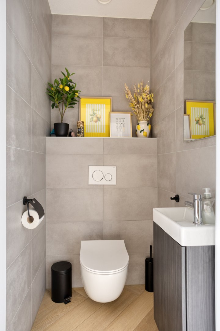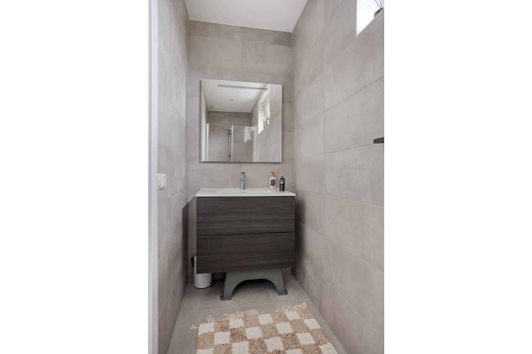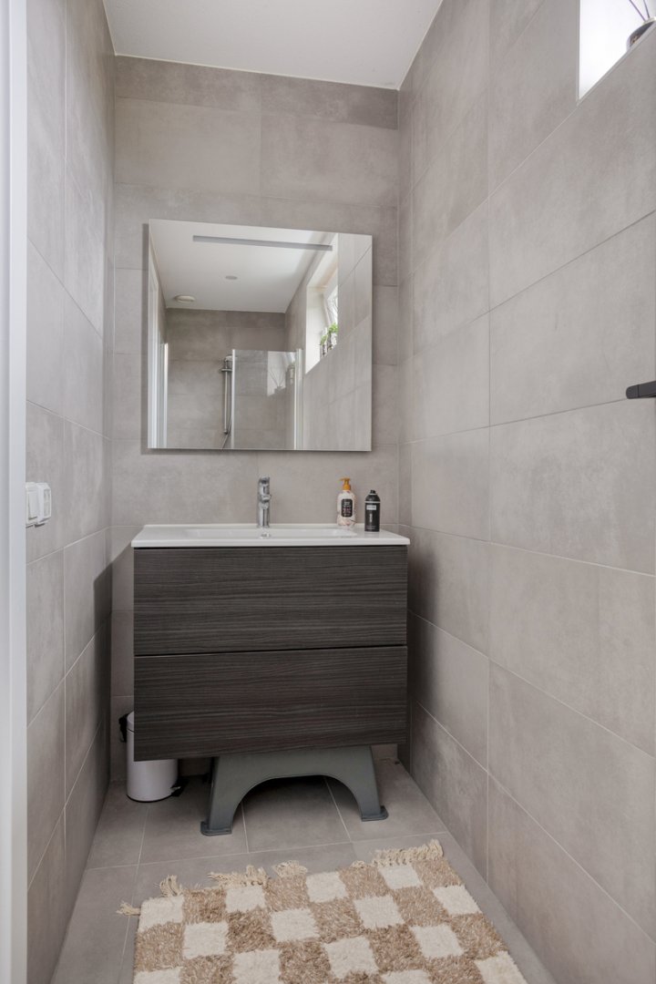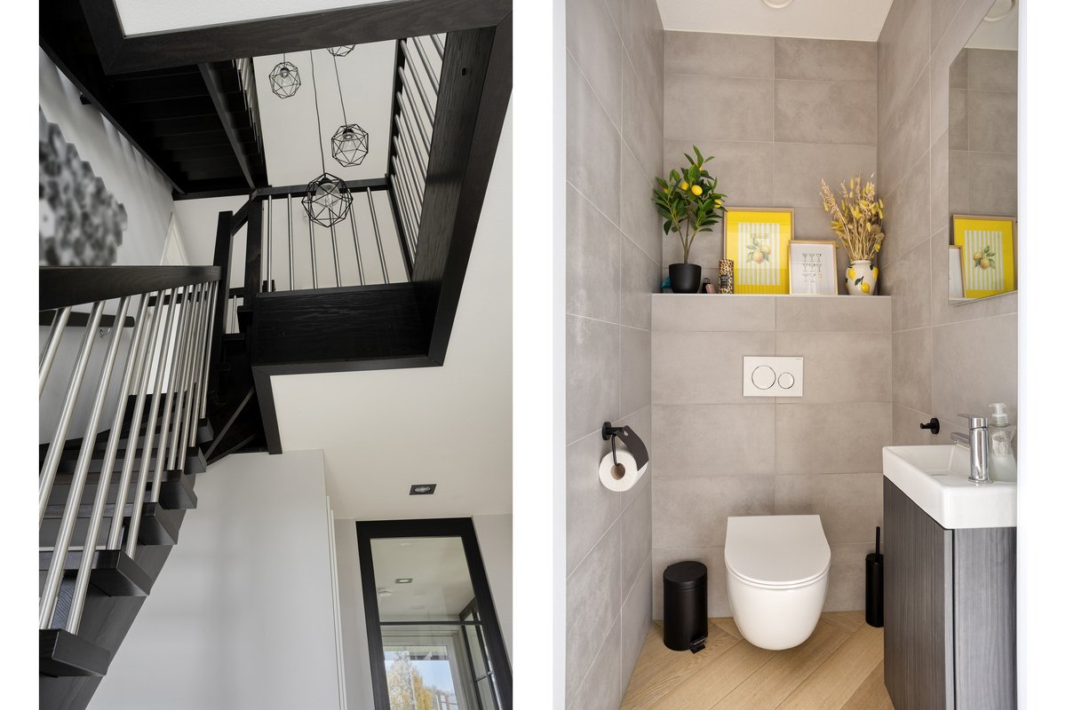 U komt binnen in de hal. Hier bevindt zich het toilet met fonteintje, de trapopgang naar de eerste verdieping en toegang tot de woonkamer en keuken.