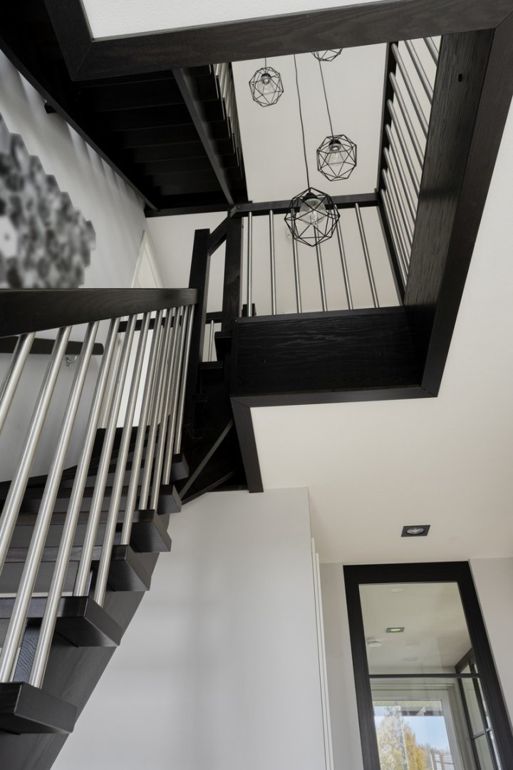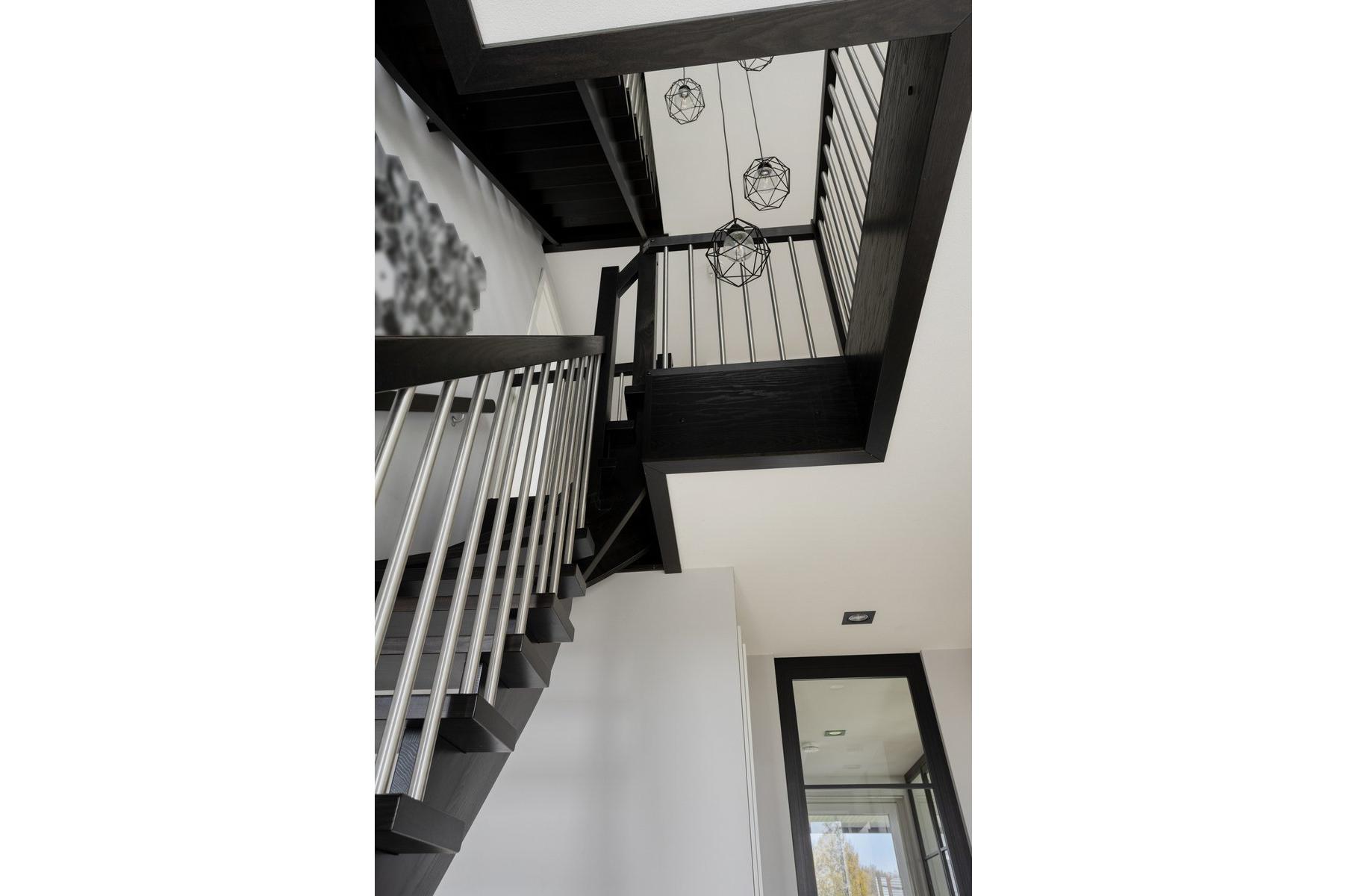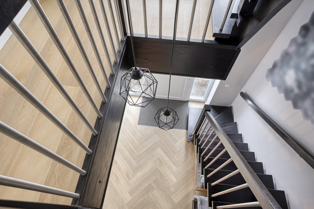 De trap in de hal leidt u naar de overloop/vide op de eerste verdieping.