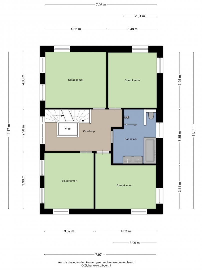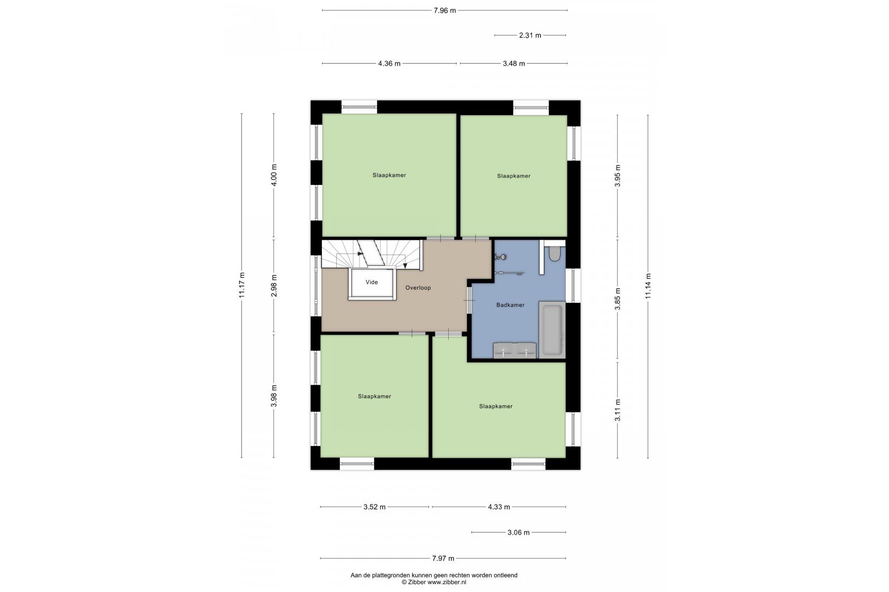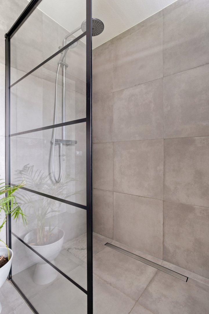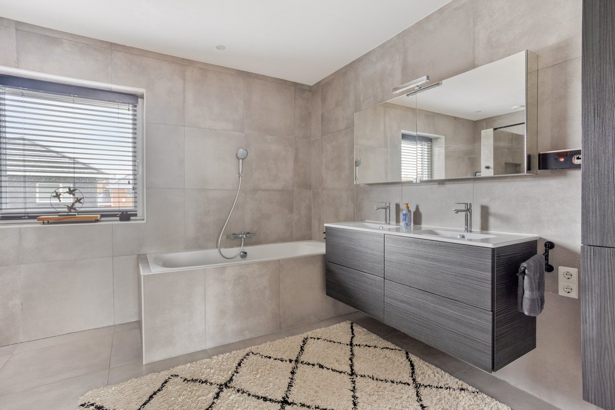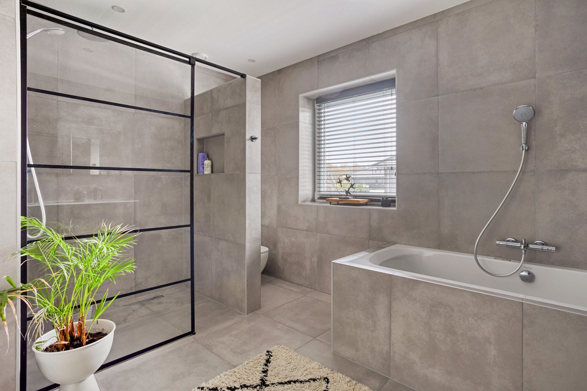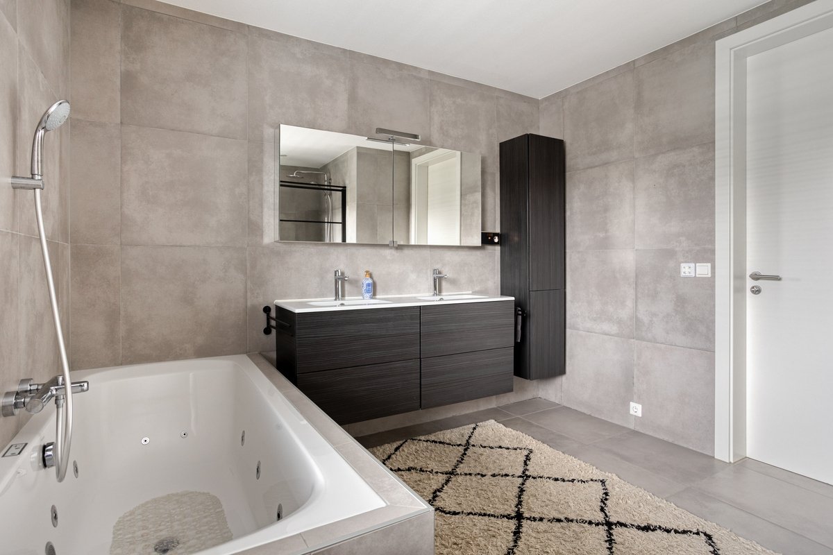 Hier bevinden zich vier royale slaapkamers, de ruime badkamer met bubbel bad, inloopdouche, dubbel wastafelmeubel en toilet. De gehele verdieping is voorzien van een pvc vloer en vloerverwarming.