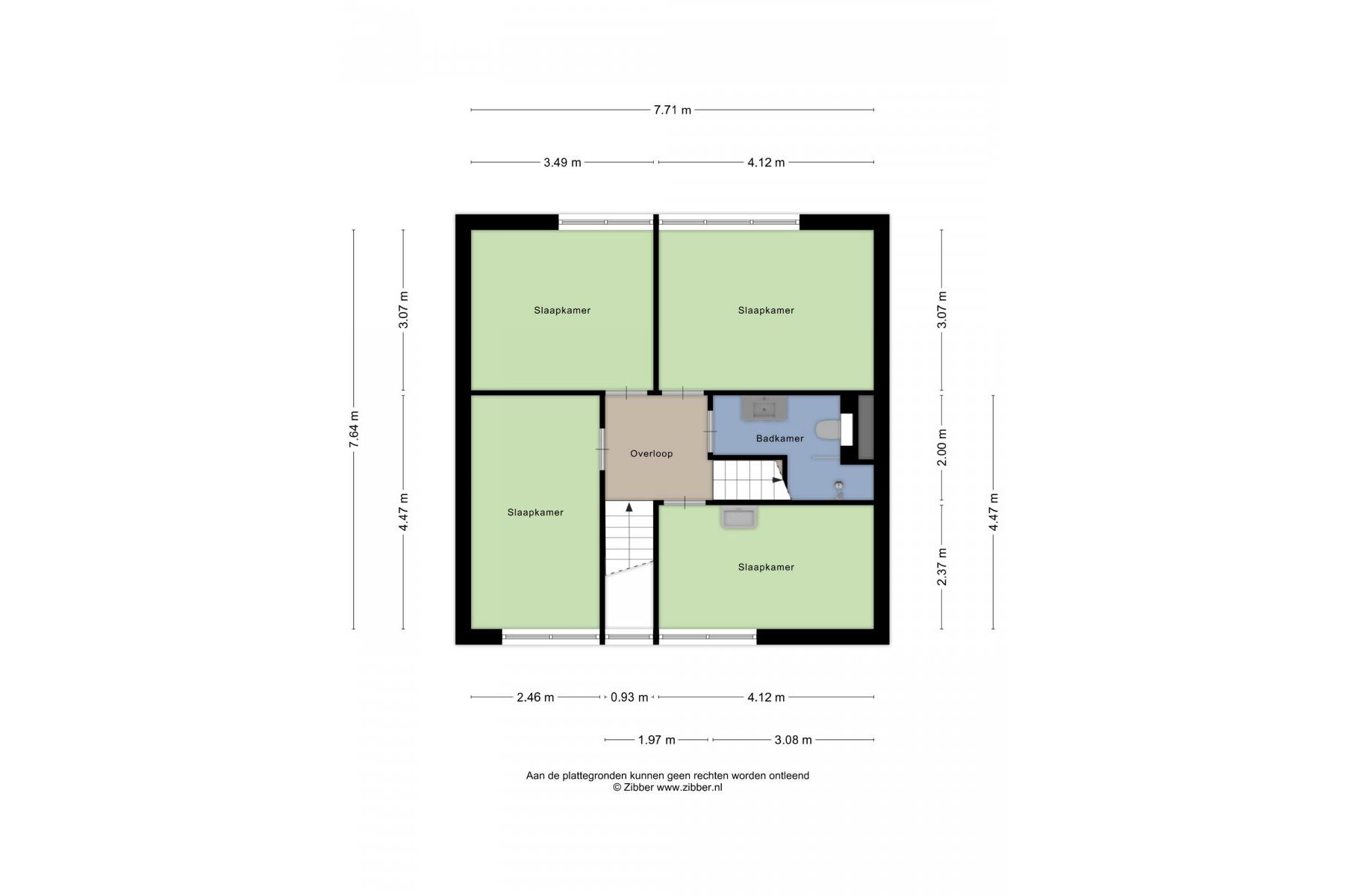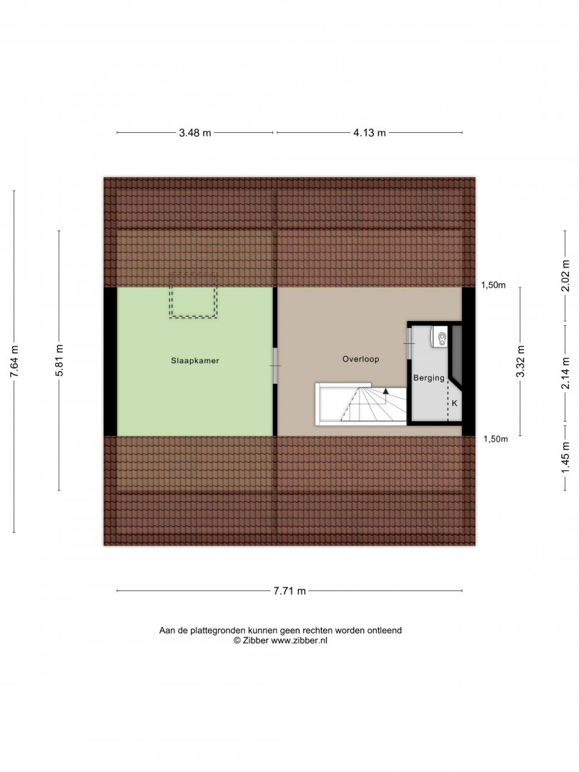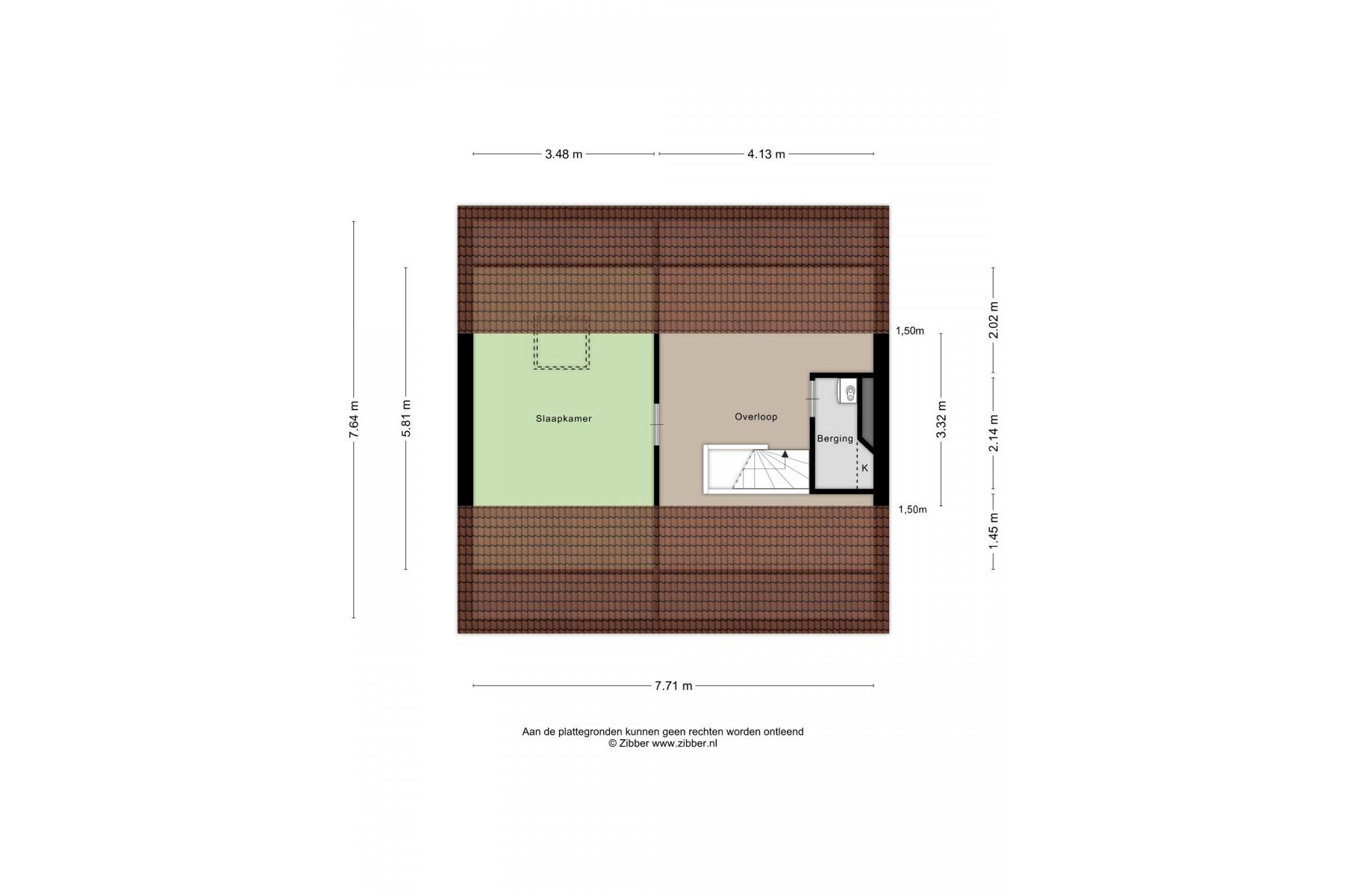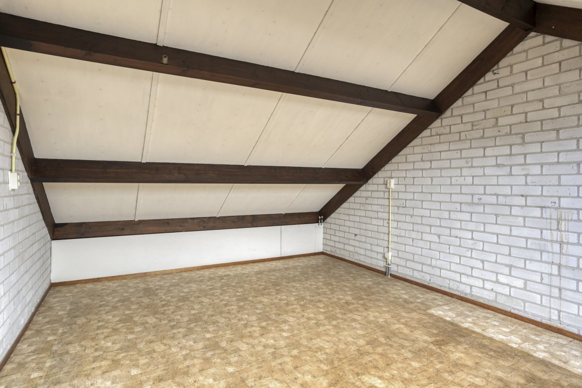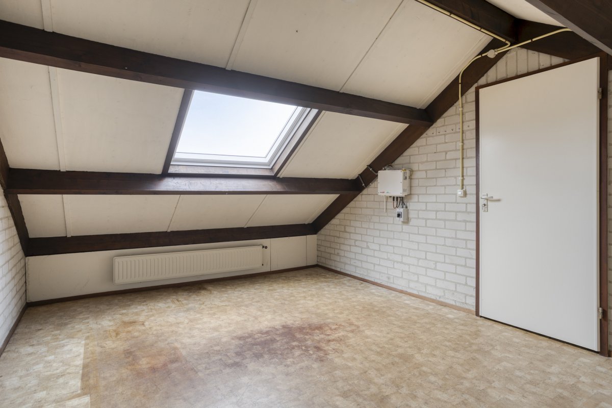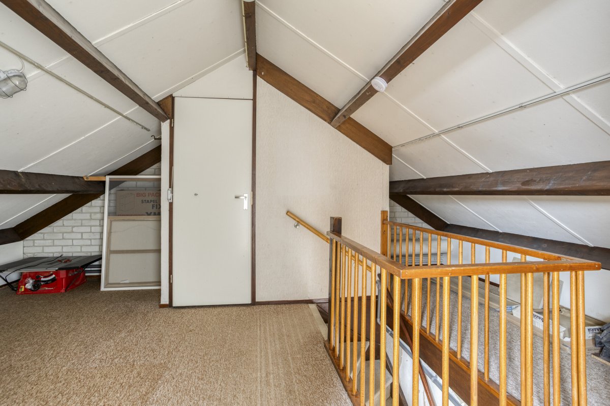 2e verdieping: overloop met c.v ruimte/berging en zolderslaapkamer ca.5.80x3.50m.