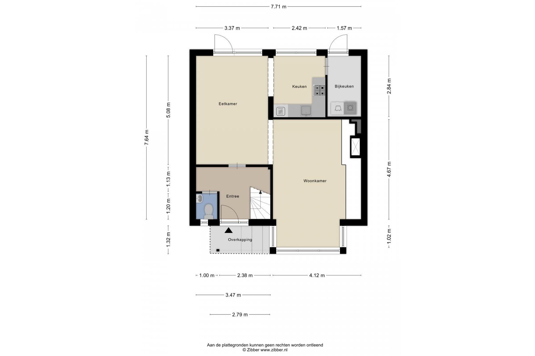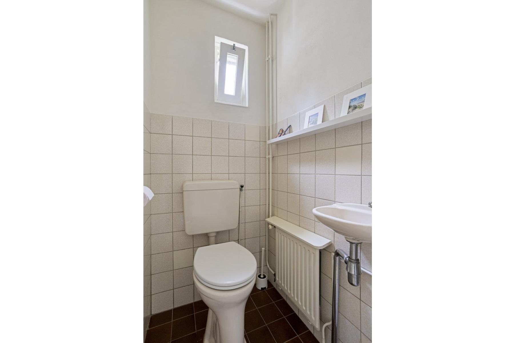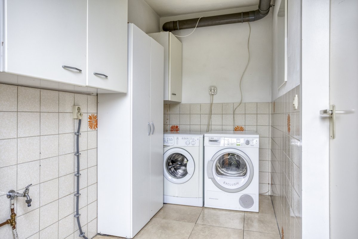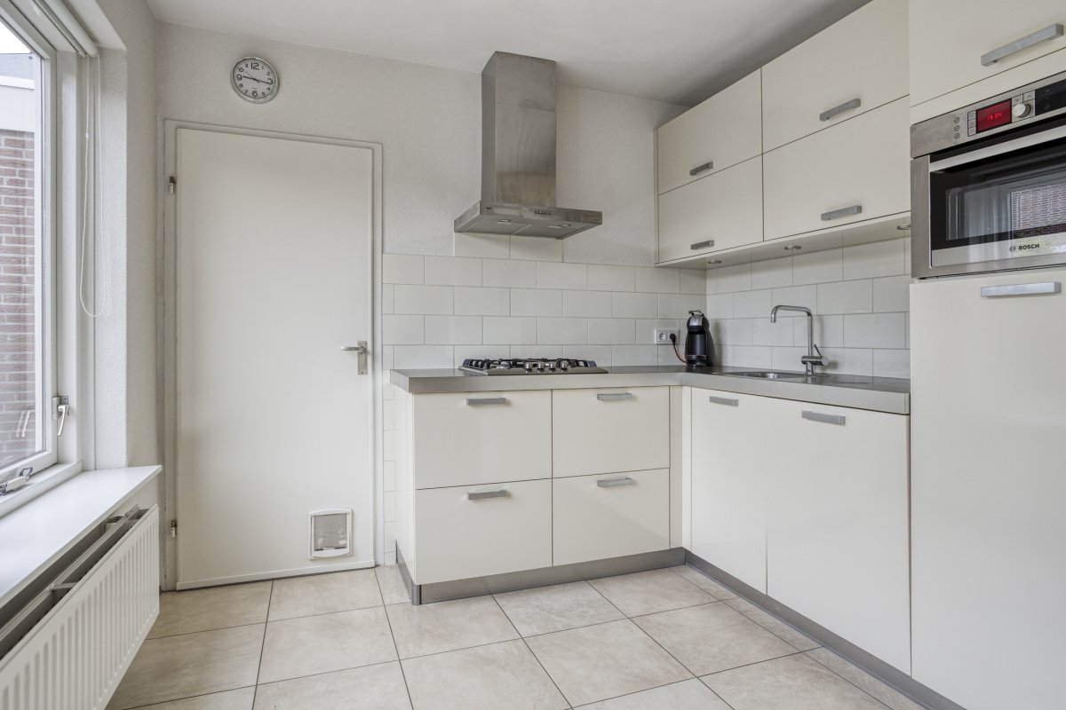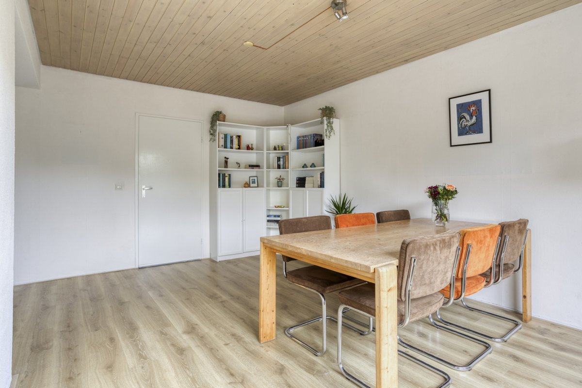 Begane grond: entree/hal (laminaat), toilet met fontein, sfeervolle Z-vormige living ca.39m² met fraaie laminaatvloer, gashaard en deur naar het terras, nette open keuken ca.6m² (plv) hoekkeuken voorzien van 4 pits gaskookplaat, rvs afzuigkap, koelkast, combi oven en vaatwasser en bijkeuken (plv) ca.2.85x1.55m.