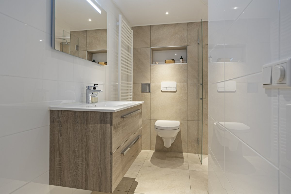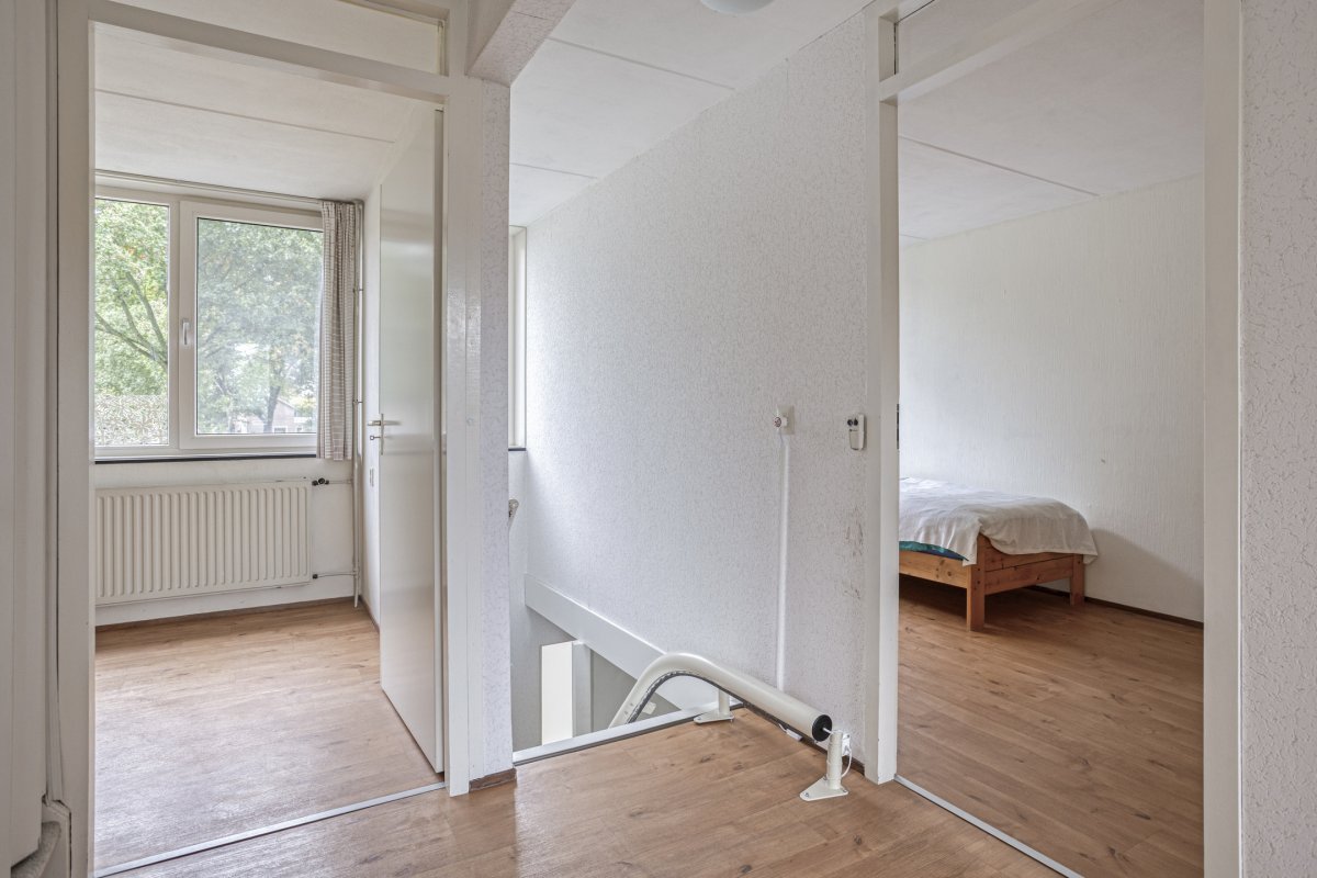 1e Verdieping: overloop, 4 slaapkamers resp. ca.4.05x3.10m ca.3.50x3.10m, ca,4.40x2.45 en ca.4.10x3.30m, moderne badkamer (2020) met inloopdouche, wastafel meubel, 2e hangend toilet, mechanische afzuiging en design radiator, via vaste trap naar......