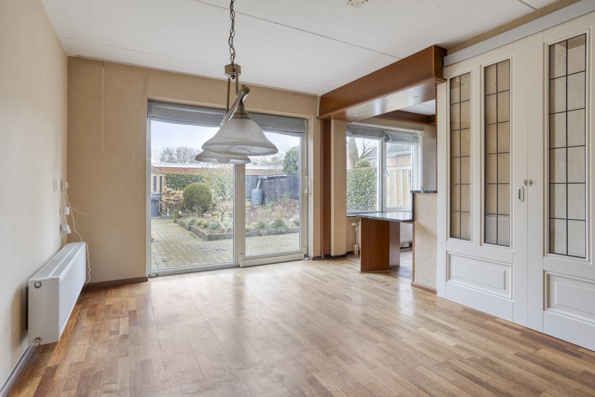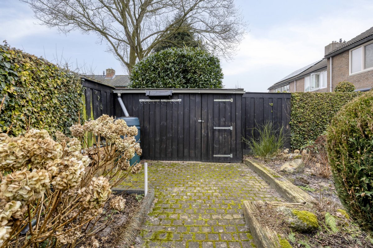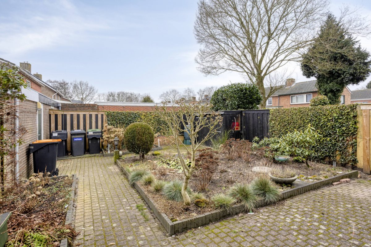De woning beschikt over een ruime nette aangelegde tuin op het zuiden. De woning heeft een vrijstaande stenen garage voorzien van elektrische sectionaal deur en een eigen oprit. Het geheel is gelegen in een rustige straat met vrij uitzicht over de brink en bevindt zich op loopafstand van het centrum met diverse voorzieningen.