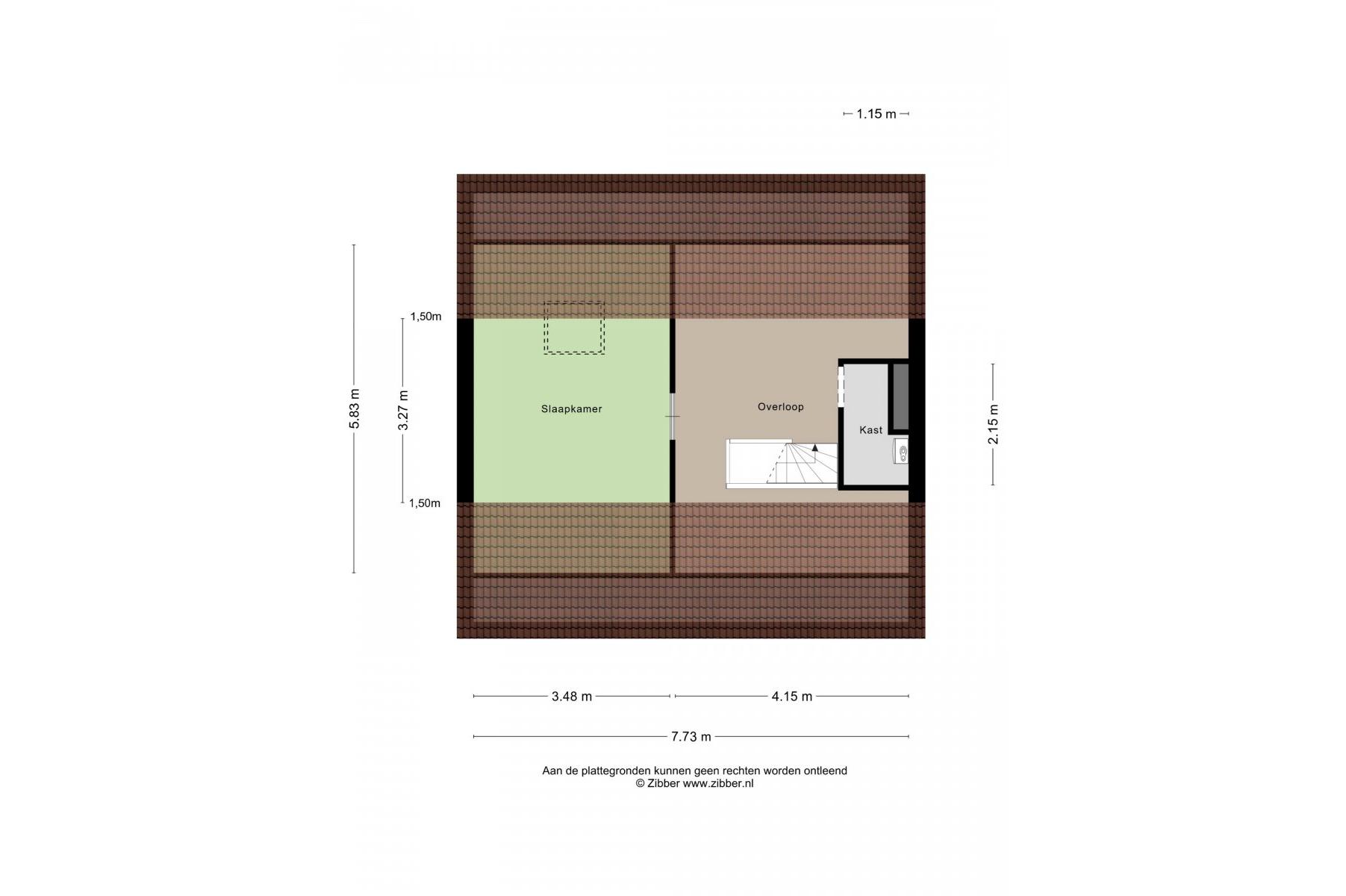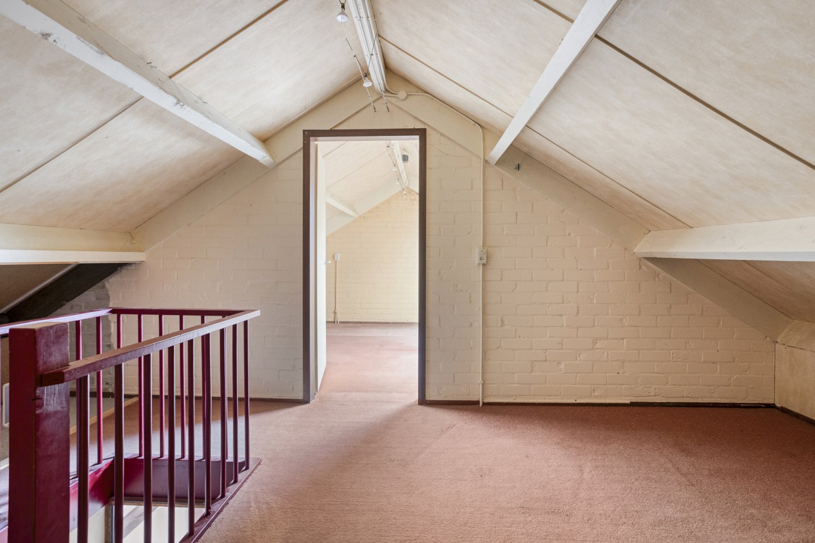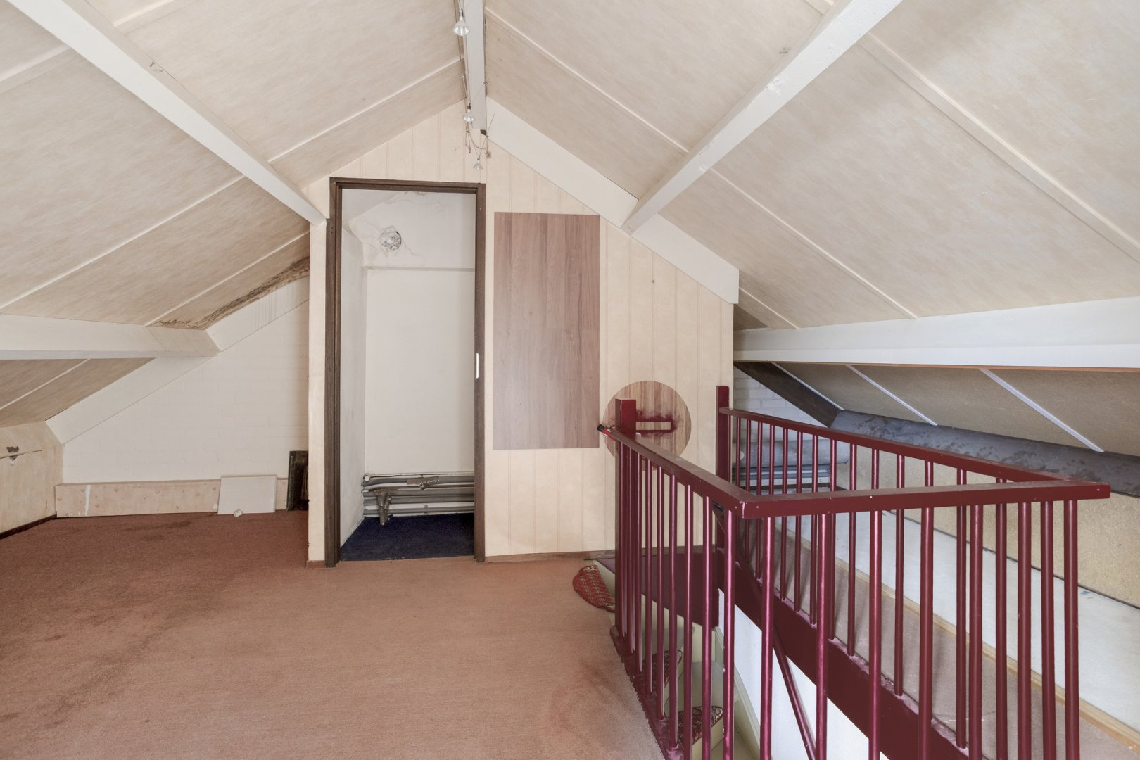 2e Verdieping: ruime overloop, c,v ruimte, zolderslaapkamer ca.3.50x3.25m.