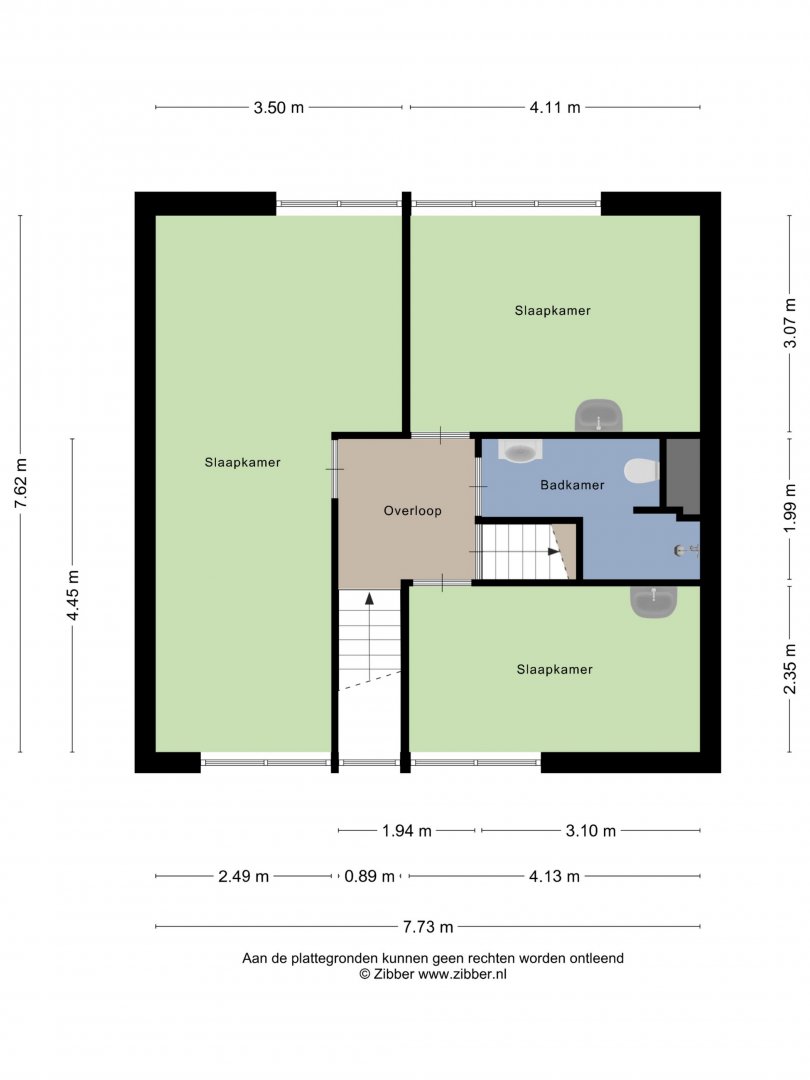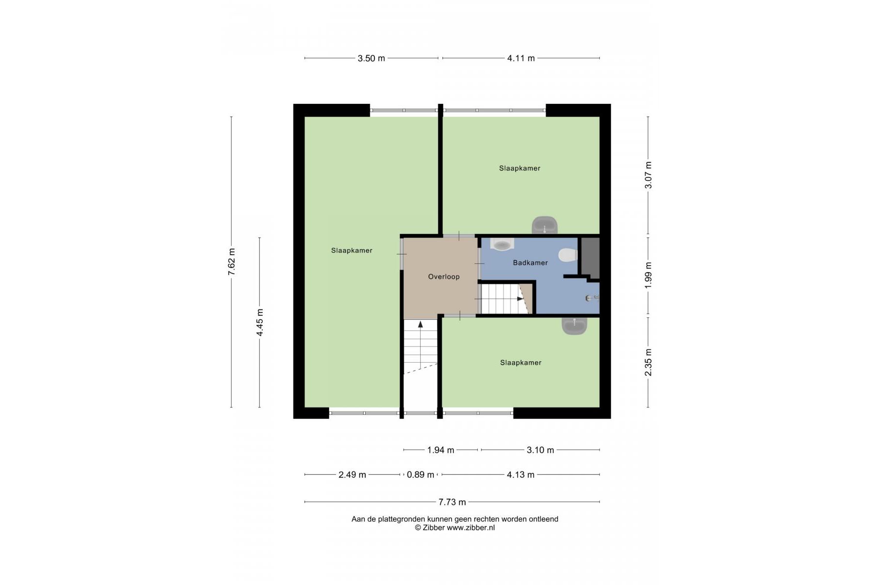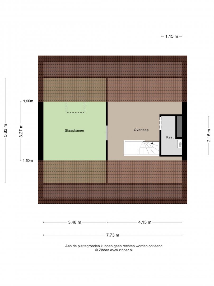 2e Verdieping: ruime overloop, c,v ruimte, zolderslaapkamer ca.3.50x3.25m.