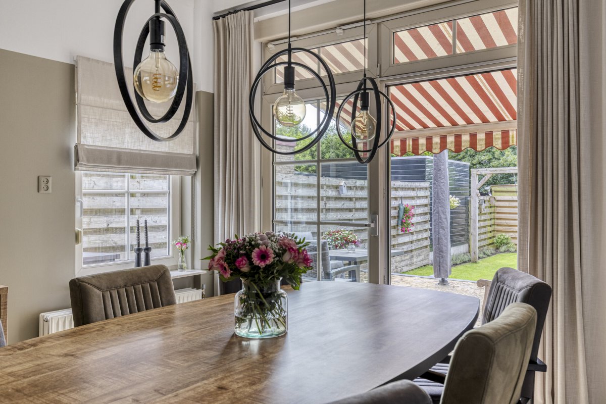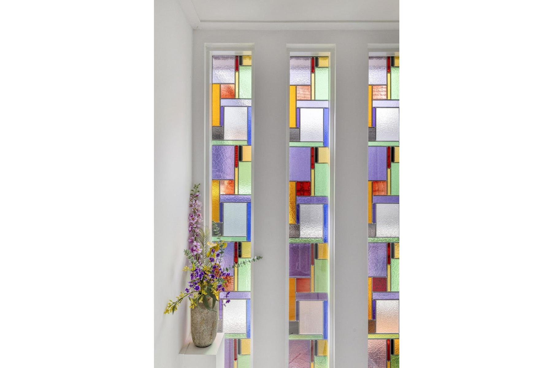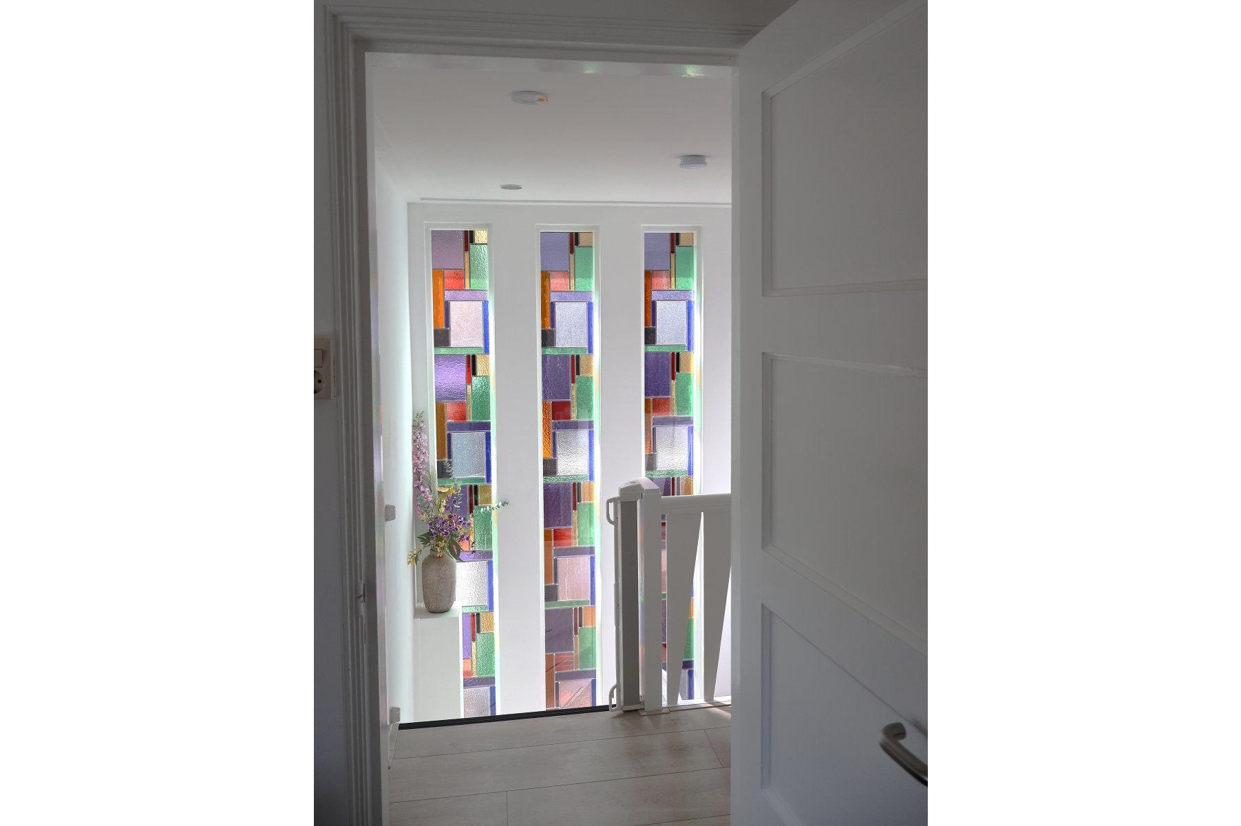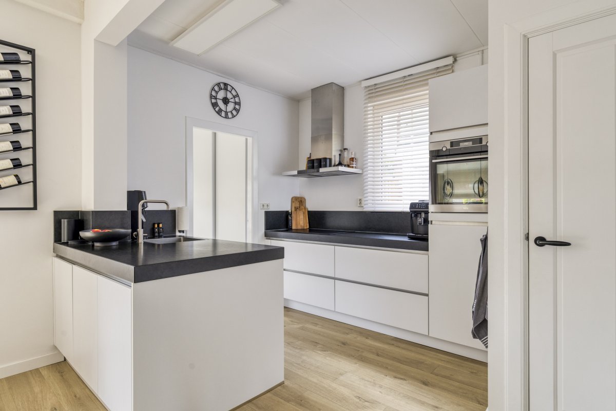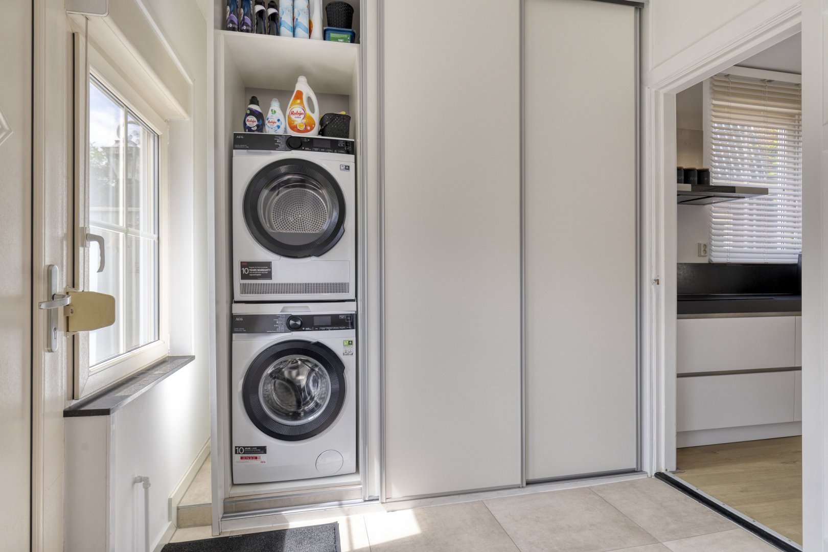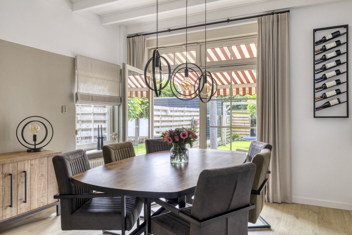 Indeling: entree/hal voorzien van meterkast, modern hangend toilet met fontein en een karakteristieke trapopgang met authentieke details en in dubbelglas verwerkte glas-in-lood ramen. De sfeervolle maar vooral lichte living is grotendeels gesitueerd aan de voorzijde van de woning en geeft toegang tot de provisiekelder alsmede tot de luxe en hoogwaardig afgewerkte, open keuken. De keuken is voorzien van een spoeleiland, inductiekookplaat, vaatwasser, AEG oven, rvs wasemkap, verlichte kastruimten en een natuurstenen aanrechtblad. Tuindeuren geven vanuit de living en keuken toegang tot het terras. De bijkeuken is voorzien van inbouwkasten met de witgoedaansluitingen en een infrarood paneel. De C.V.-opstelling is eveneens opgesteld in de bijkeuken.
