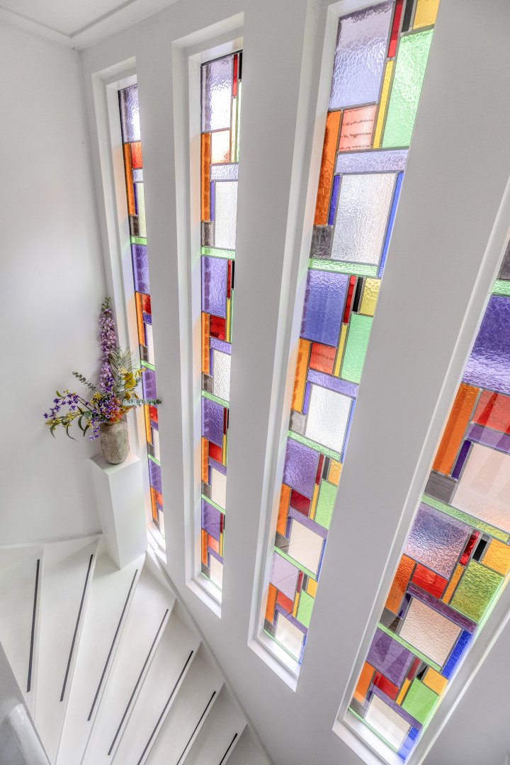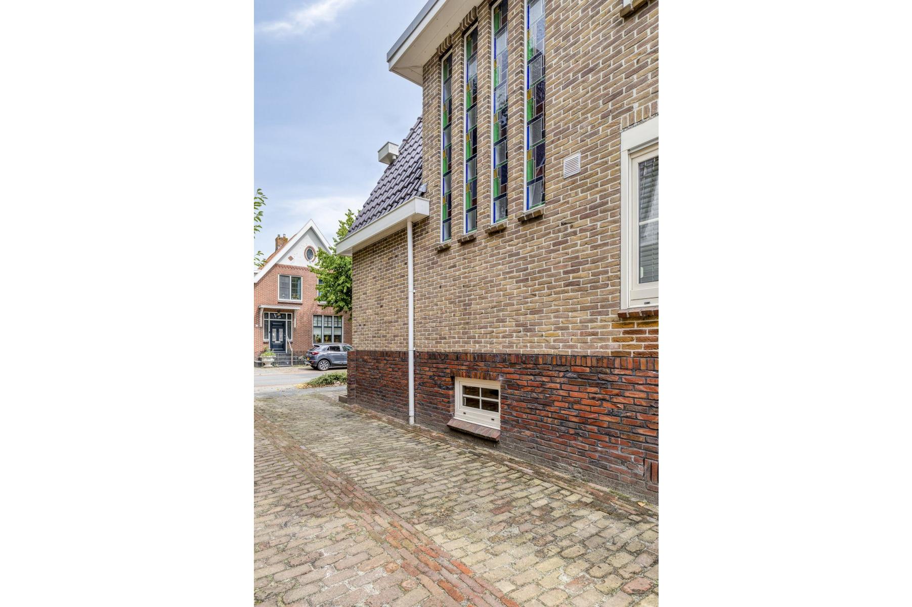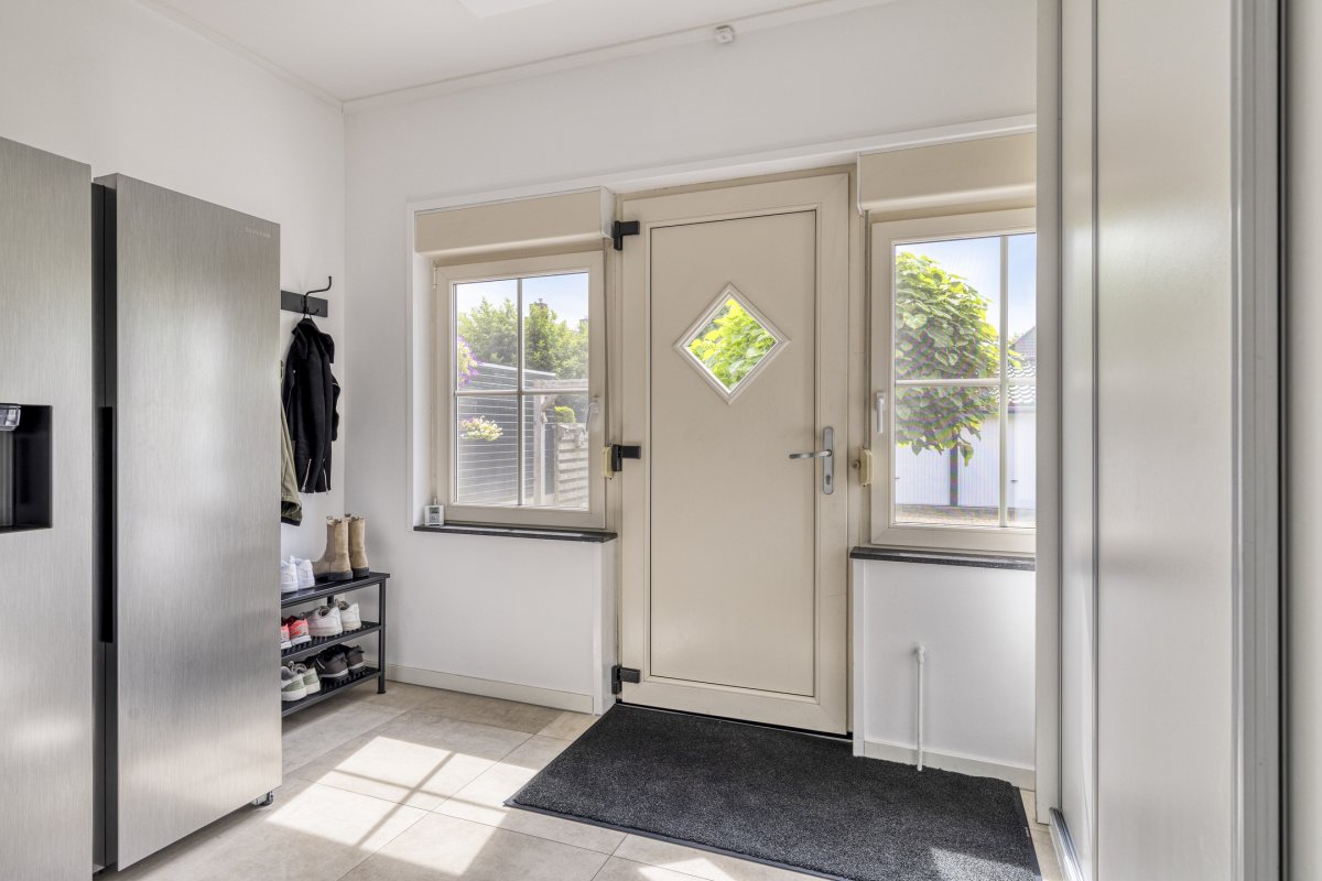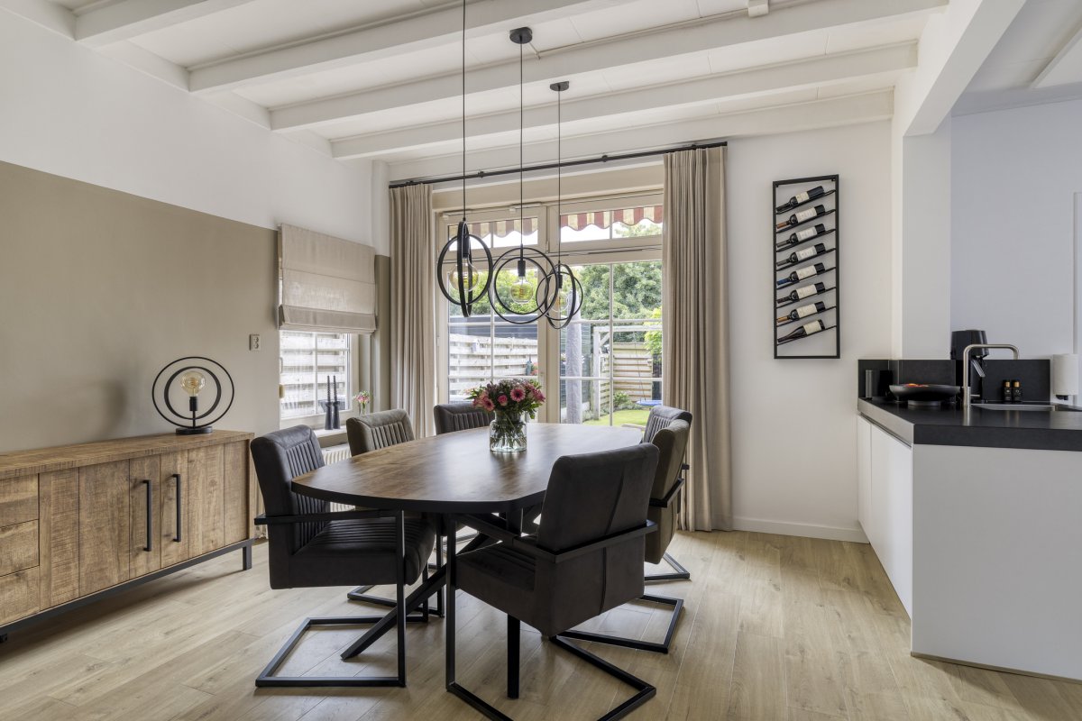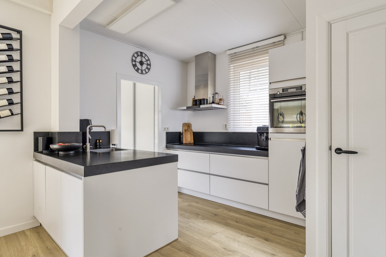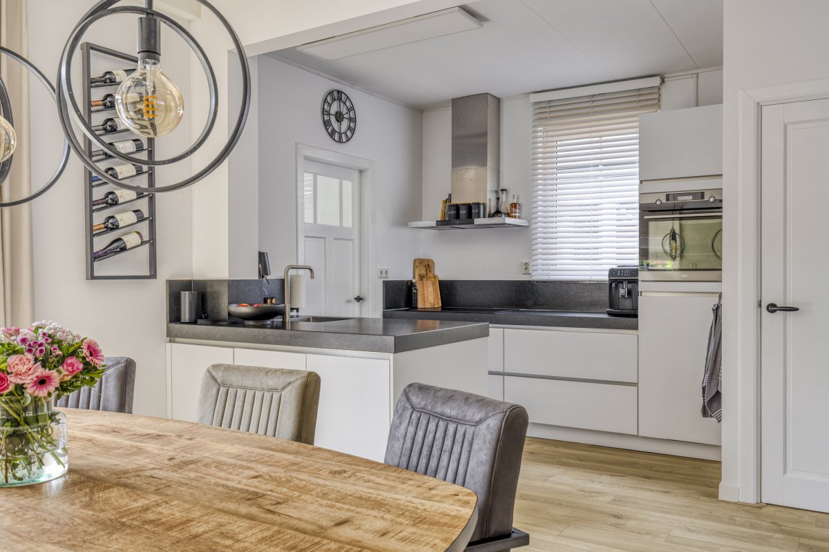 Indeling: entree/hal voorzien van meterkast, modern hangend toilet met fontein en een karakteristieke trapopgang met authentieke details en in dubbelglas verwerkte glas-in-lood ramen. De sfeervolle maar vooral lichte living is grotendeels gesitueerd aan de voorzijde van de woning en geeft toegang tot de provisiekelder alsmede tot de luxe en hoogwaardig afgewerkte, open keuken. De keuken is voorzien van een spoeleiland, inductiekookplaat, vaatwasser, AEG oven, rvs wasemkap, verlichte kastruimten en een natuurstenen aanrechtblad. Tuindeuren geven vanuit de living en keuken toegang tot het terras. De bijkeuken is voorzien van inbouwkasten met de witgoedaansluitingen en een infrarood paneel. De C.V.-opstelling is eveneens opgesteld in de bijkeuken.