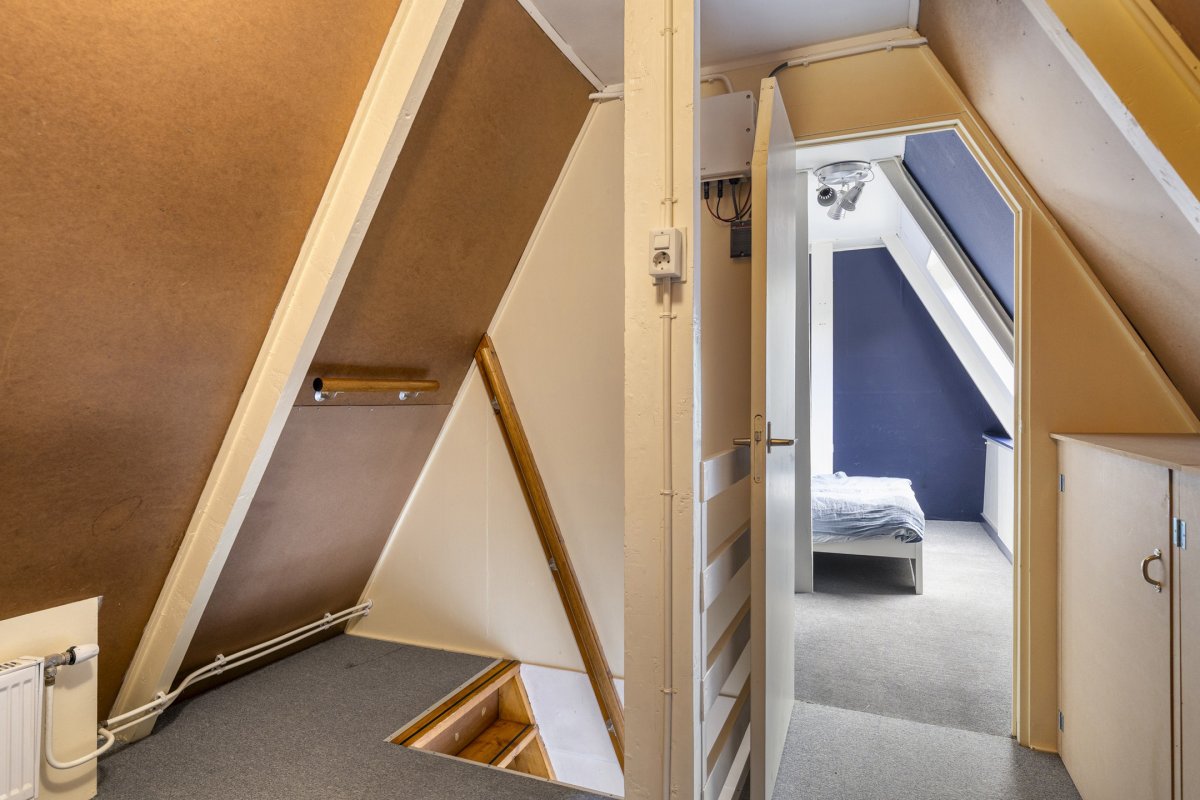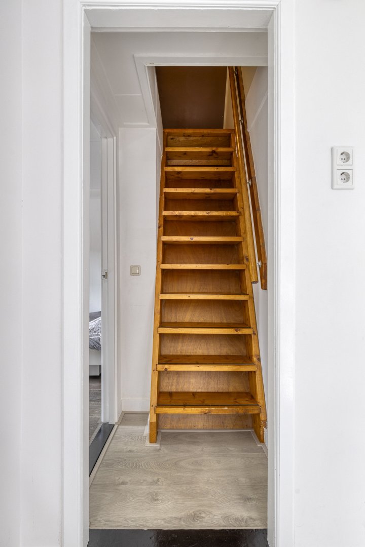 Een vaste trap geeft toegang tot de tweede verdieping. Op de tweede verdieping bevinden zich de bergzolder en een 4e slaapkamer.