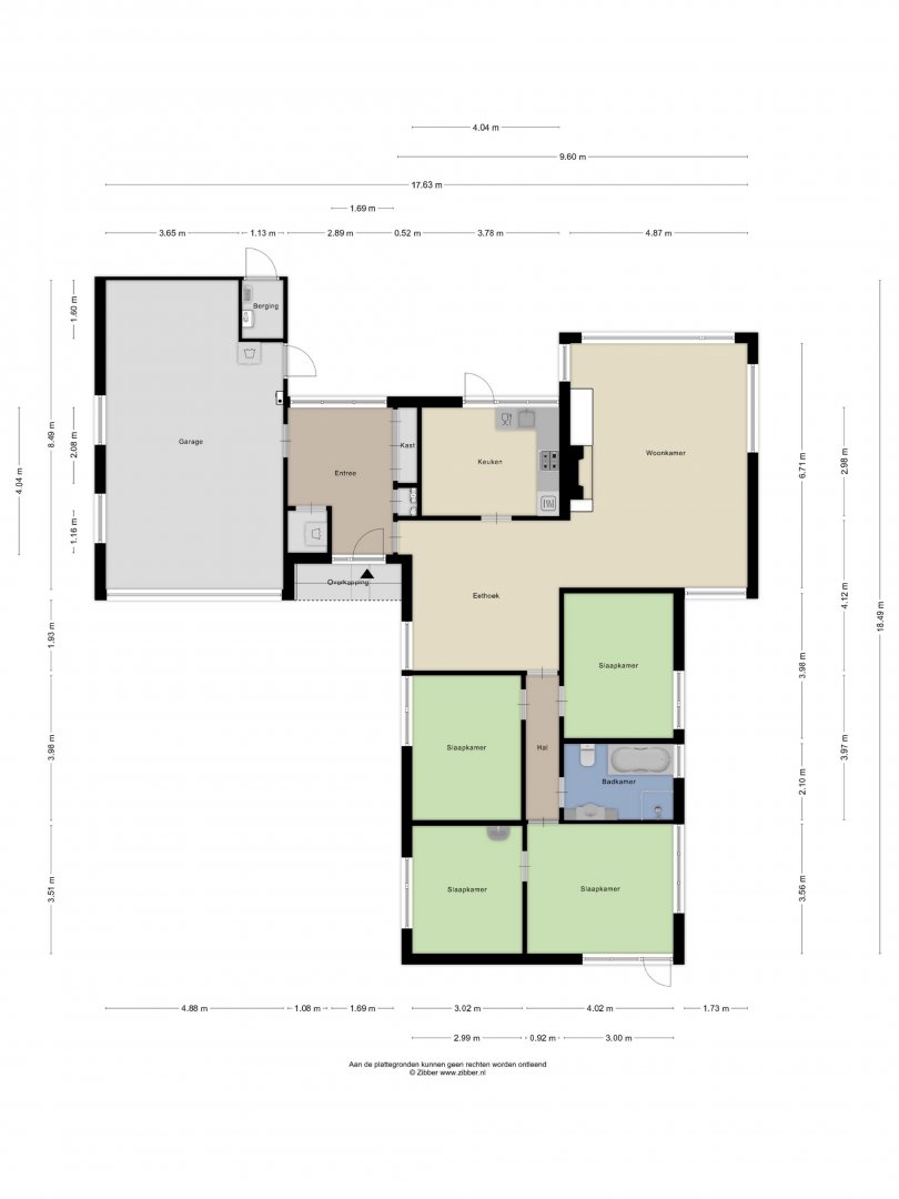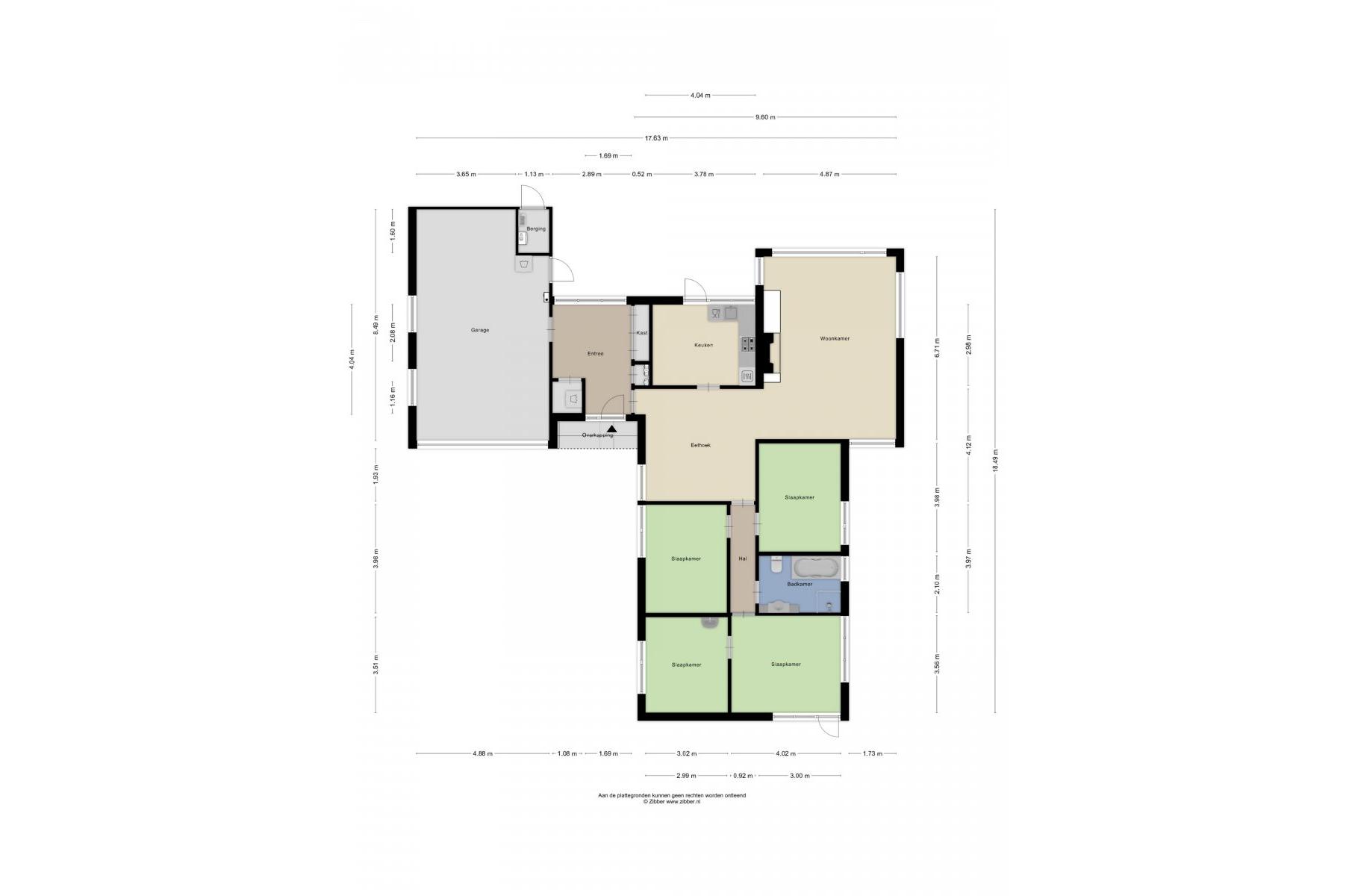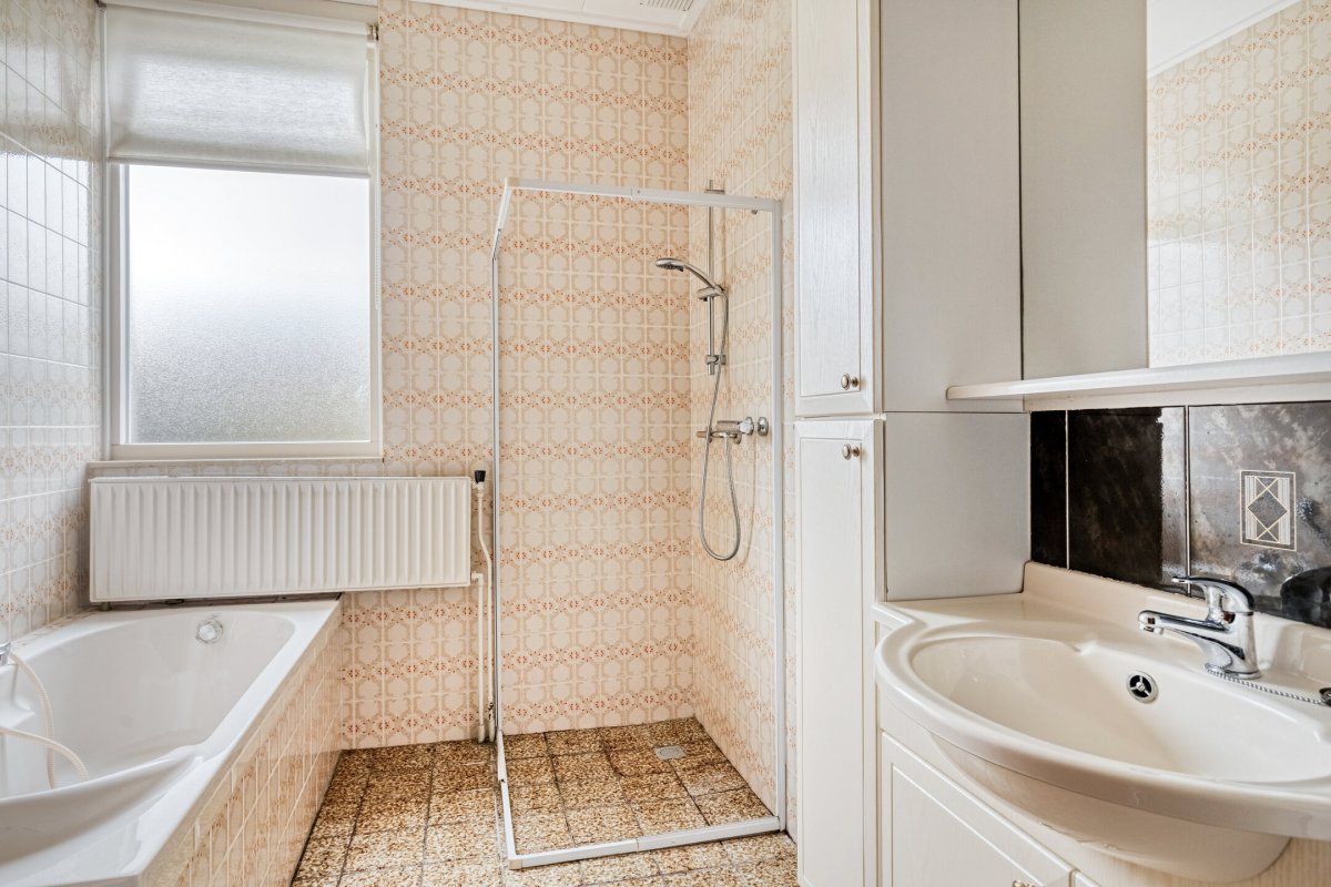 Indeling: royale hal/entree, toilet met fontein, Z-vormige woonkamer ca.52m² voorzien van schouw en inzet haard, keuken ca.3.80x3.00m met moderne hoekkeuken voorzien van 4 pits gaskookplaat, wasemkap, oven, koelkast en vaatwasser, tussenhal, 4 slaapkamers resp. ca.4.05x3.50m, ca.3.50x3.05m met wastafel, ca.4.00x3.00m en ca.4.00x3.00m, badkamer ca.4.00x2.10m voorzien van ligbad, toilet, douchecabine en wastafelmeubel, garage 8.50x4.80m met elektrische segmentdeur en toegang tot de tuin, c.v. ruimte.