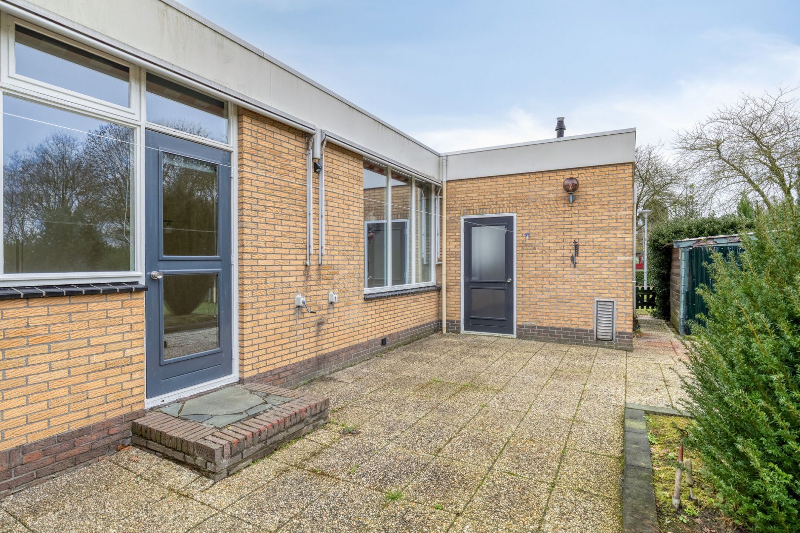 Rustig aan de rand van het dorp maar ook dichtbij het centrum met alle voorzieningen gelegen, vrijstaande bungalow met garage.