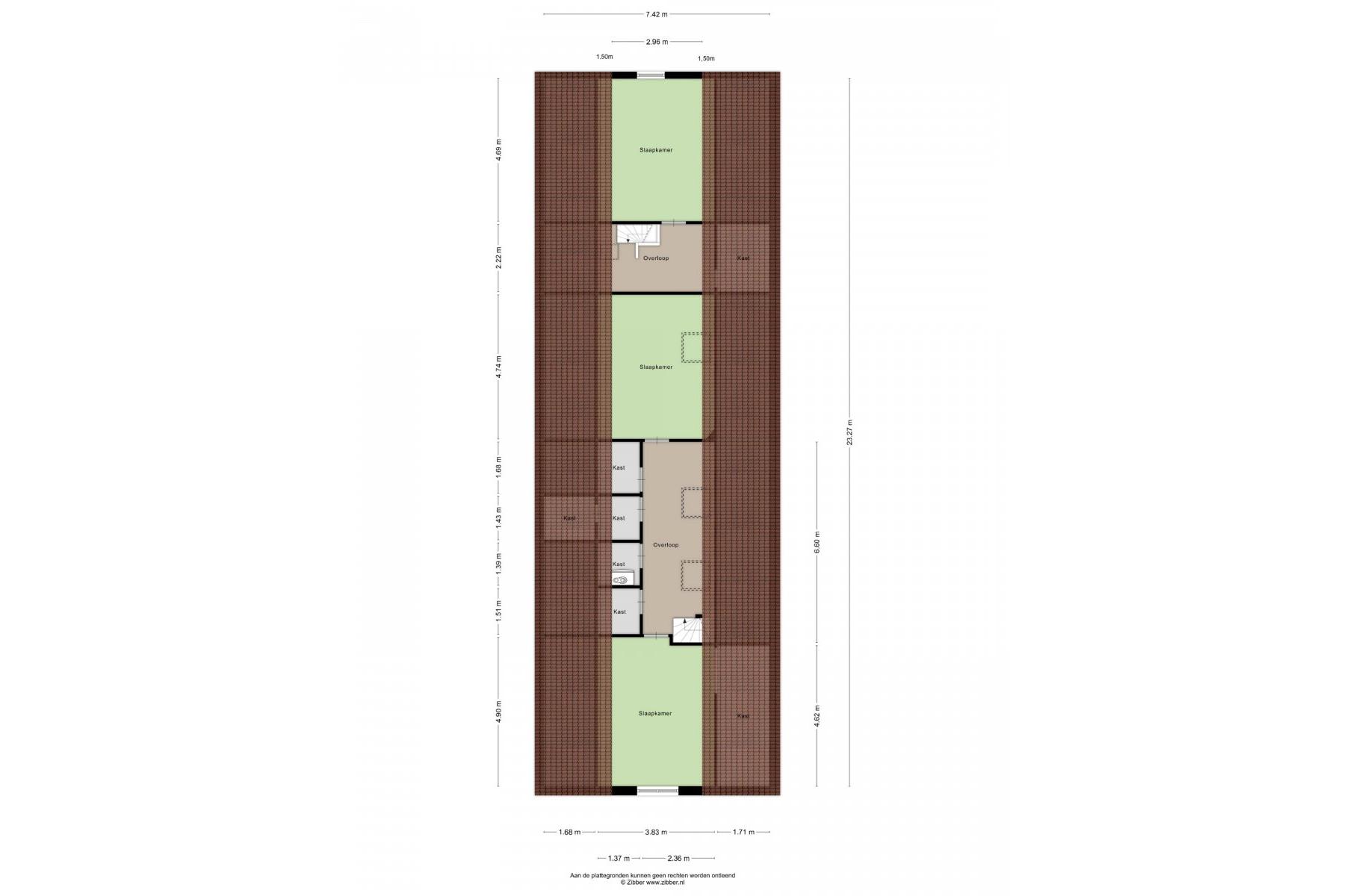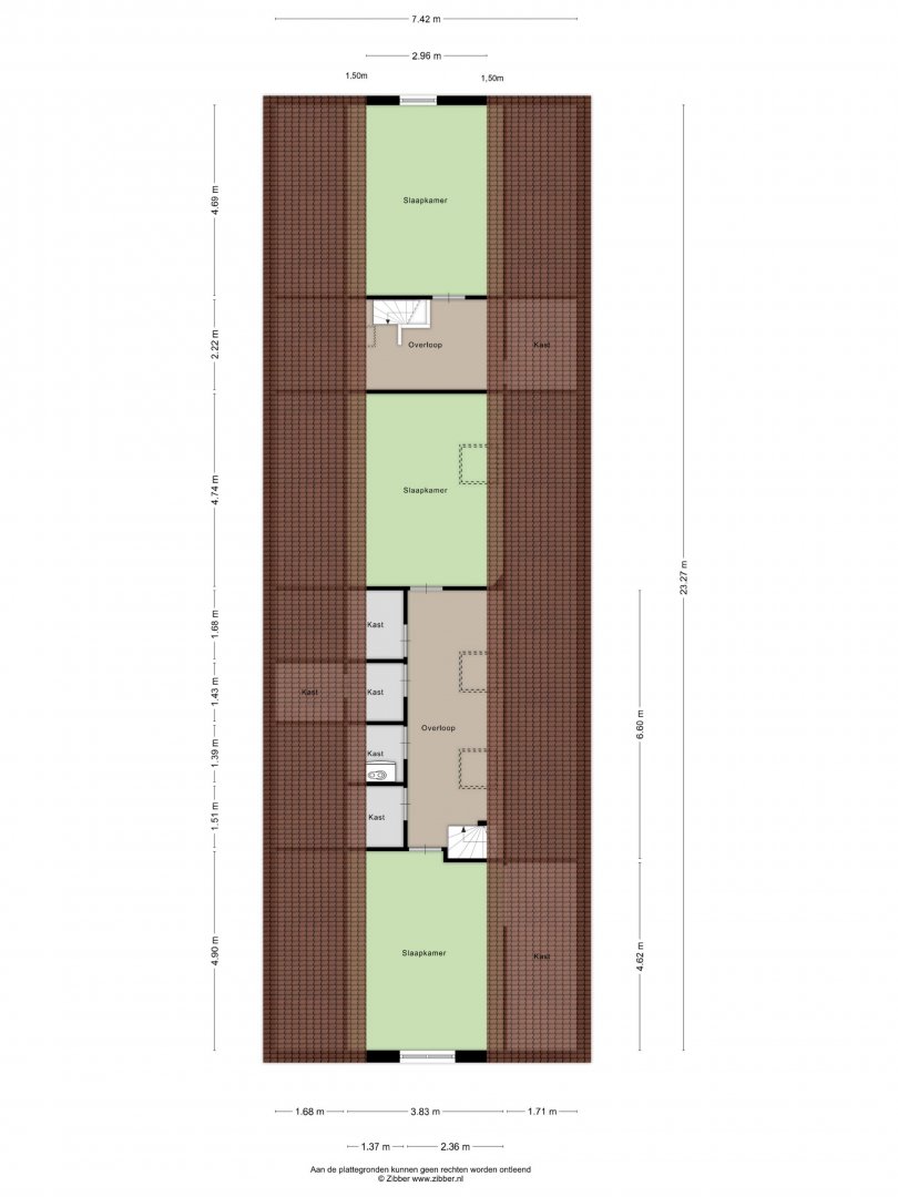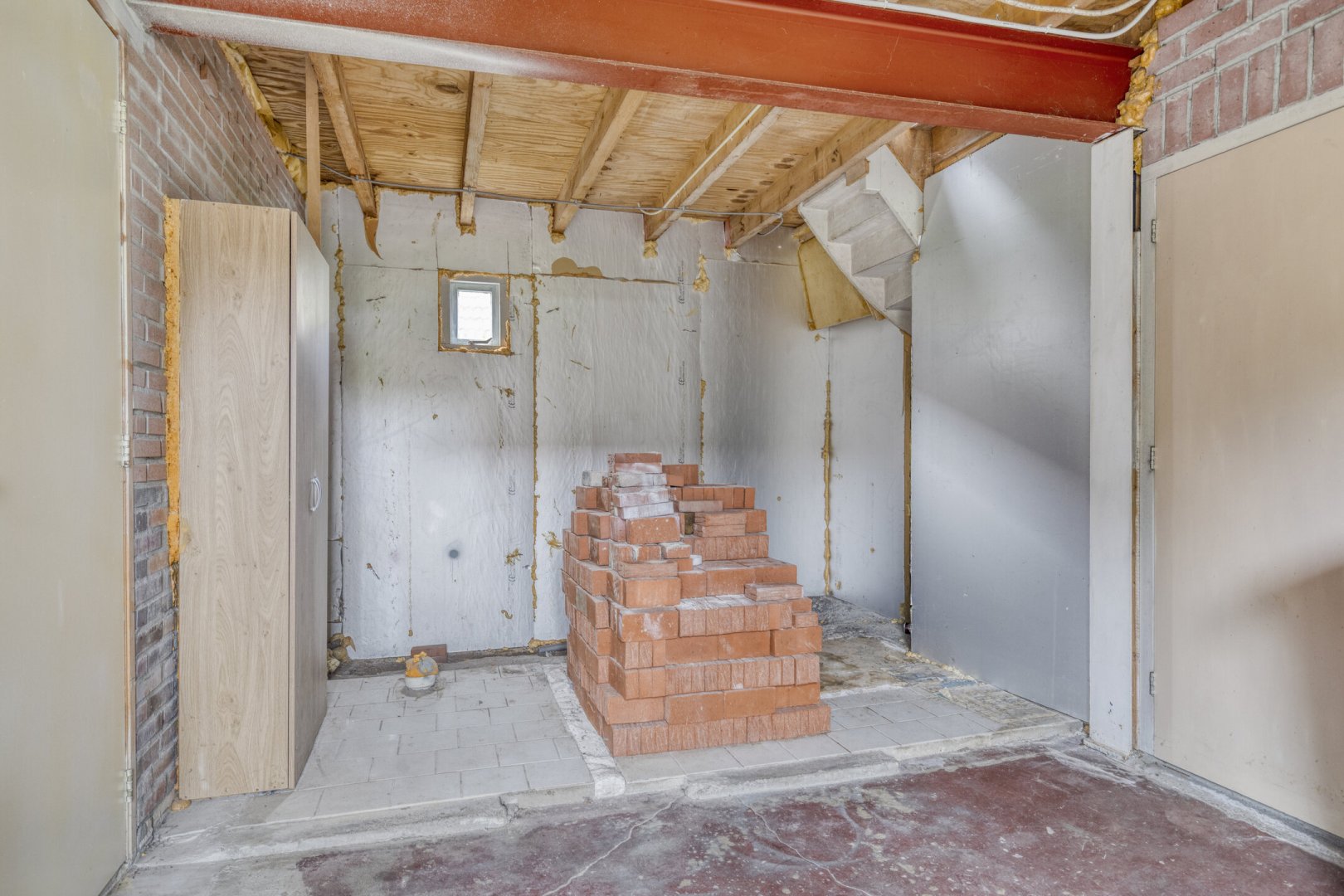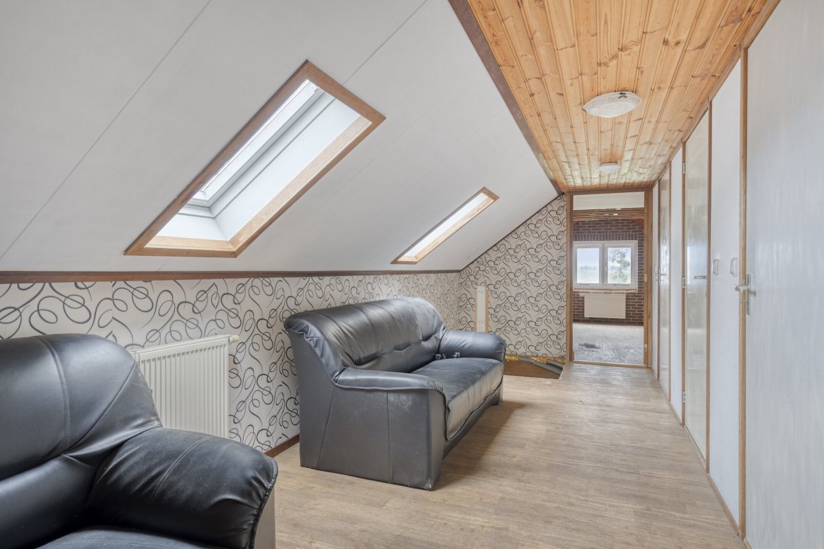 Verdieping: overloop, kastruimtes, c.v. ruimte, mogelijkheid voor 2e toilet, 3 slaapkamers.