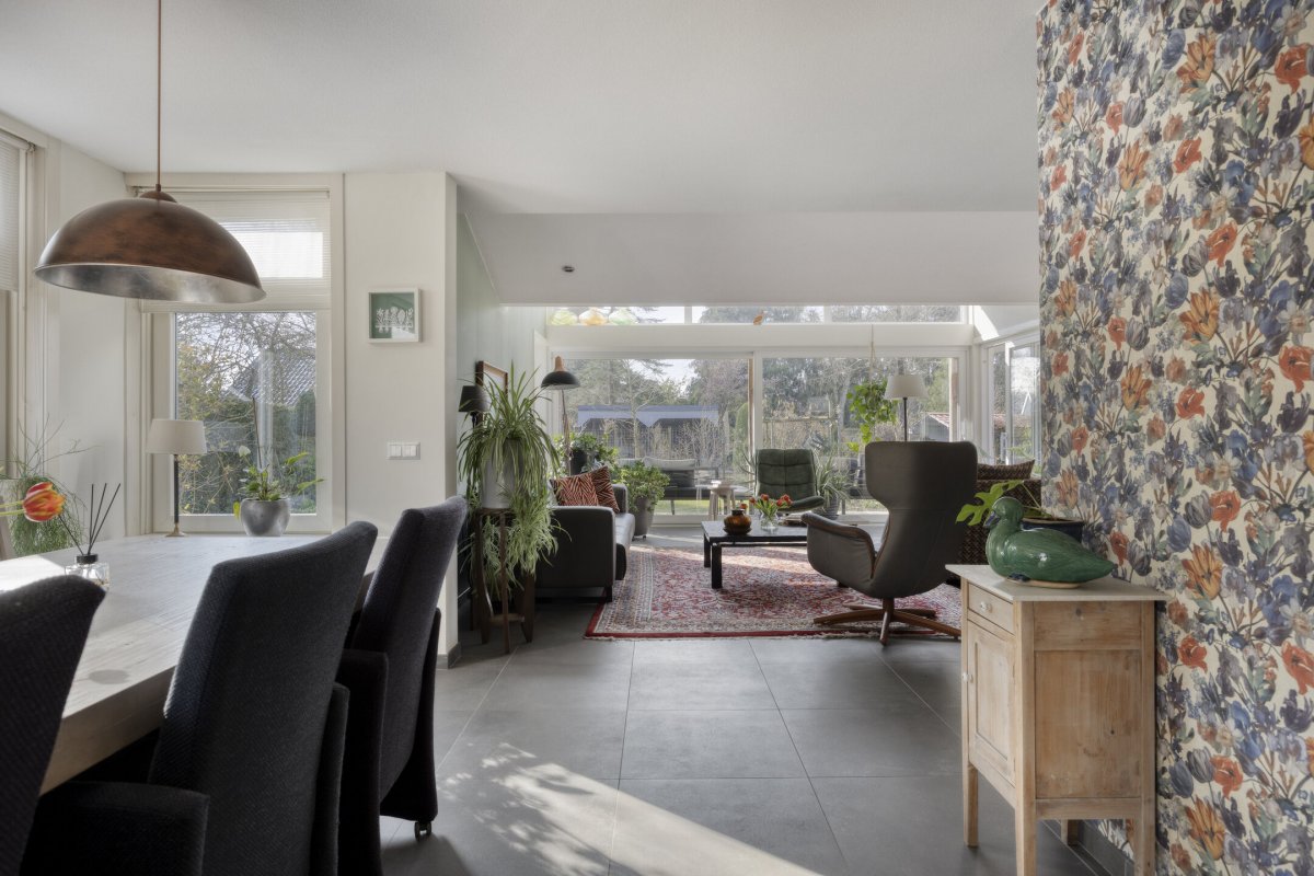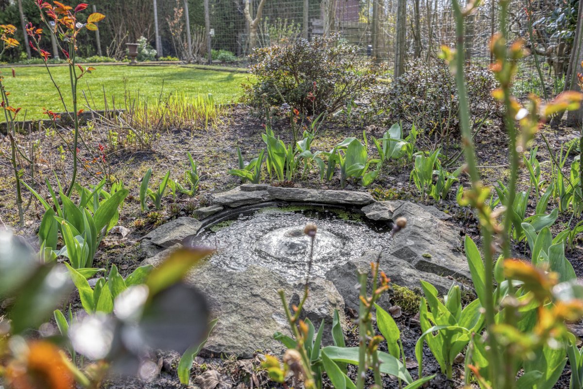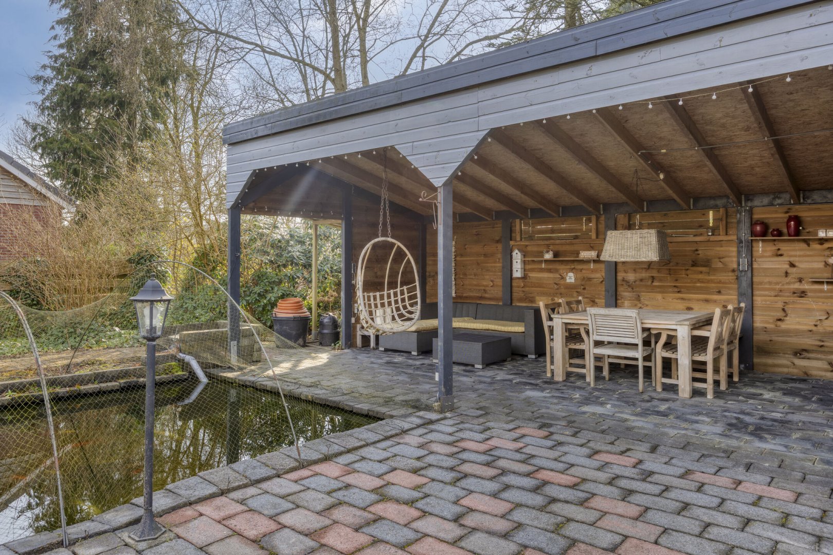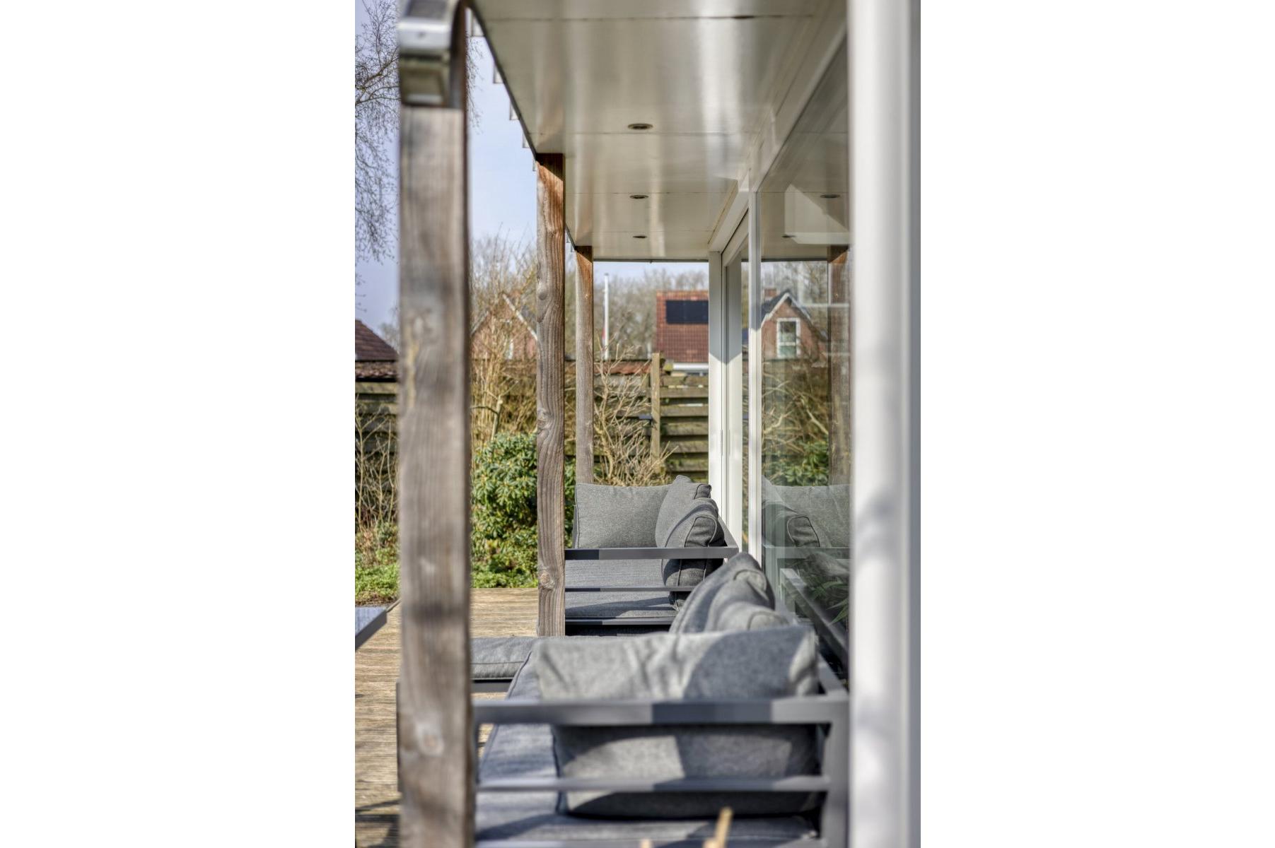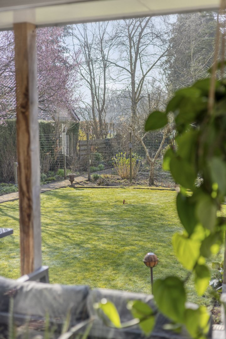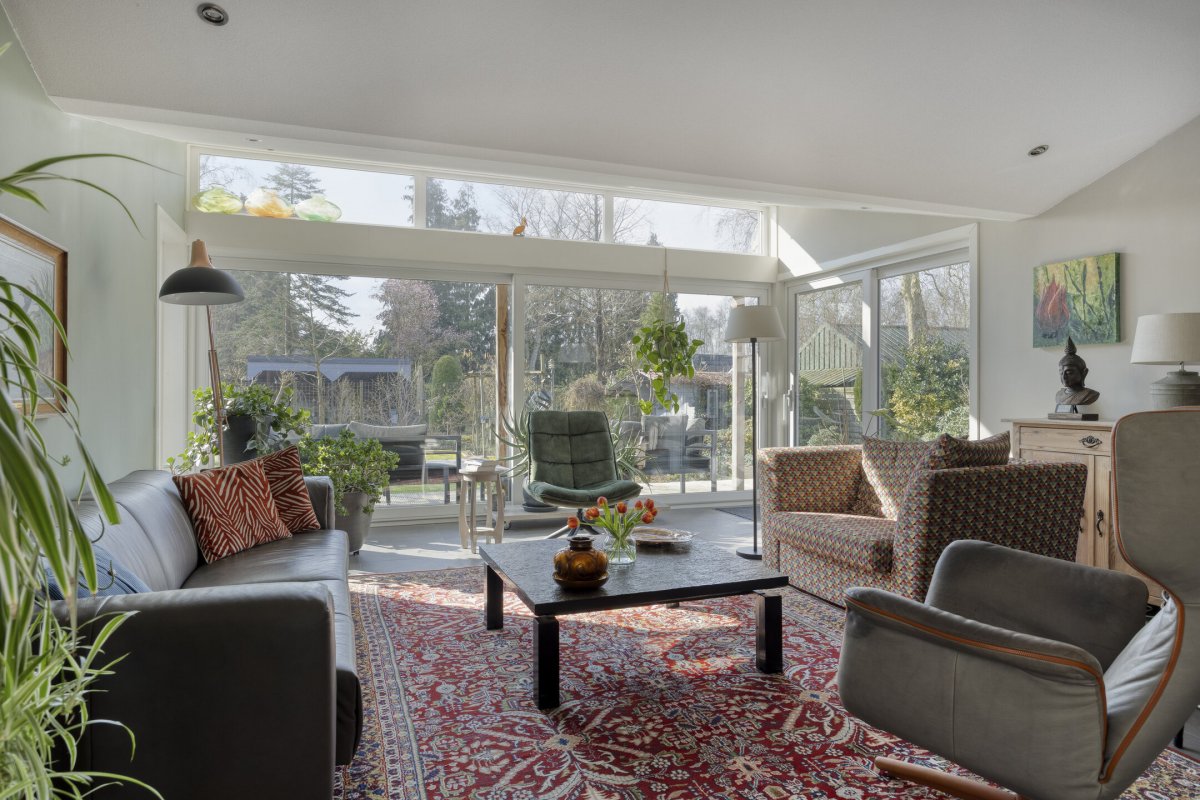 Op rustige locatie, beschut gelegen gemoderniseerde vrijstaande woning met carport, houten tuinhuis, terrasoverkapping, volière, erf en fraai aangelegde tuin op het zuiden met vijverpartij en veel privacy.