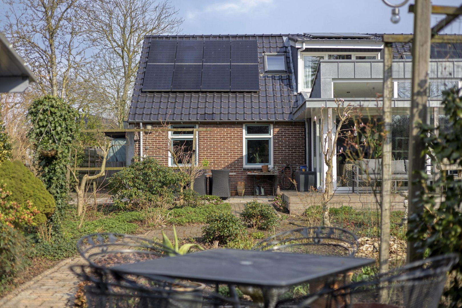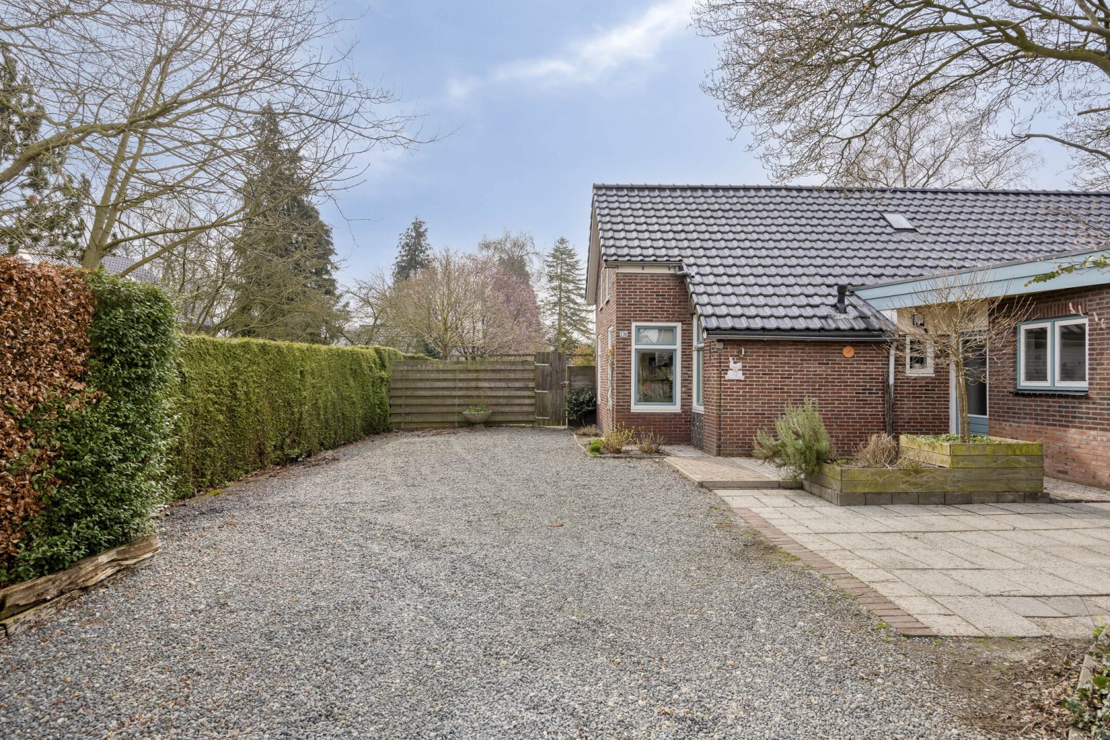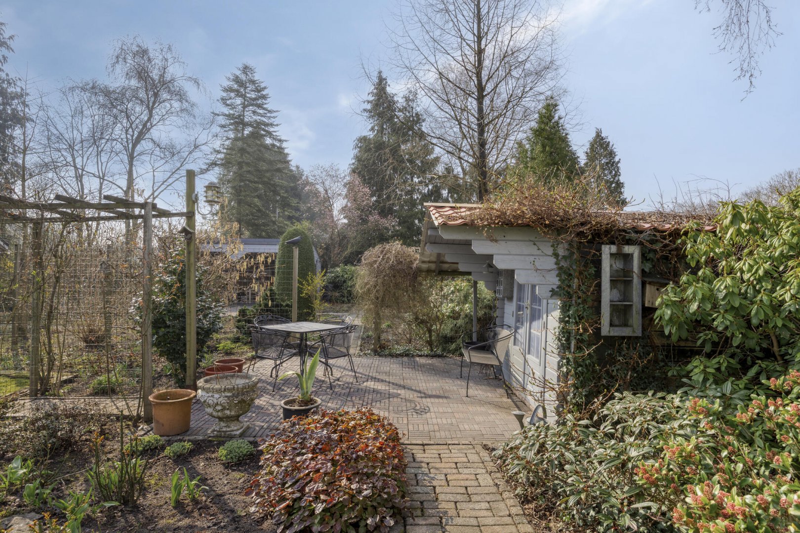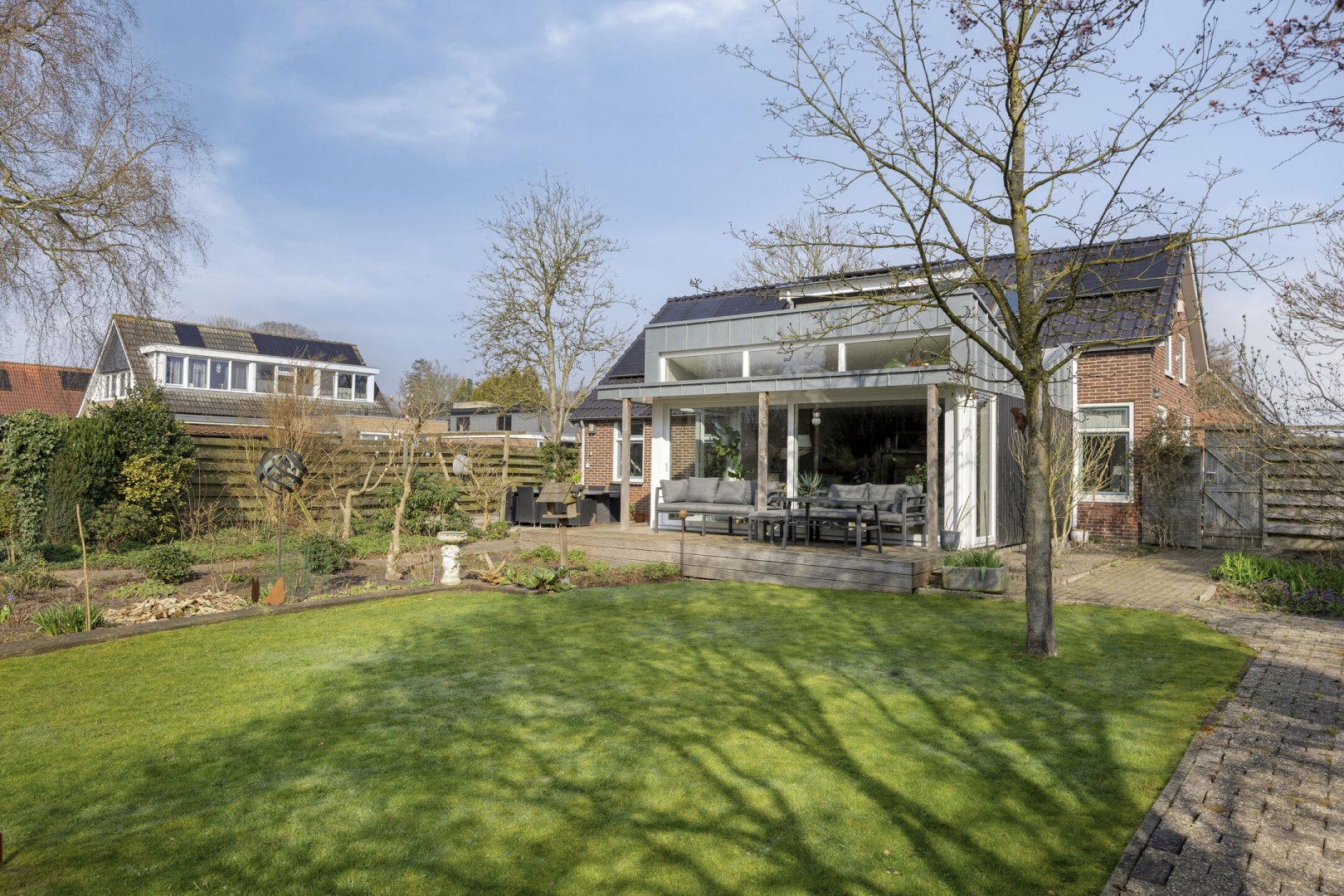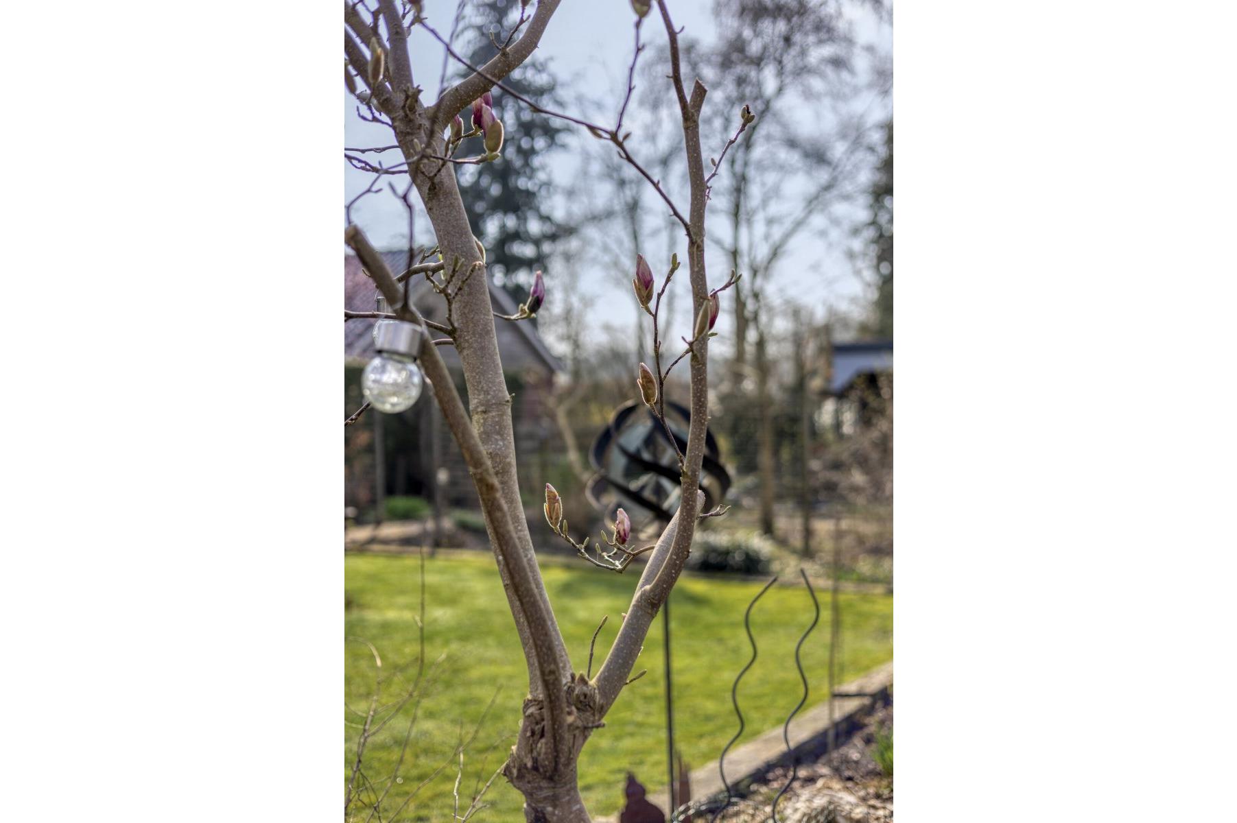 Op rustige locatie, beschut gelegen gemoderniseerde vrijstaande woning met carport, houten tuinhuis, terrasoverkapping, volière, erf en fraai aangelegde tuin op het zuiden met vijverpartij en veel privacy.