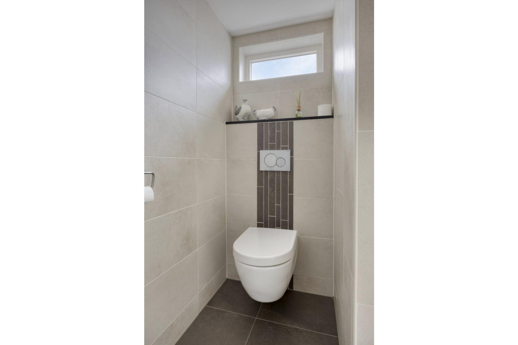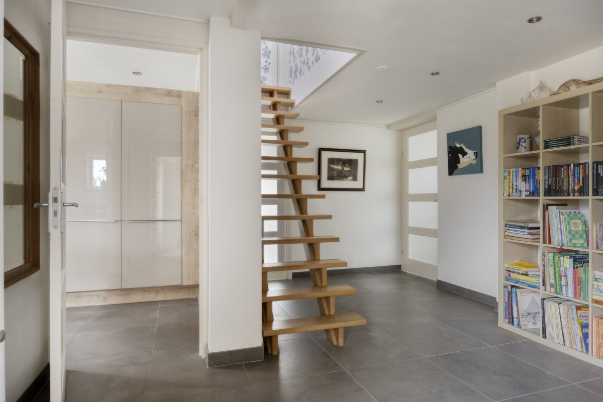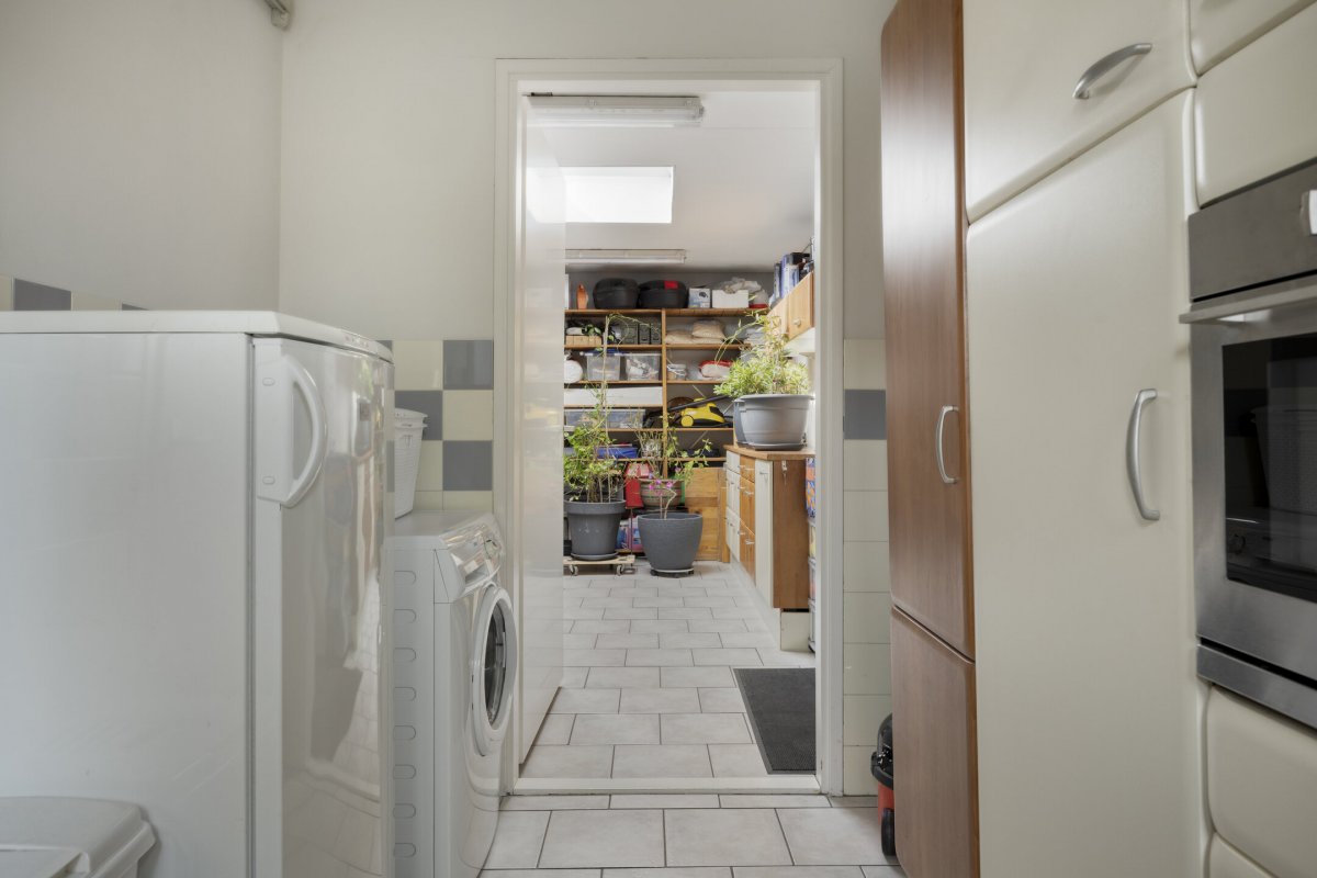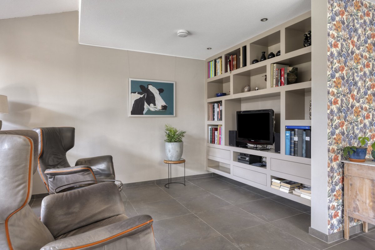 Begane grond: entree, royale hal met trapopgang (plv.), modern hangend toilet met fontein, riante tuingerichte lichte living ca.66m² met vloerverwarming en twee hefschuifpuien naar het terras, open keuken met kookeiland voorzien van inductie kookplaat, wasemkap, vaatwasser, oven en Quooker, bijkeuken (plv) ca.3.20x2.25m, slaapkamer ca.5.30x3.30m (laminaatvloer), moderne badkamer ca.4.30x2.30m voorzien badkamermeubel, inloopdouche, ligbad en 2e hangend toilet, berging ca.4.75x3.30m.