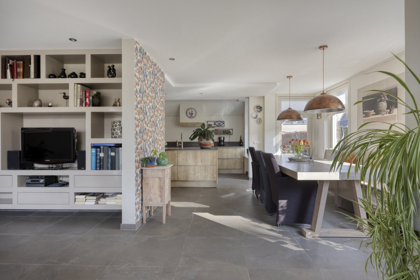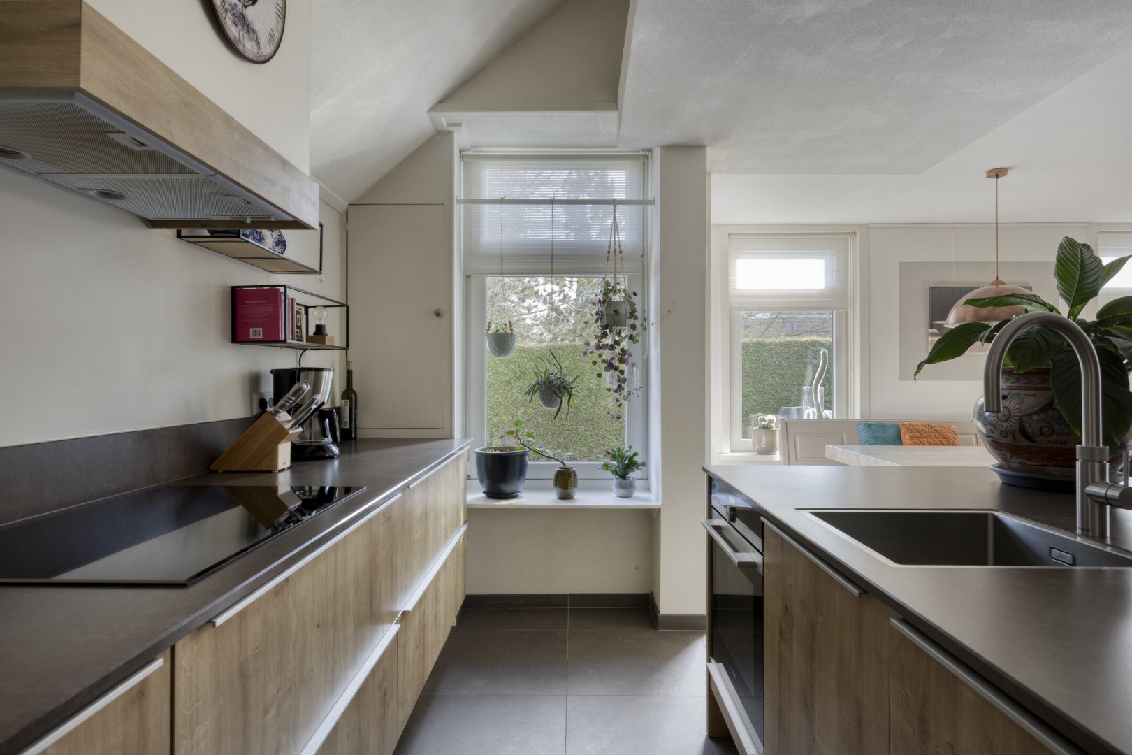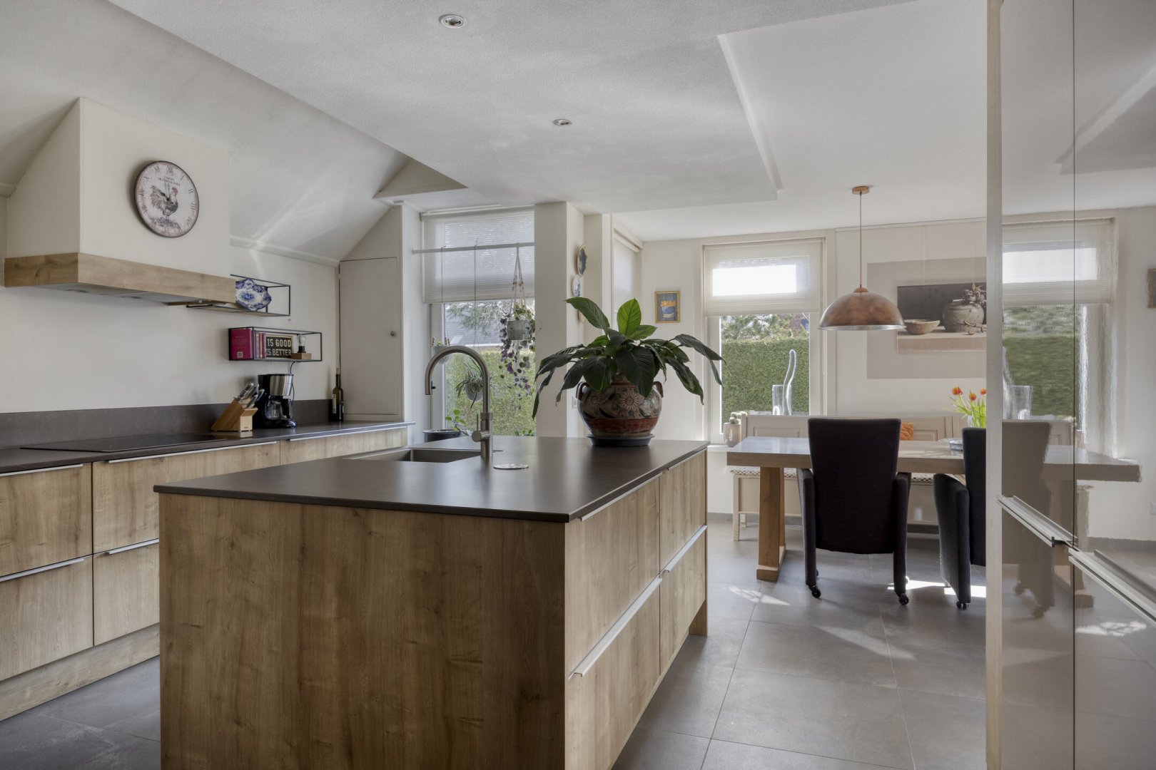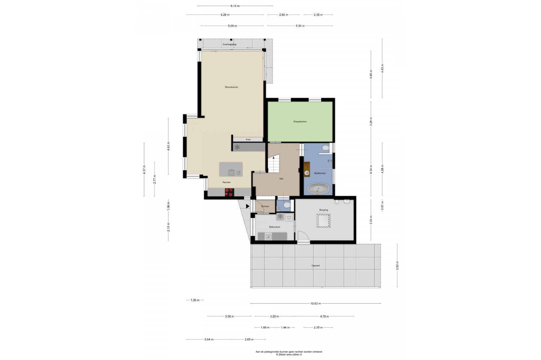 Begane grond: entree, royale hal met trapopgang (plv.), modern hangend toilet met fontein, riante tuingerichte lichte living ca.66m² met vloerverwarming en twee hefschuifpuien naar het terras, open keuken met kookeiland voorzien van inductie kookplaat, wasemkap, vaatwasser, oven en Quooker, bijkeuken (plv) ca.3.20x2.25m, slaapkamer ca.5.30x3.30m (laminaatvloer), moderne badkamer ca.4.30x2.30m voorzien badkamermeubel, inloopdouche, ligbad en 2e hangend toilet, berging ca.4.75x3.30m.