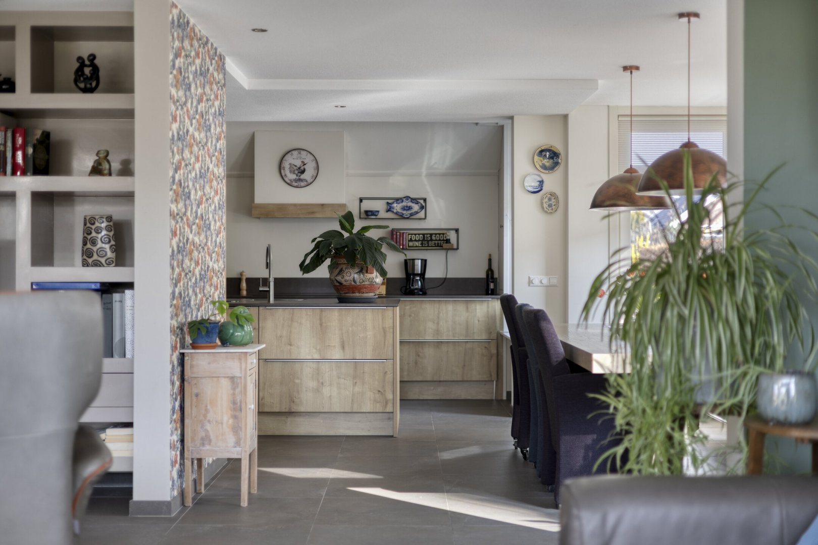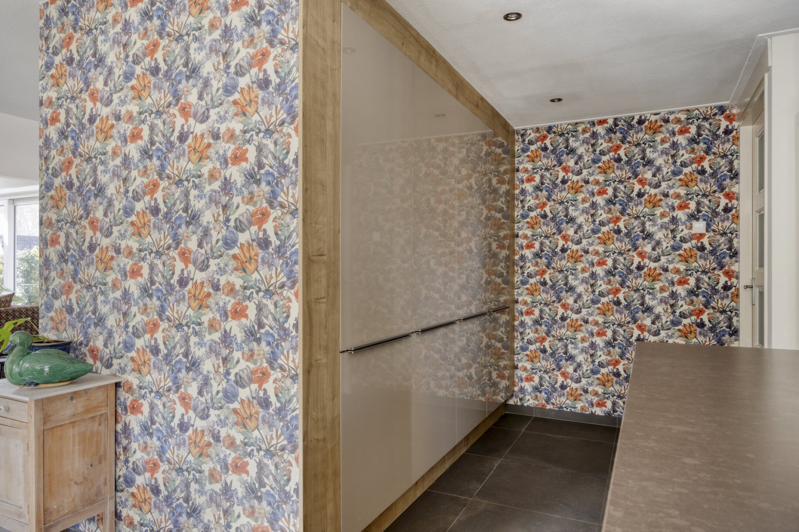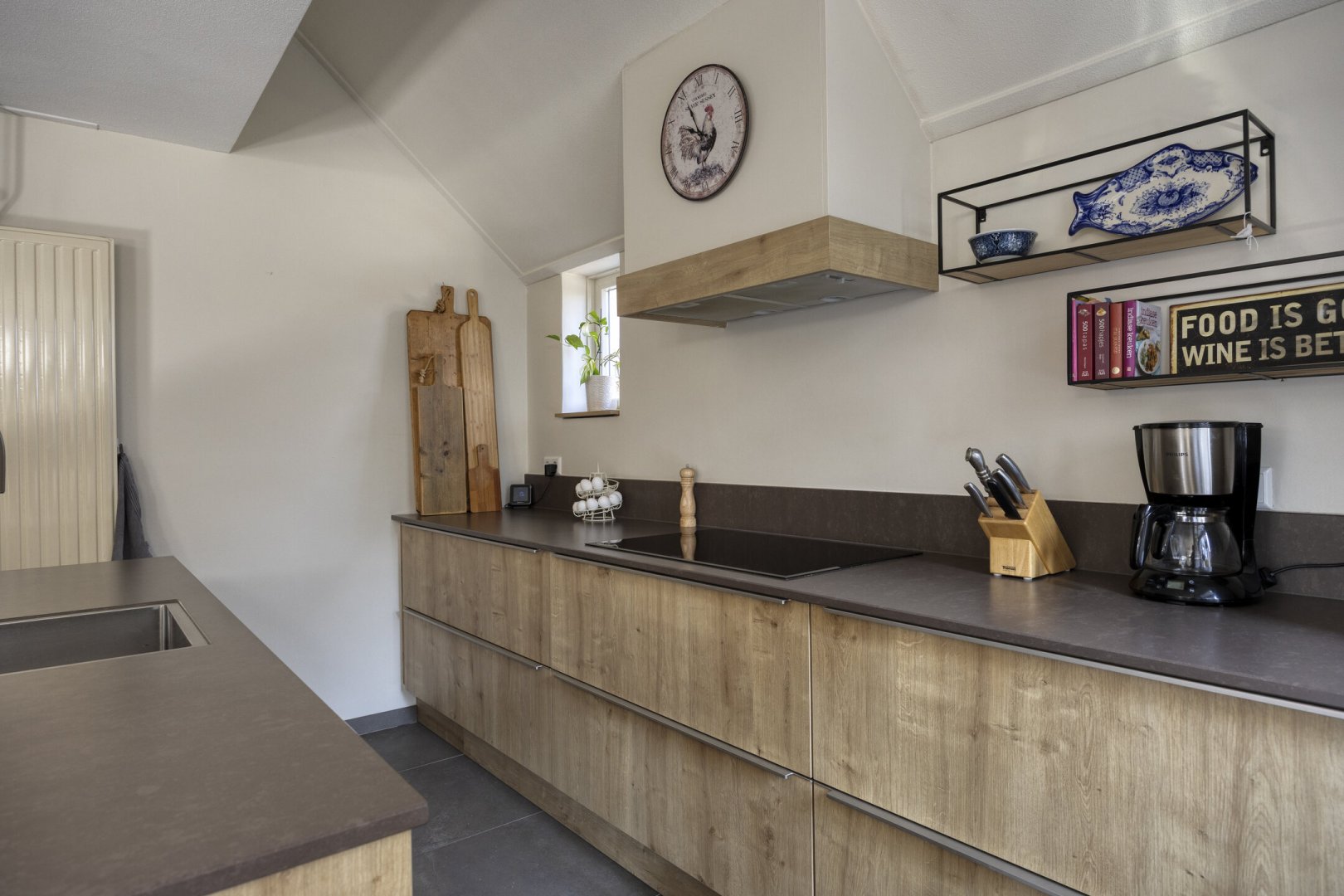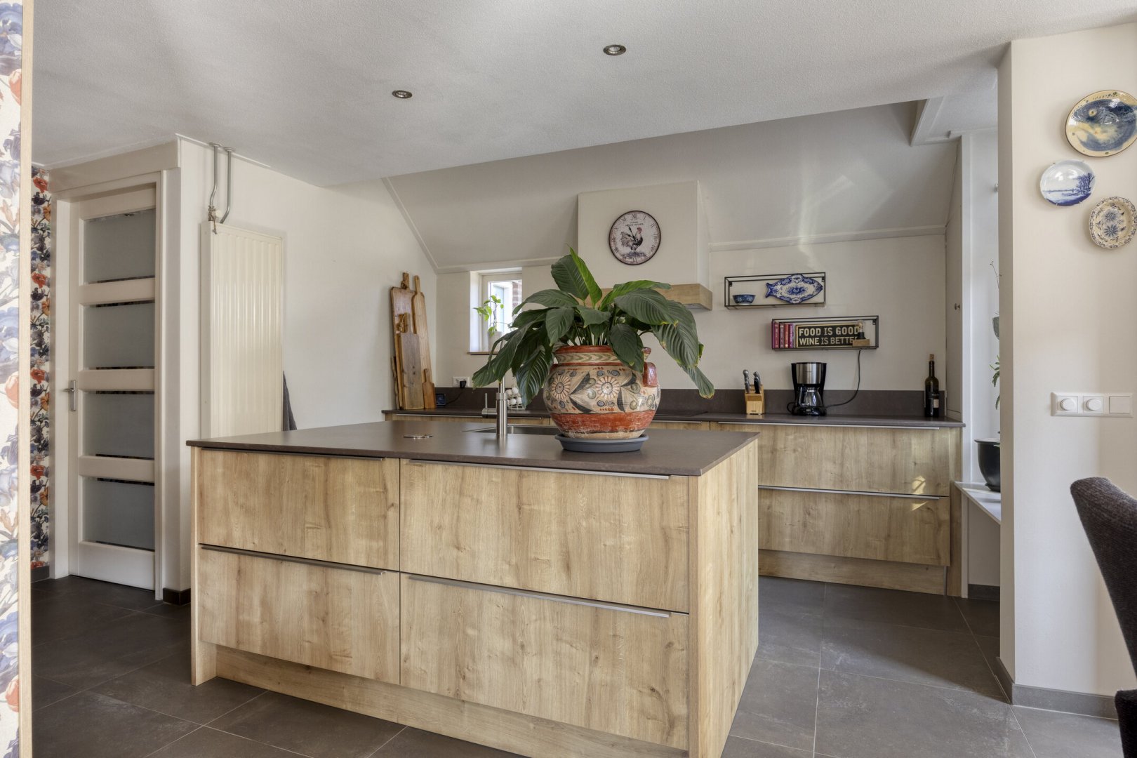 Begane grond: entree, royale hal met trapopgang (plv.), modern hangend toilet met fontein, riante tuingerichte lichte living ca.66m² met vloerverwarming en twee hefschuifpuien naar het terras, open keuken met kookeiland voorzien van inductie kookplaat, wasemkap, vaatwasser, oven en Quooker, bijkeuken (plv) ca.3.20x2.25m, slaapkamer ca.5.30x3.30m (laminaatvloer), moderne badkamer ca.4.30x2.30m voorzien badkamermeubel, inloopdouche, ligbad en 2e hangend toilet, berging ca.4.75x3.30m.