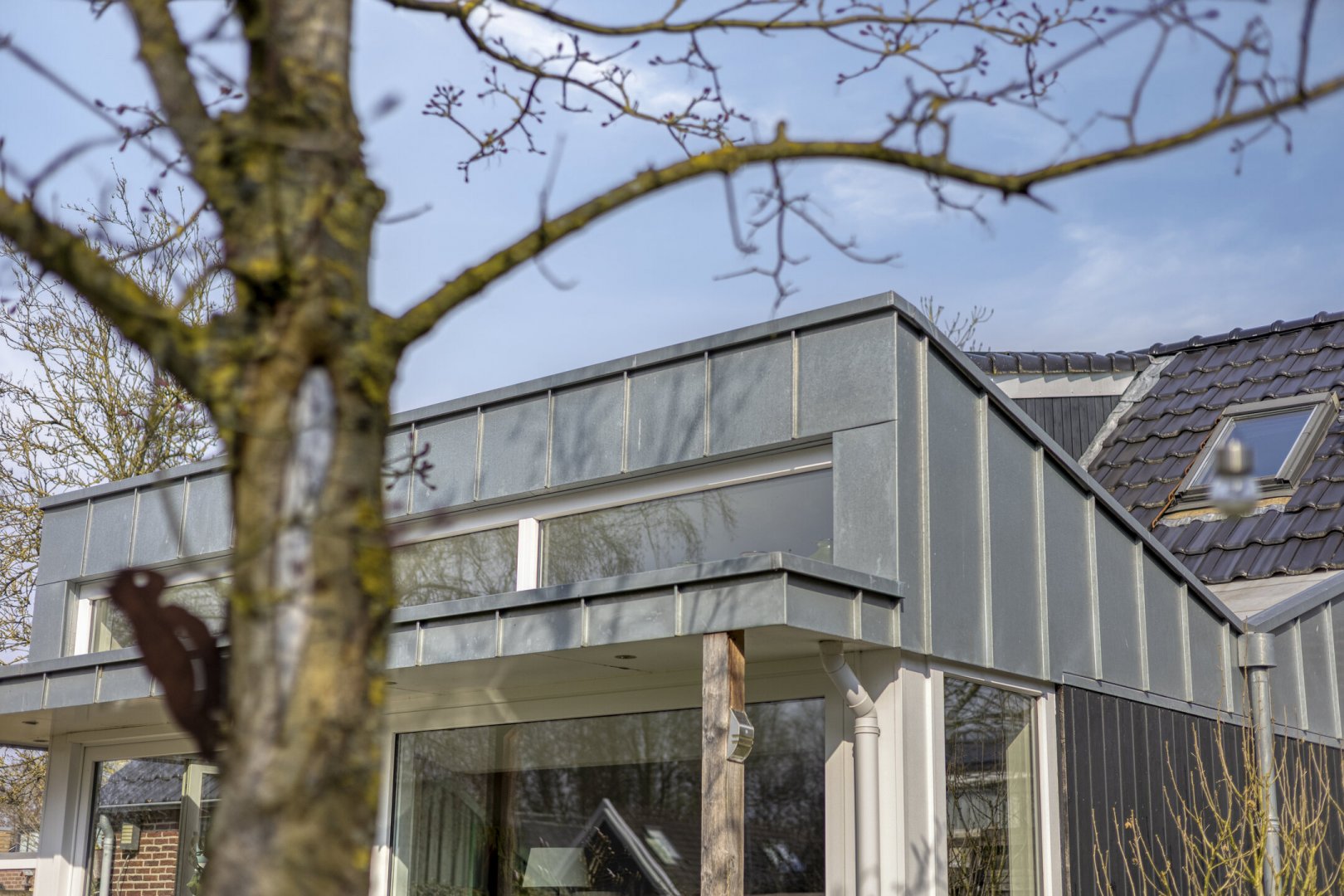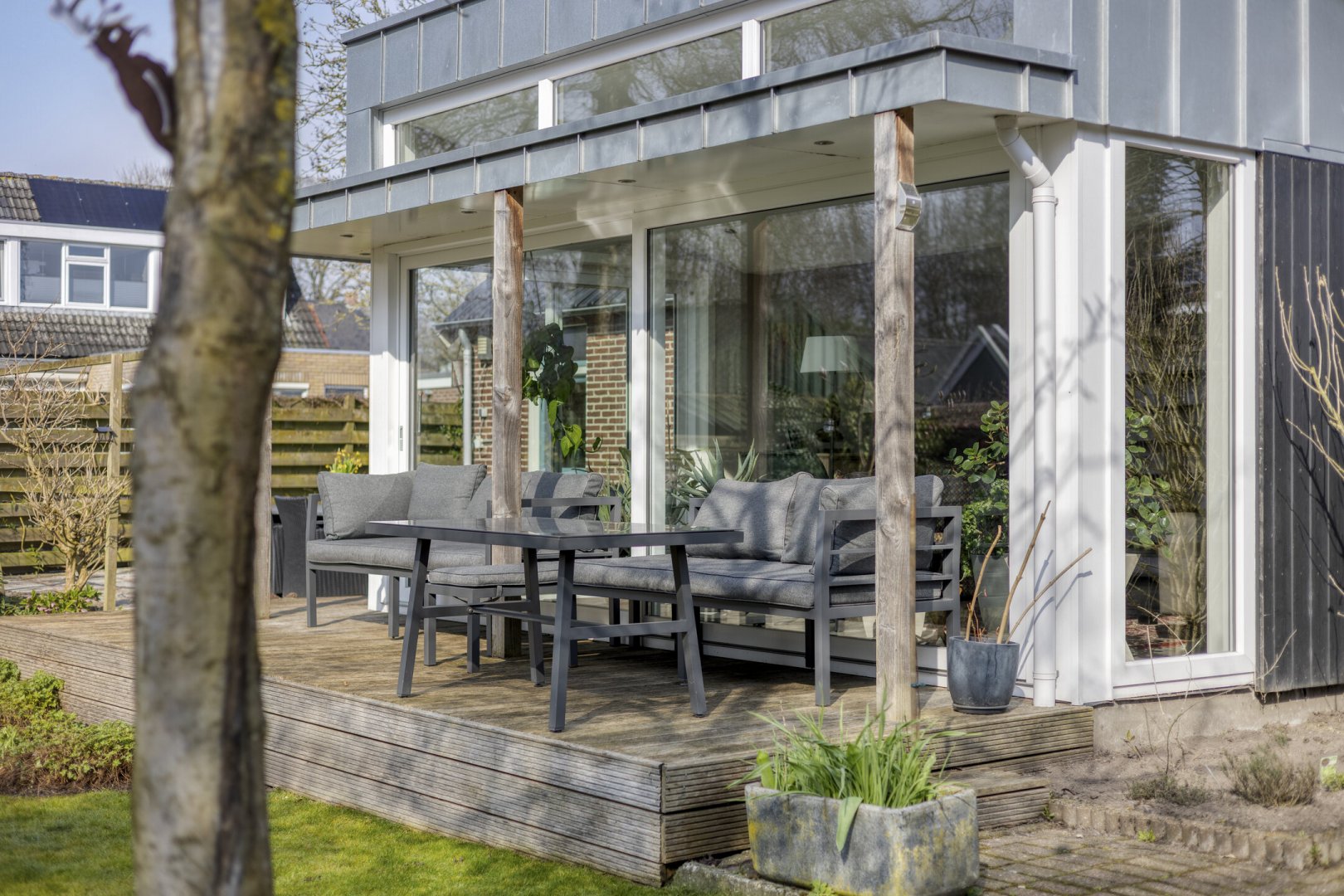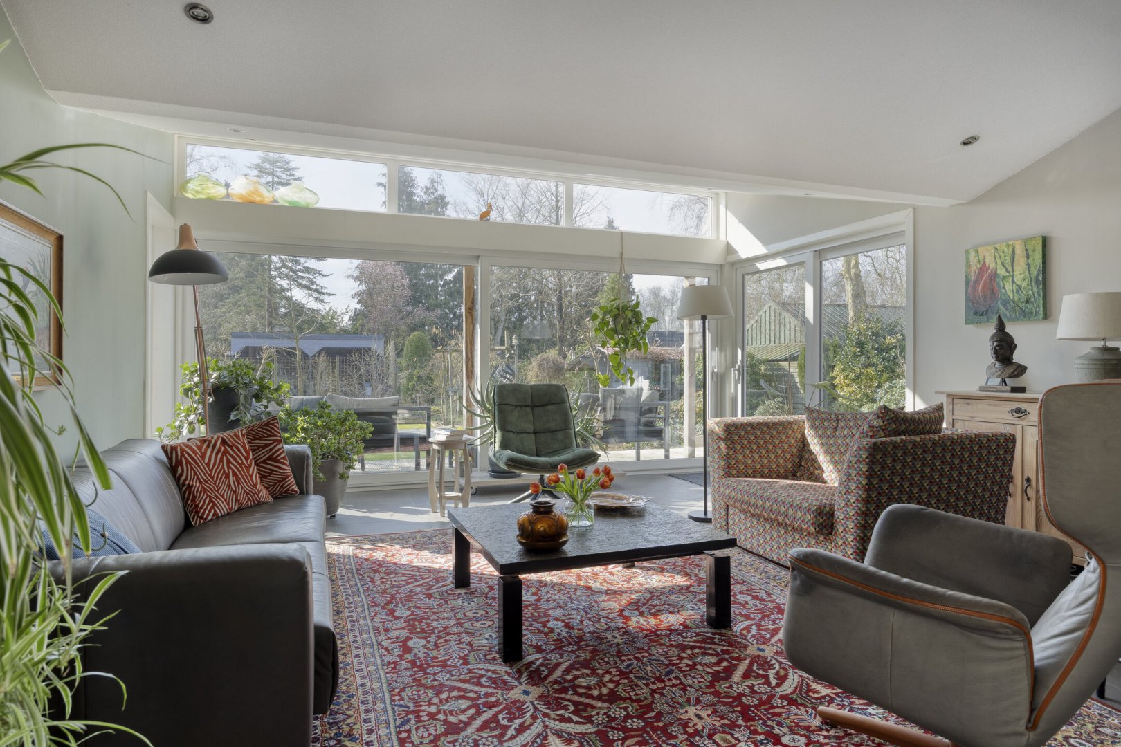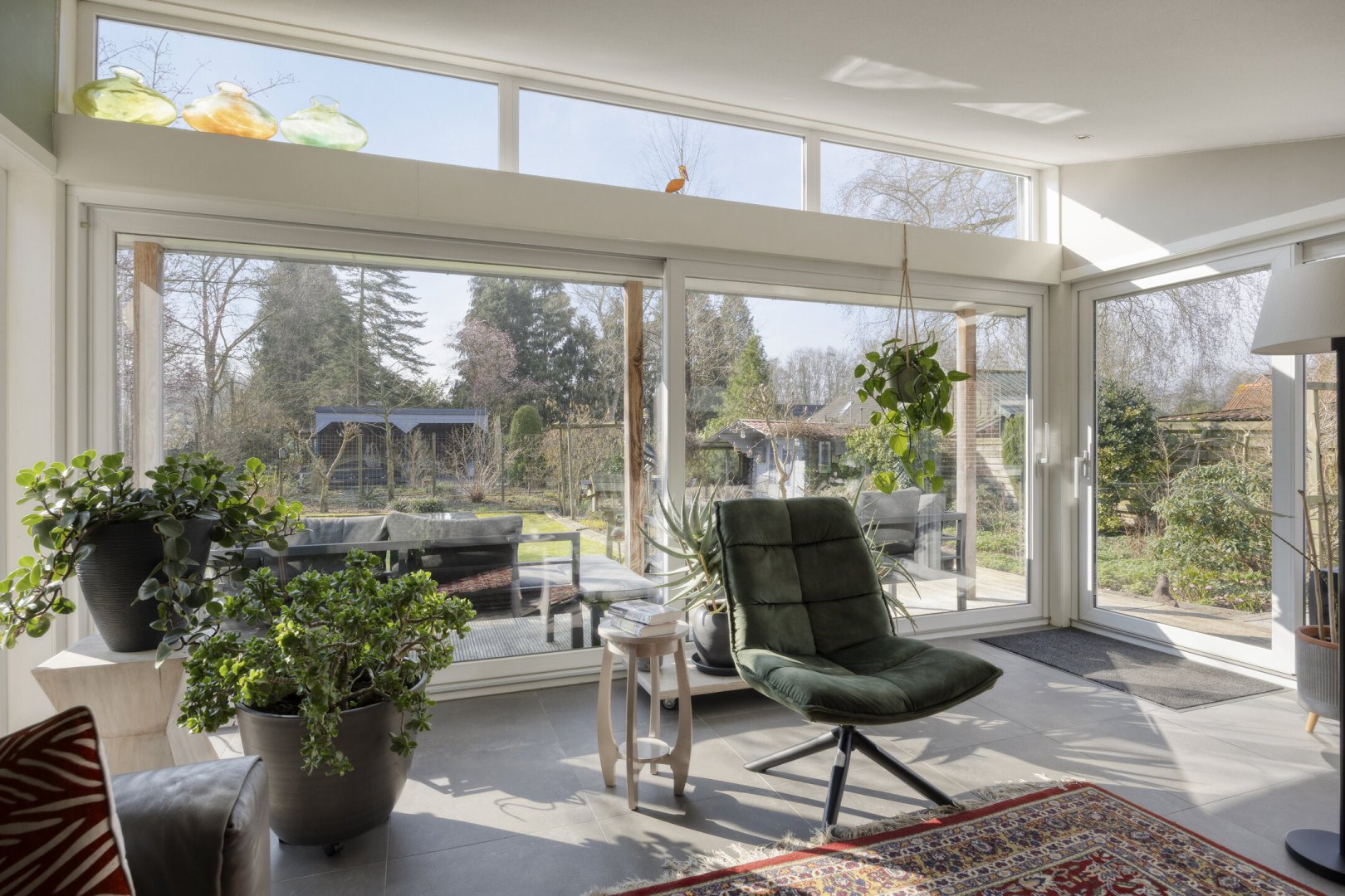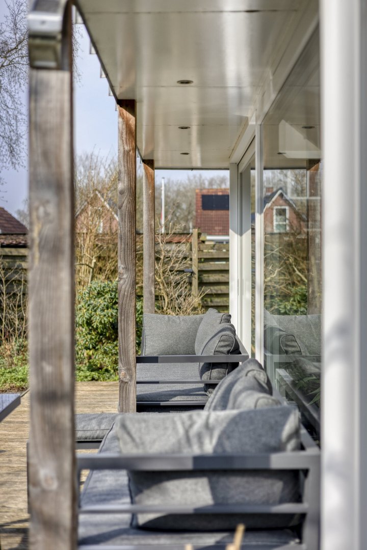 - Grotendeels kunststofkozijnwerk (HR++)