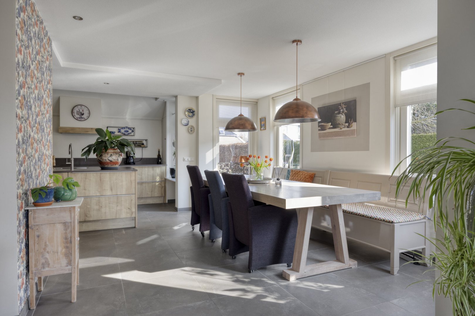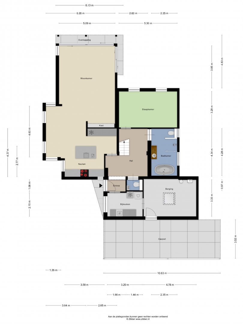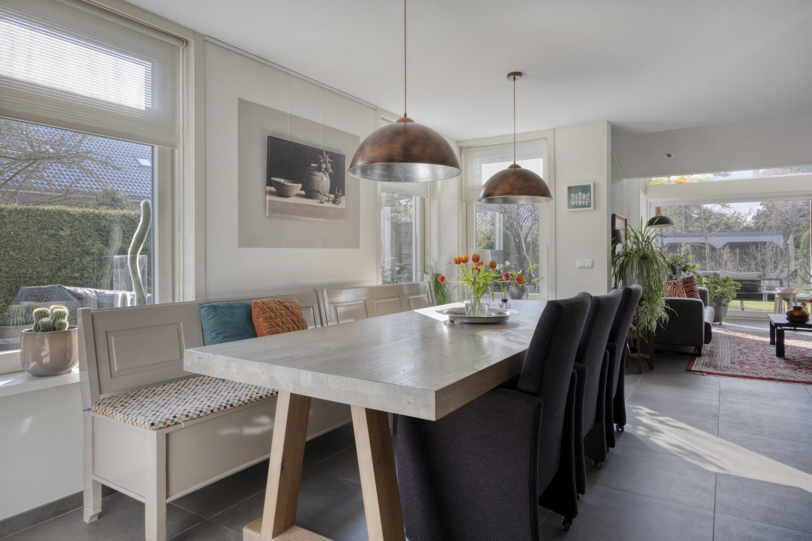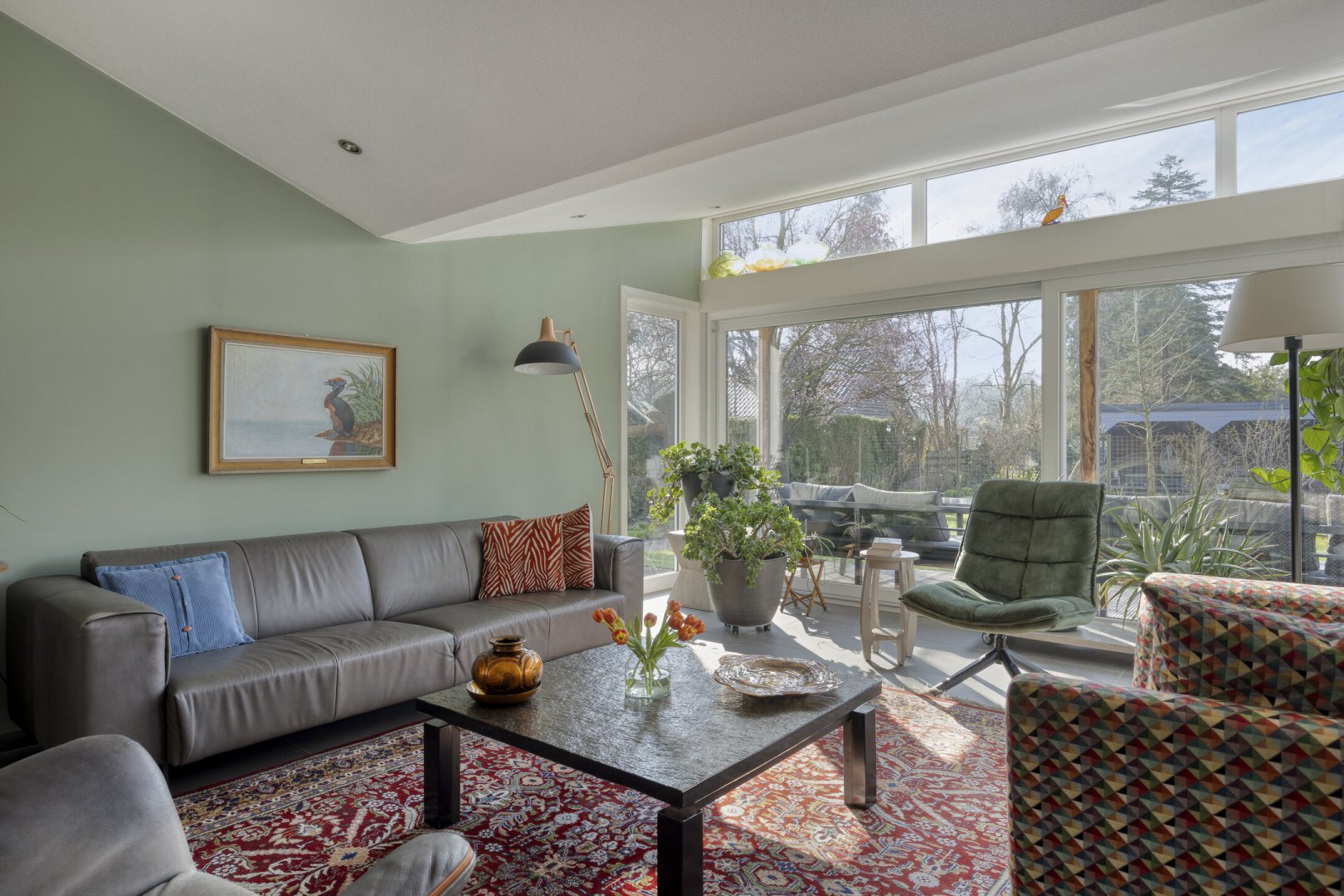 - Grotendeels kunststofkozijnwerk (HR++)