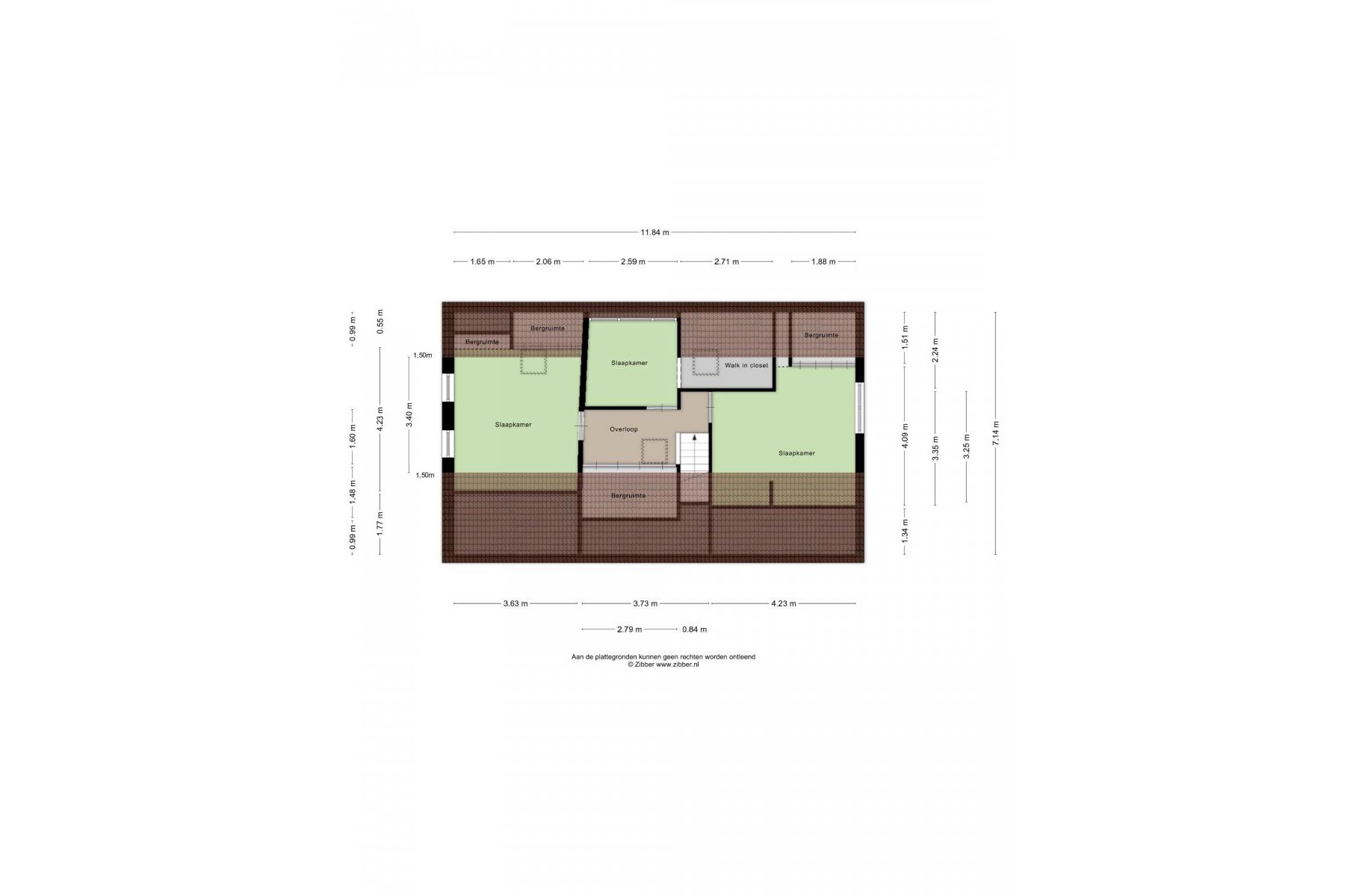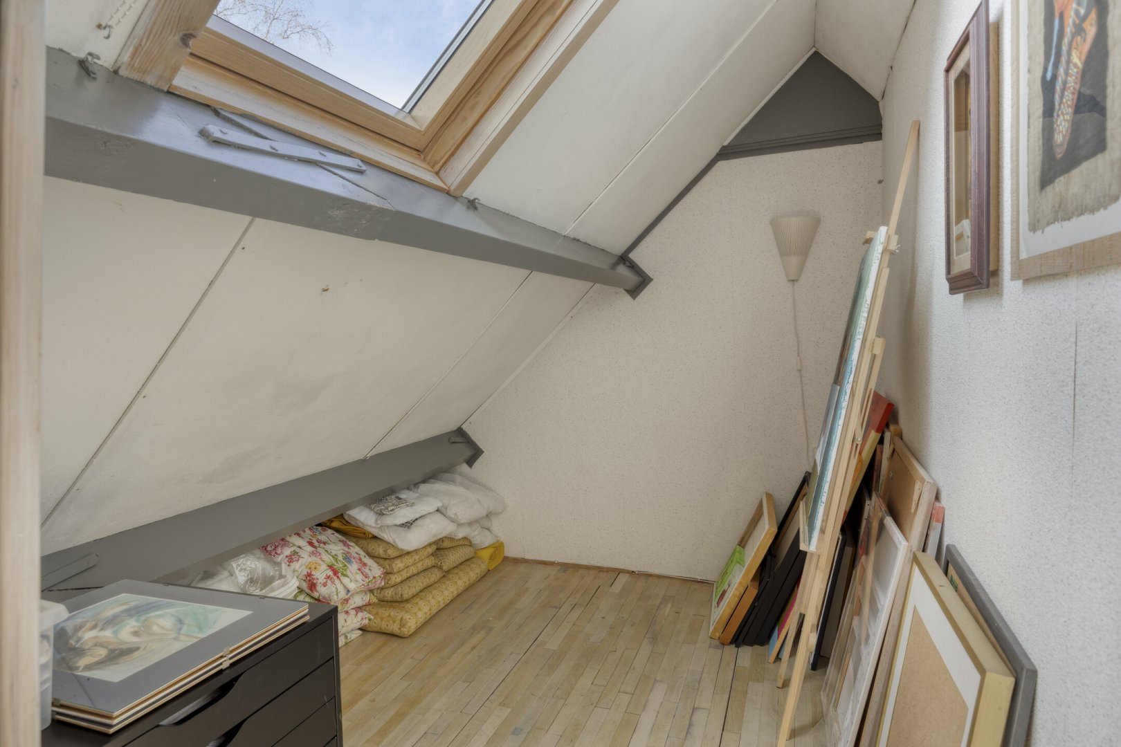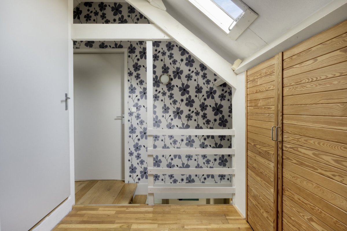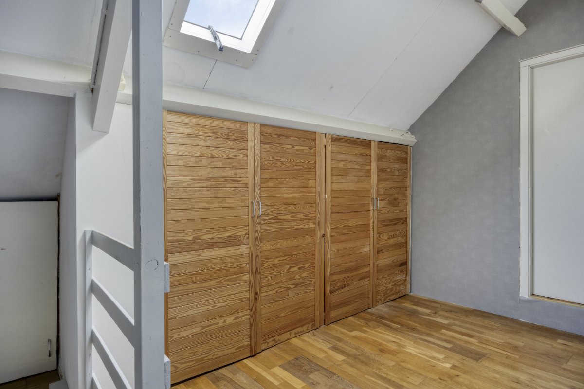 Verdieping: overloop (parketvloer), 3 slaapkamers resp. ca.3.60x3.40m, ca.4.25x4.10m en ca.2.60x2.25m met walk-in closet, diverse bergruimte.
