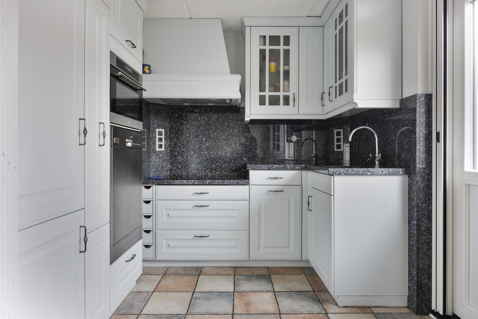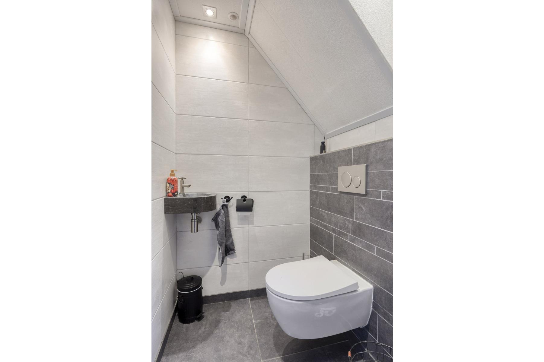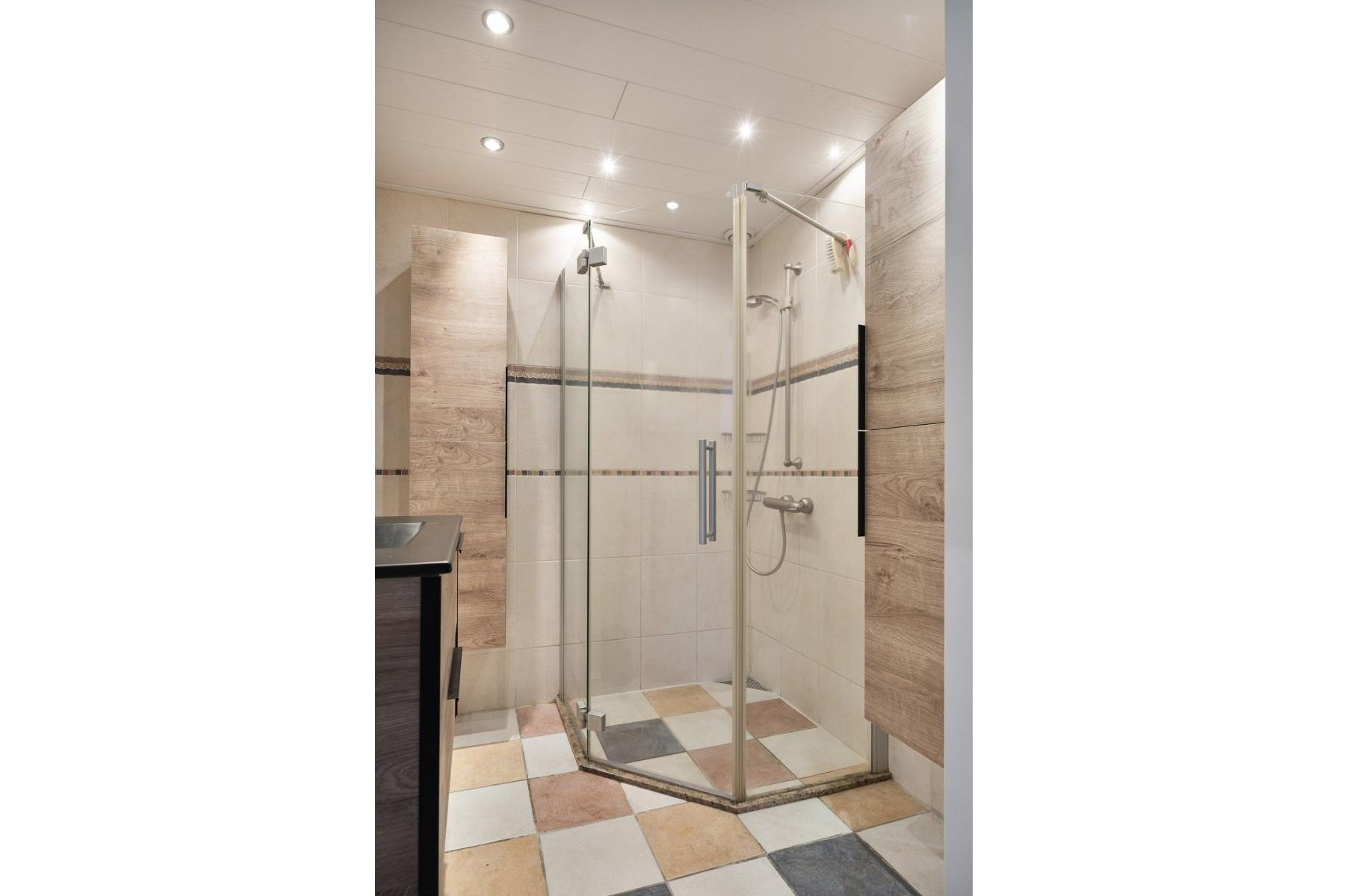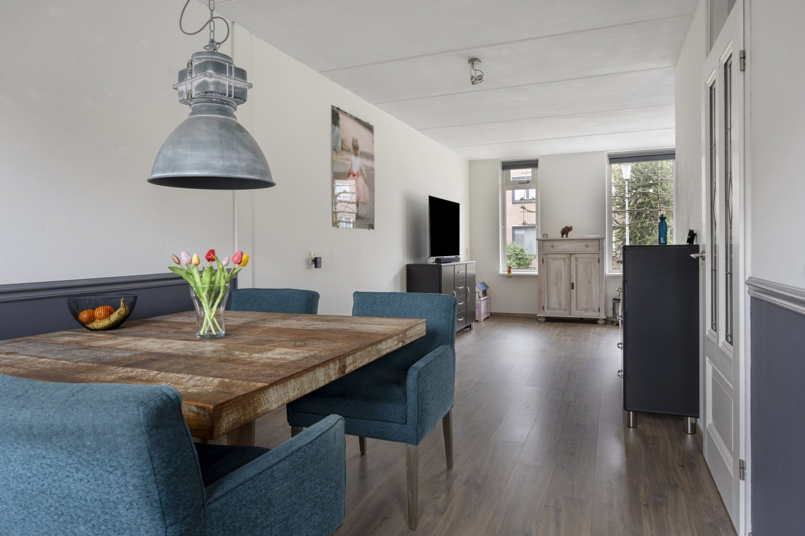 Zijentree, hal ca.4 m² met meterkast met 3 fasen aansluiting en modern hangend toilet met fontein, L-vormige woonkamer ca.25 m² met laminaatvloer, open keuken ca.6m² (plv) de keuken is voorzien van een inductie kookplaat, afzuigkap, koelkast, diepvries, combi-magnetron, vaatwasser, apothekerskast en een natuurstenen aanrechtblad, openslaande deur naar het terras en de tuin.