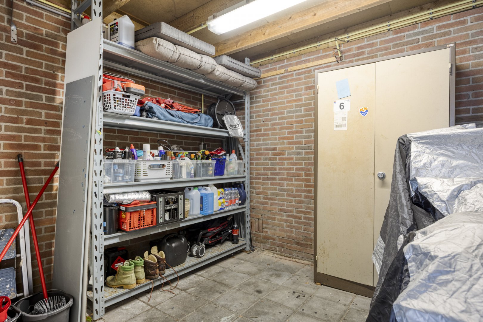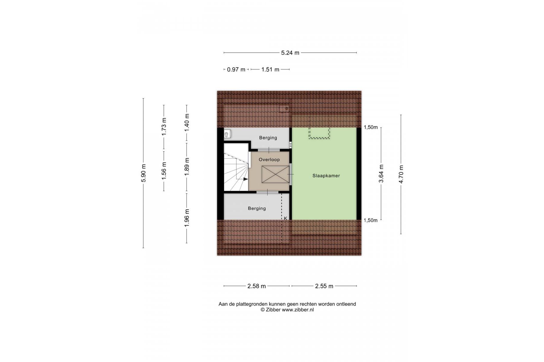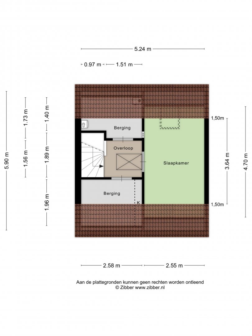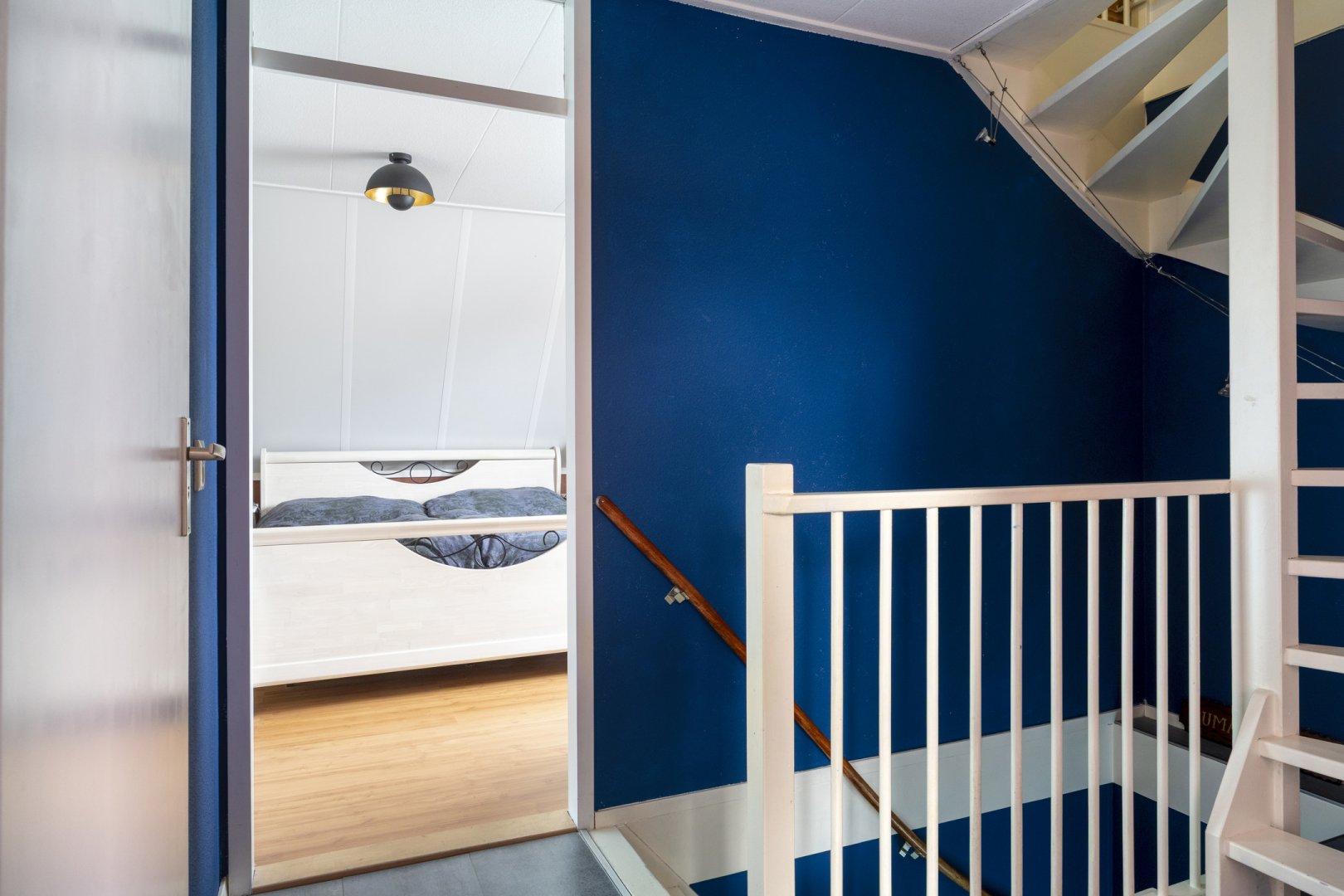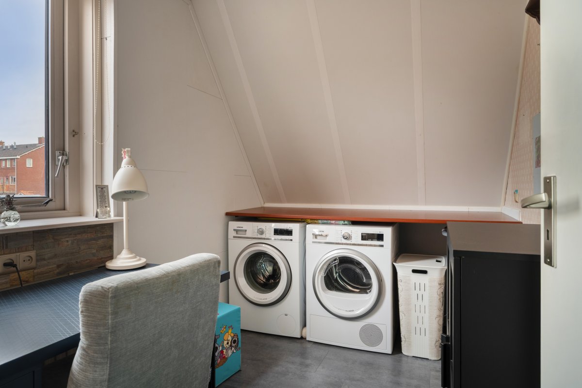 Overloop, berging, c.v. ruimte met witgoed aansluiting, zolder slaapkamer ca.3.65x2.55m, via luik naar een zolderberging.