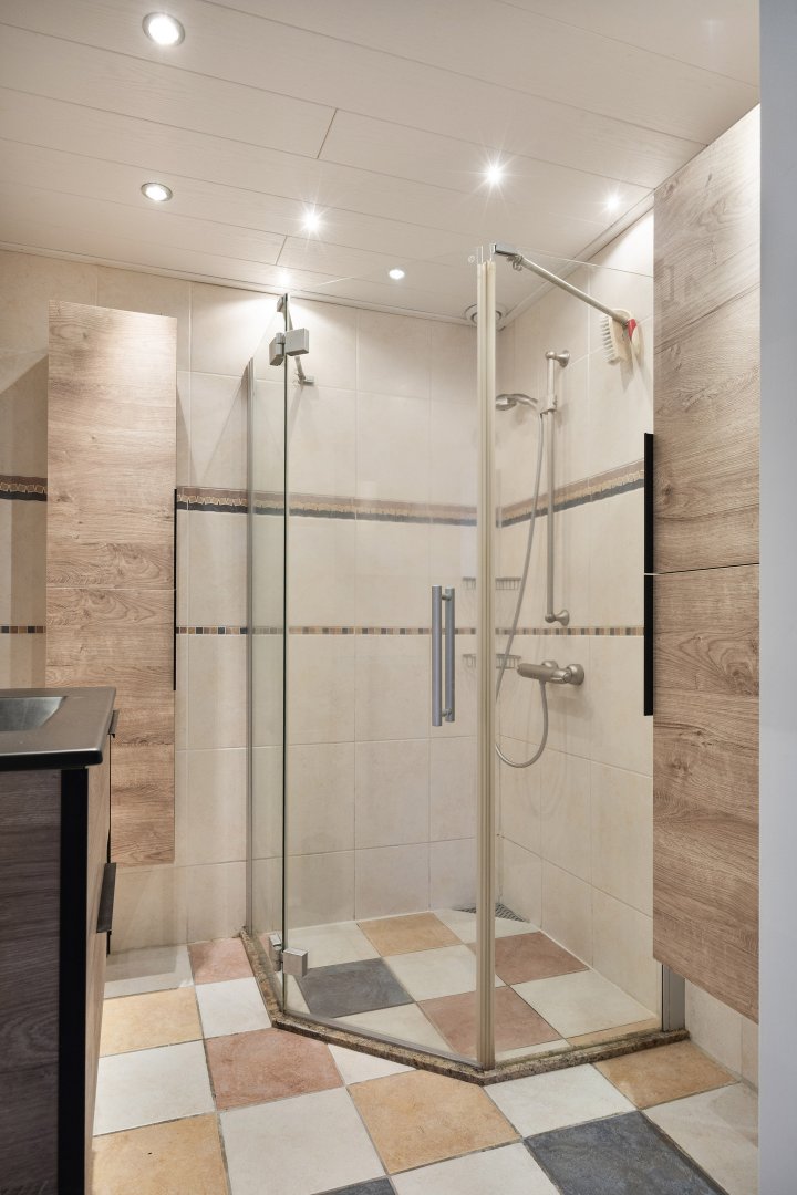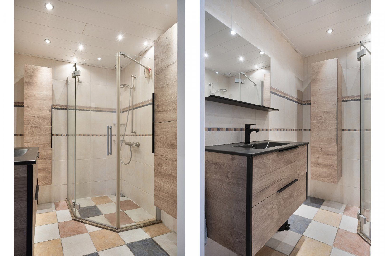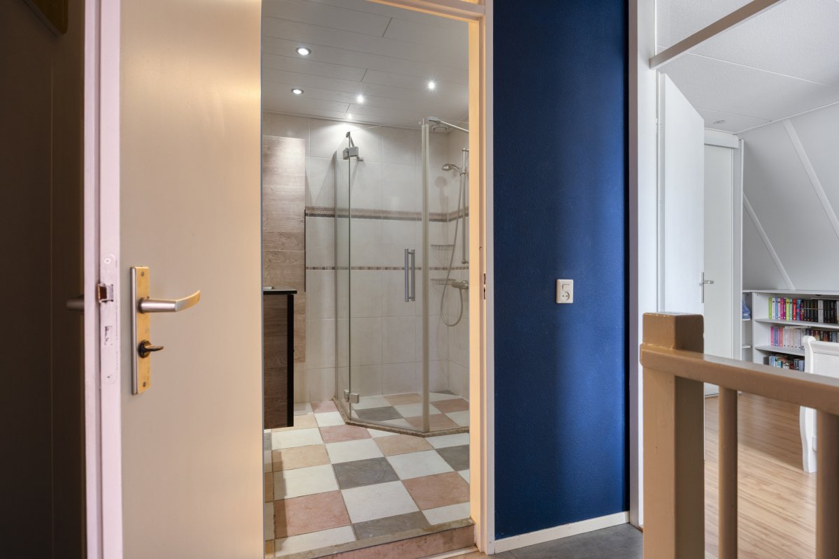 Overloop, drie slaapkamers resp. ca.5.25x3.60 met vaste kast, ca.3.00x3.00m en ca.3.00x2.05 met witgoed aansluiting, badkamer ca.1.95x1.90m met douchecabine en wastafelmeubel, via vaste trap naar....