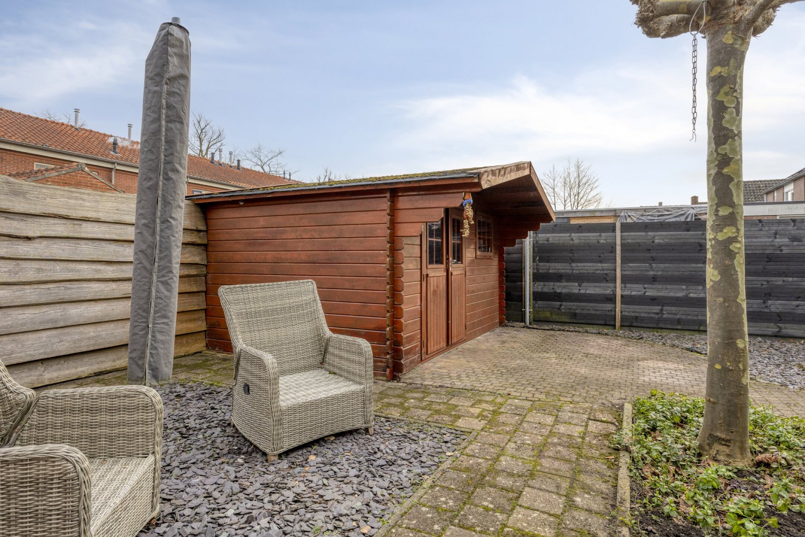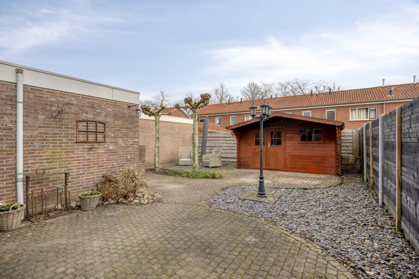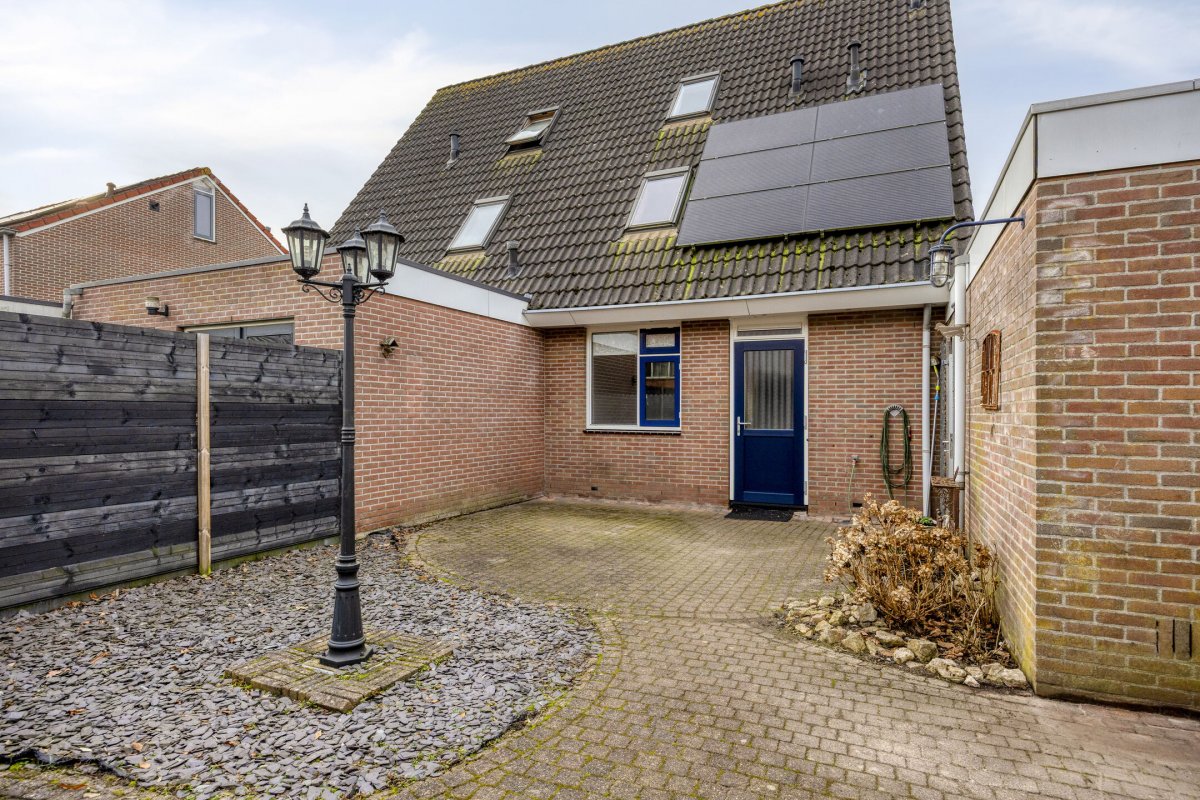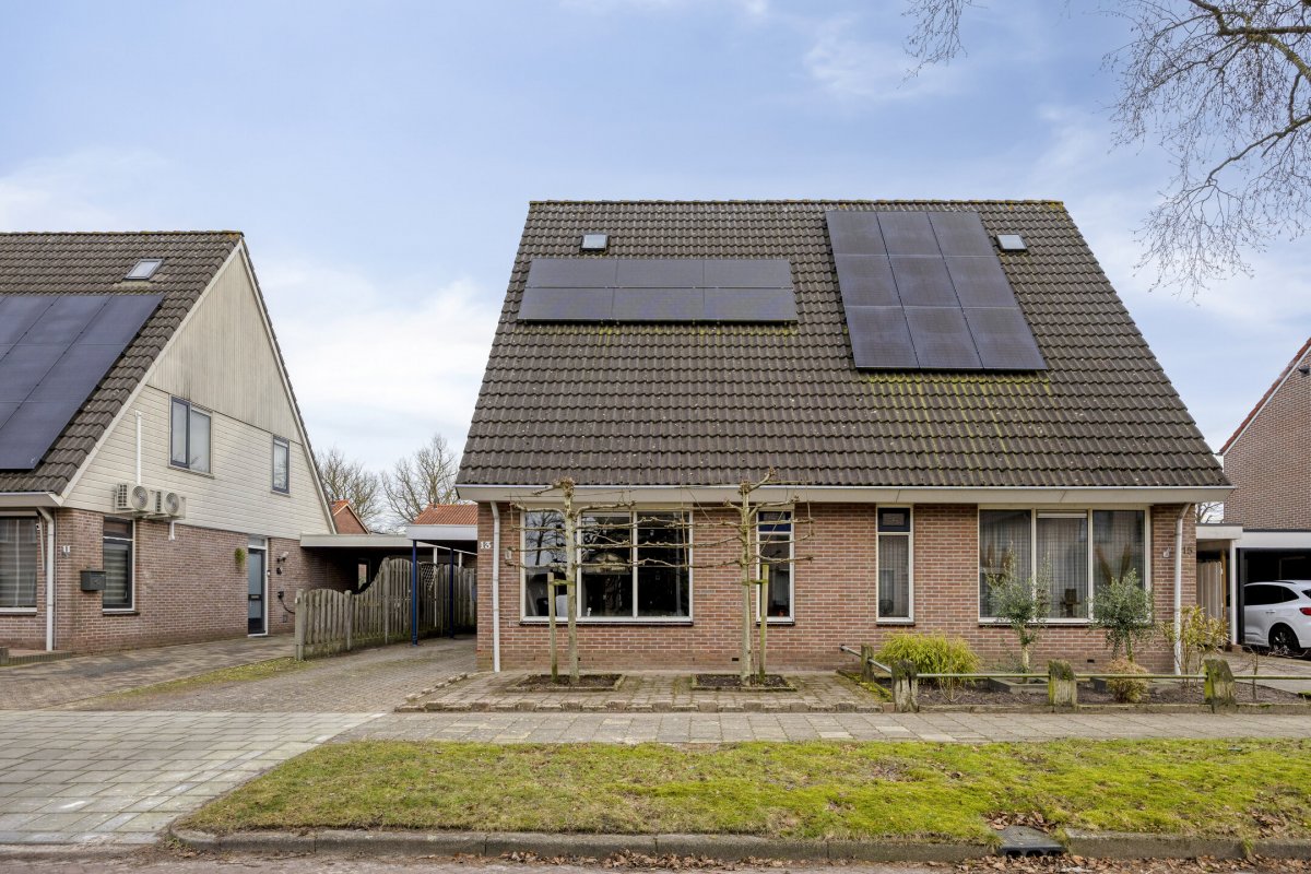 In rustige woonomgeving, nabij diverse voorzieningen gelegen goed onderhouden 2-onder-1 kapwoning met carport, stenen schuur, houten tuinhuis en tuin op het oosten.