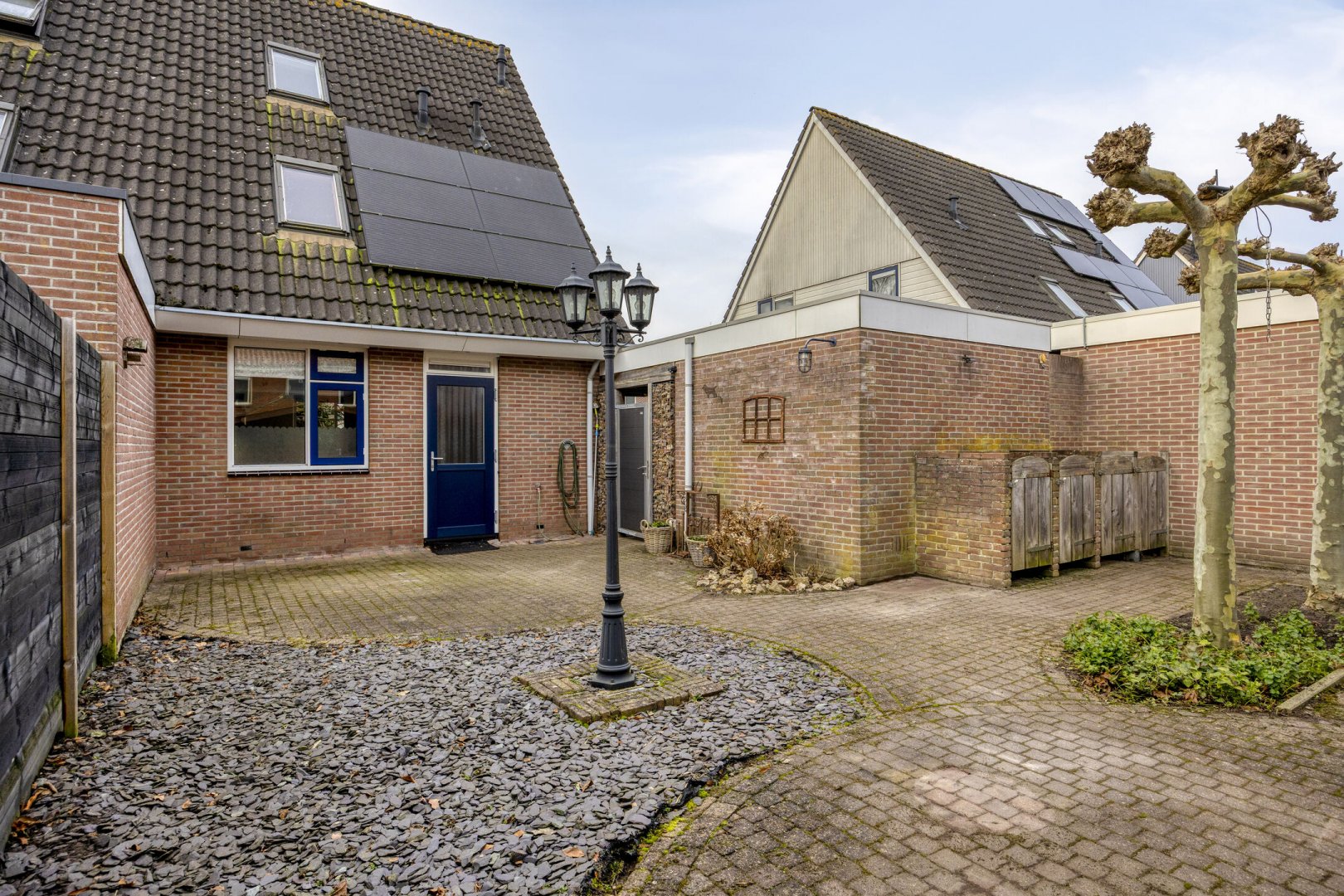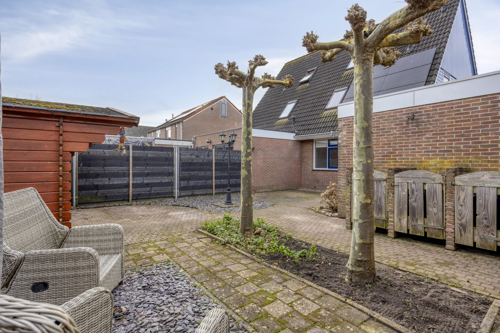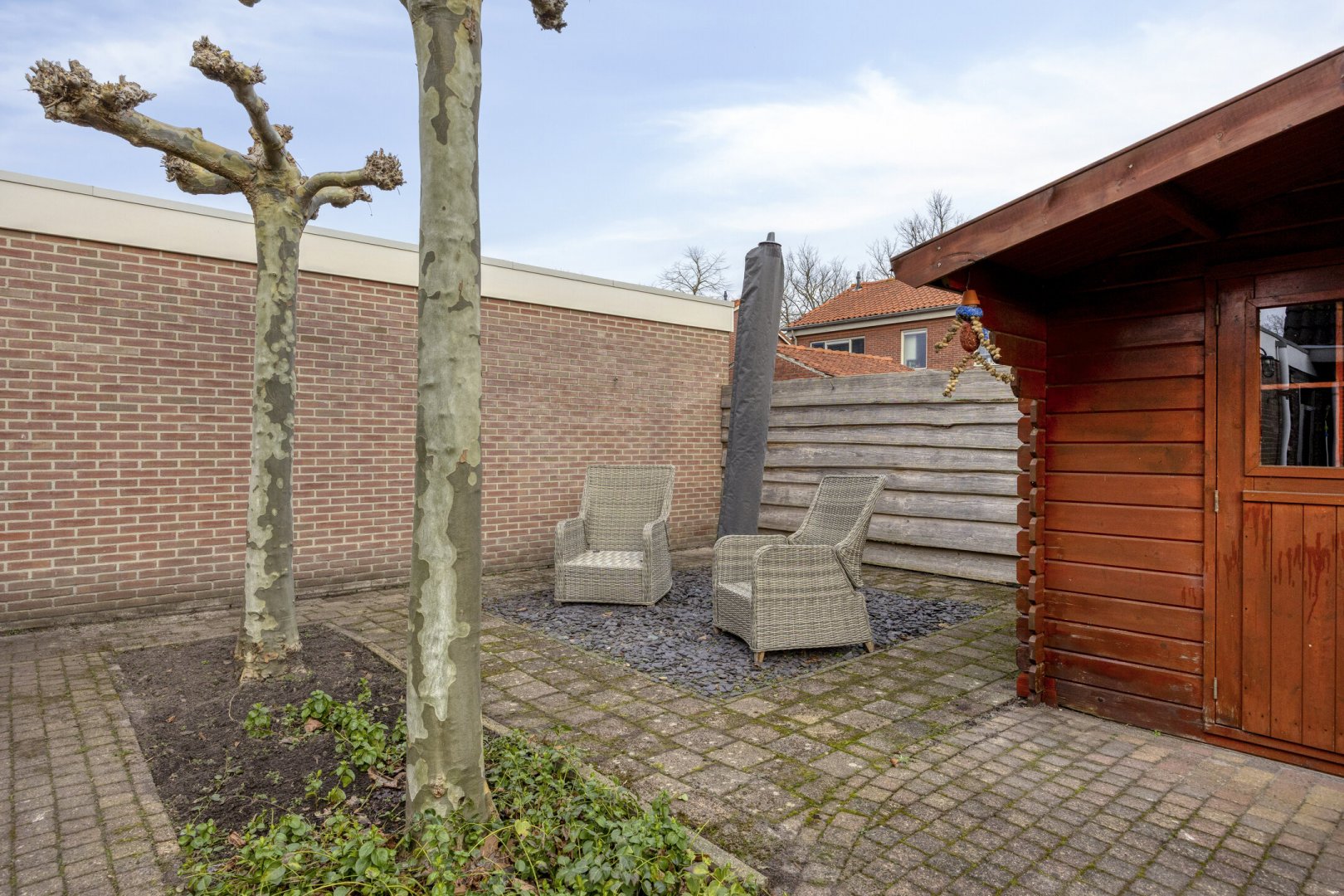 In rustige woonomgeving, nabij diverse voorzieningen gelegen goed onderhouden 2-onder-1 kapwoning met carport, stenen schuur, houten tuinhuis en tuin op het oosten.