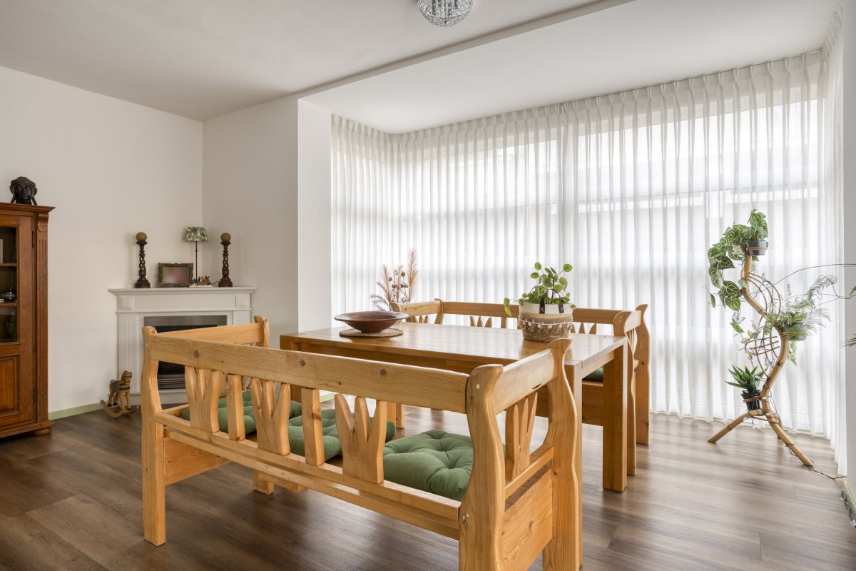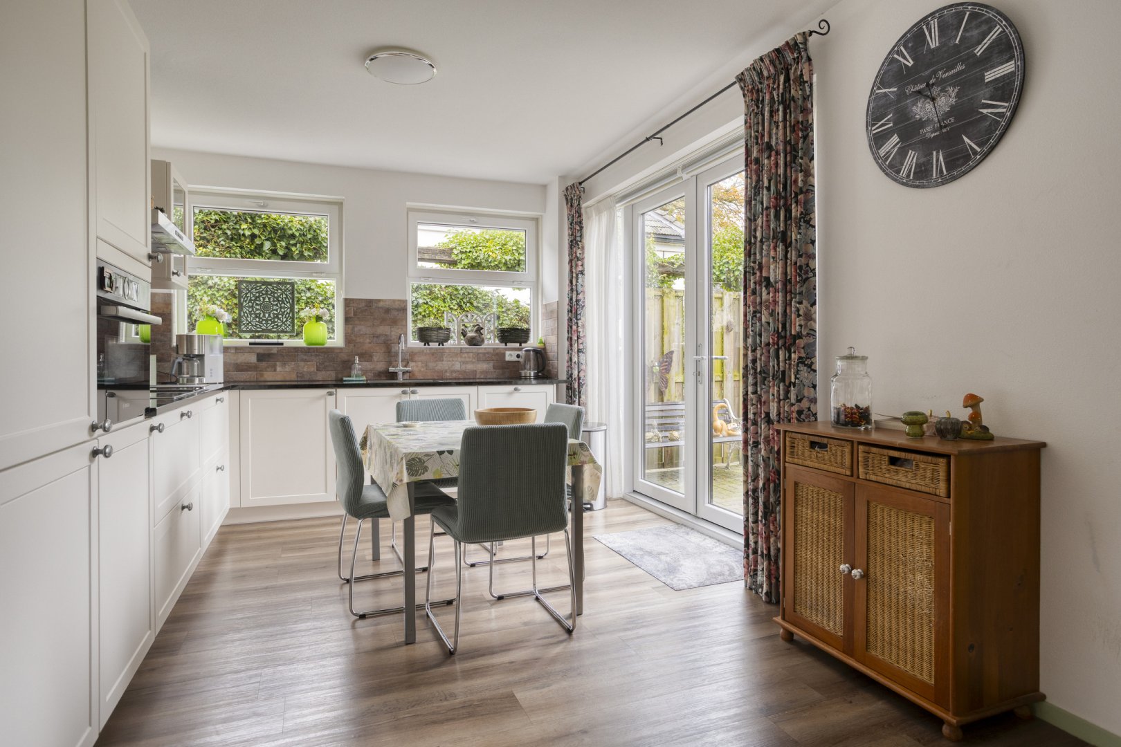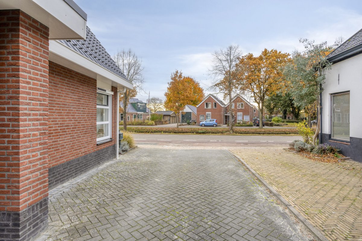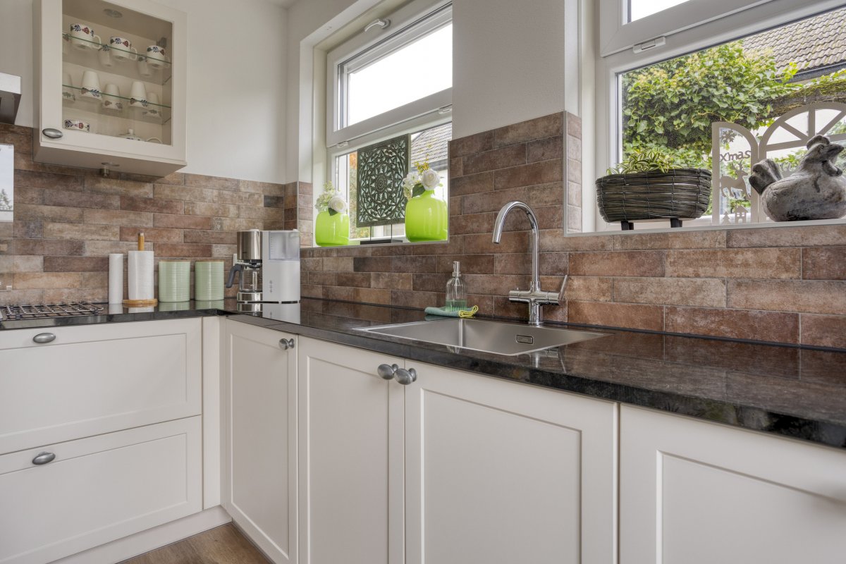 Begane grond: zijentree/hal, modern hangend toilet met fontein, een trap naar de verdieping, een ruime woonkamer ca.64m² (pvc vloer) L-vormig met 2 erkers, open keuken ca.20m² met terras deuren en een moderne hoekinbouwkeuken voorzien van inductie kookplaat, rvs afzuigkap, koelkast, combi oven, vaatwasser en hardstenen aanrechtblad, aangrenzend een royale bijkeuken ca.2.50x1.30m, achterhal, badkamer ca.2.45x2.45m met inloopdouche, wastafelmeubel en toilet en slaapkamer ca.4.20x3.75m met terrasdeuren.