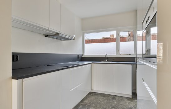 Entree, hal, hangend toilet, trapkast, de woonkamer van ca.30m² heeft veel lichtinval, vrij uitzicht en openslaande deuren naar het dakterras. De moderne open hoekkeuken (2024) van ca.6m² is voorzien van inductie kookplaat, koelkast, vaatwasser, wasemkap, magnetron en wasmachineaansluiting.