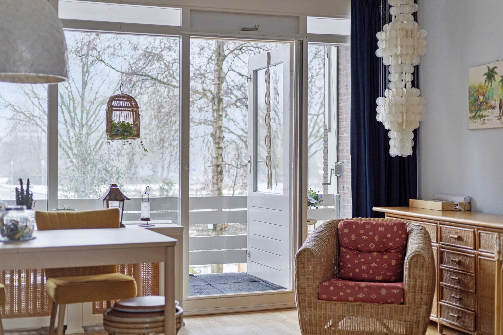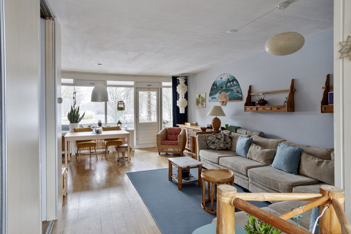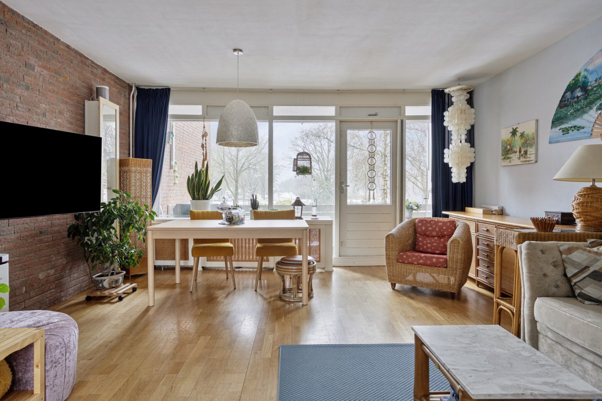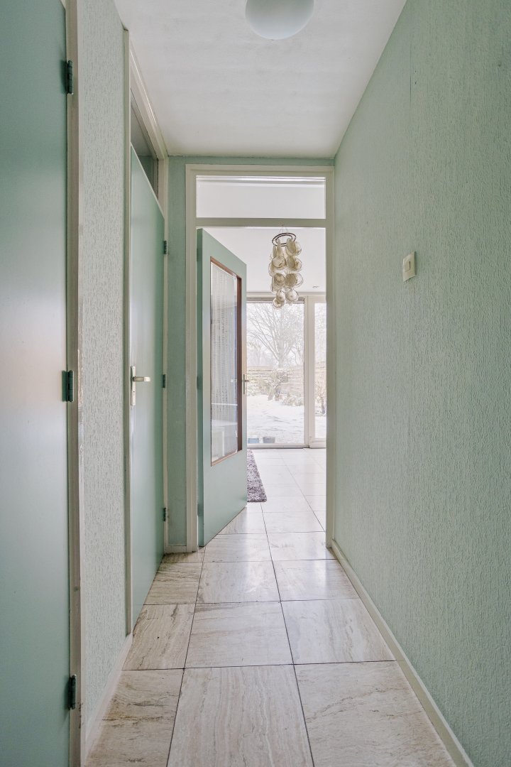 Met fraai uitzicht, op korte afstand van natuur- en recreatiegebied 'Borgerswold' en nabij het centrum gelegen riante verspringende drive-in woning met inpandige garage, balkon en beschutte tuin op het zuiden.