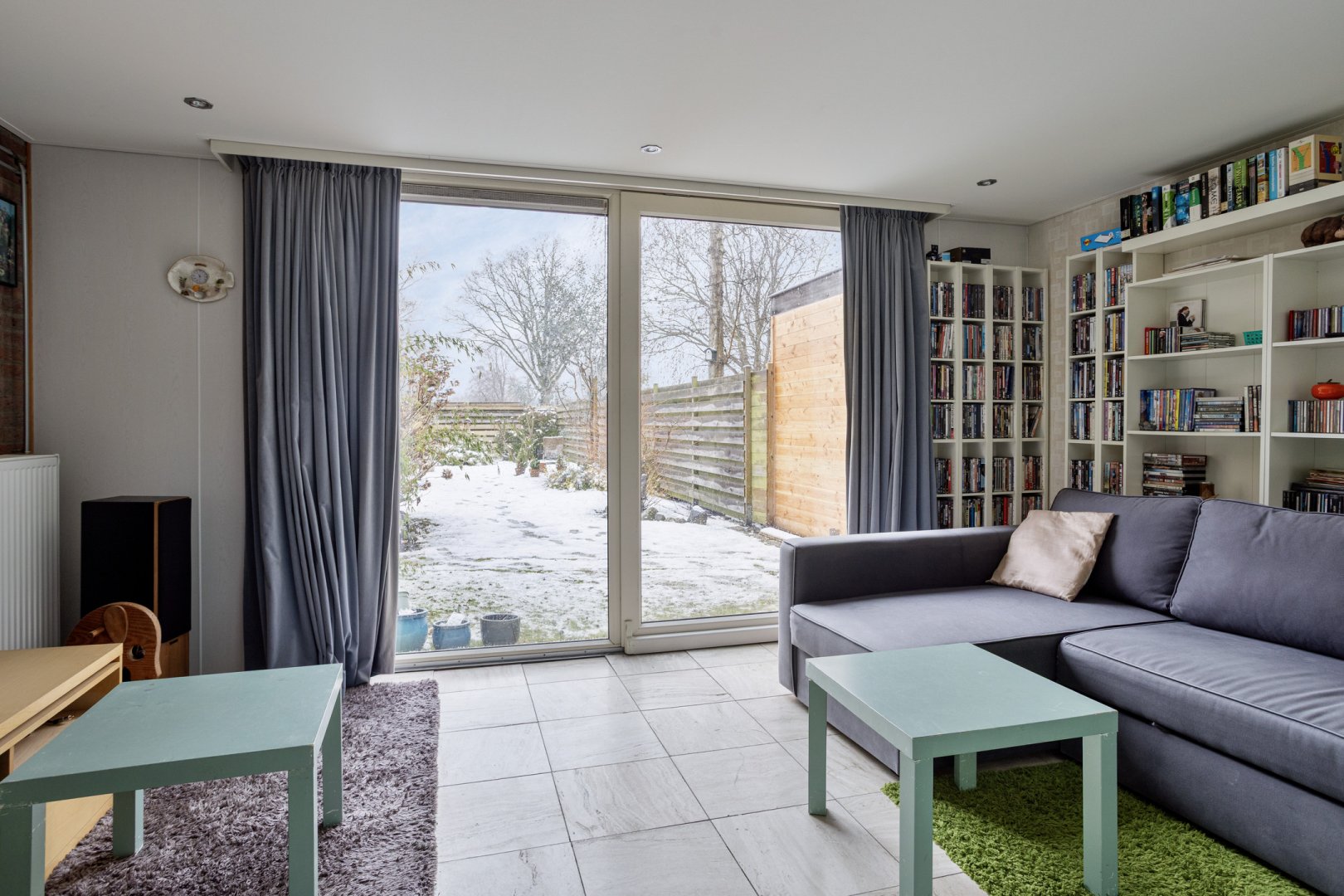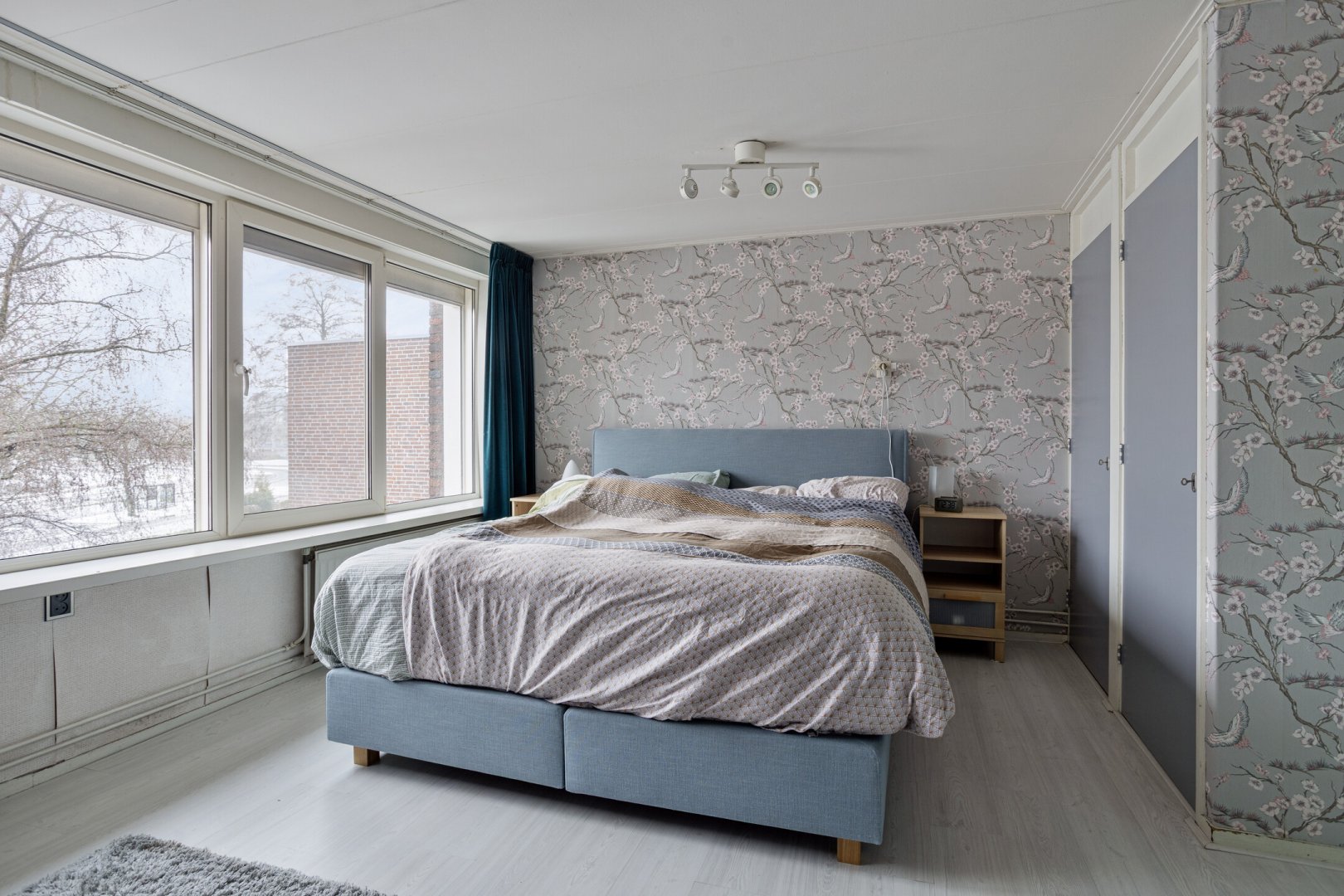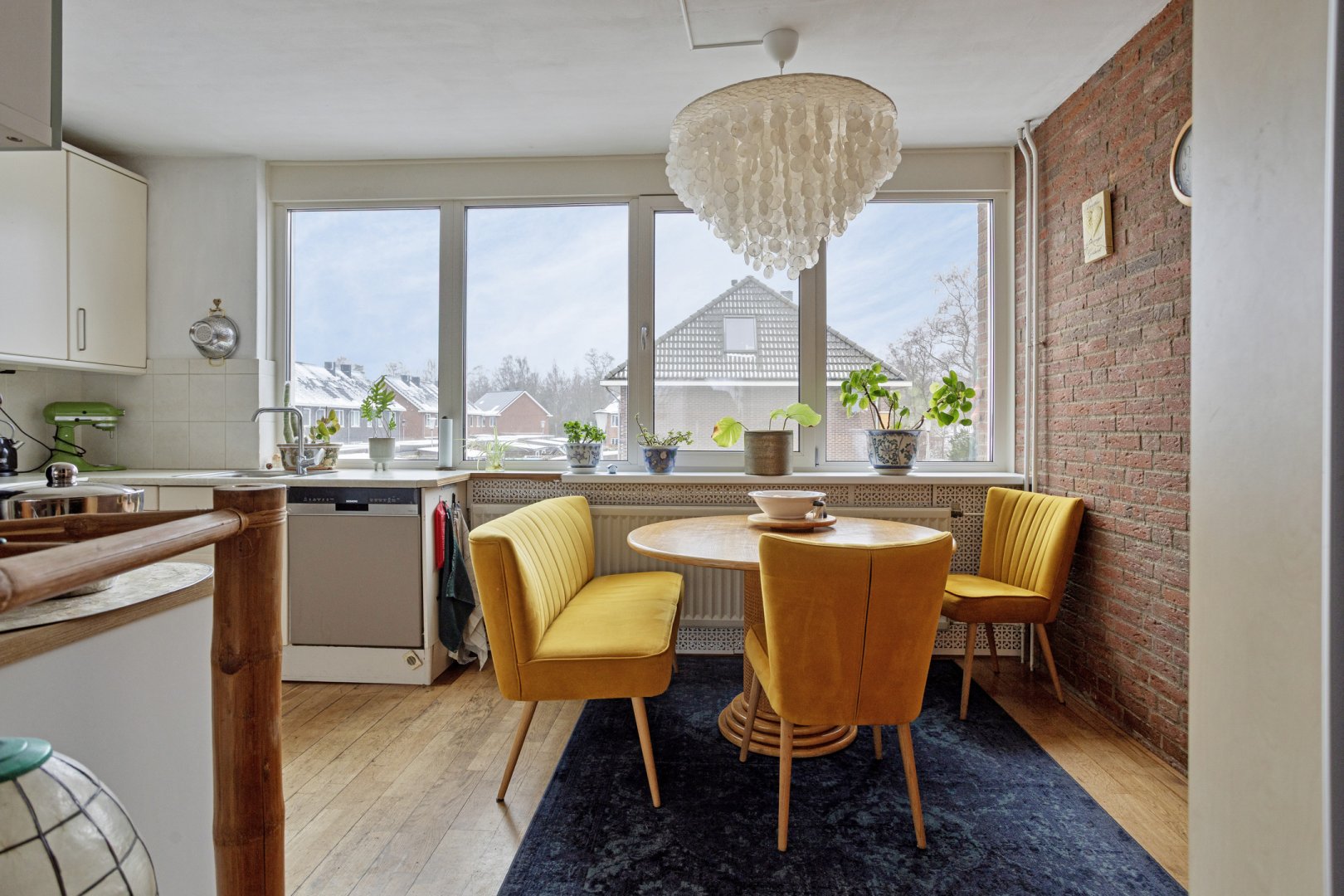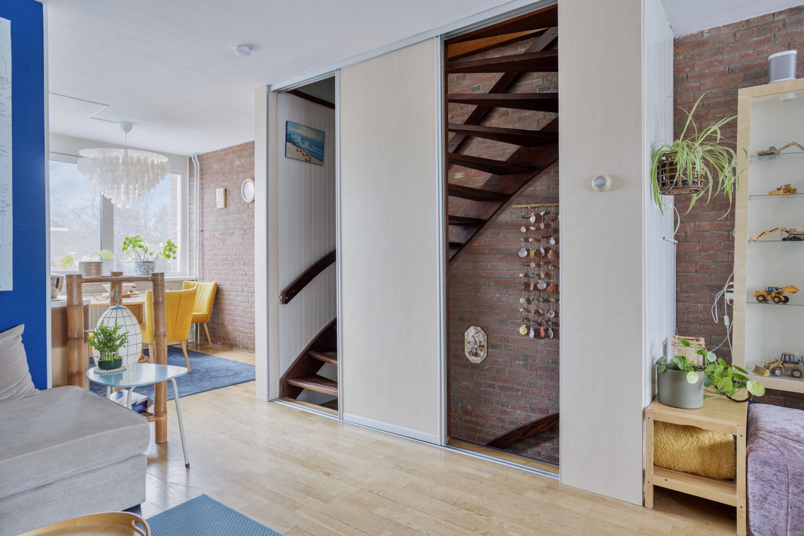 Met fraai uitzicht, op korte afstand van natuur- en recreatiegebied 'Borgerswold' en nabij het centrum gelegen riante verspringende drive-in woning met inpandige garage, balkon en beschutte tuin op het zuiden.