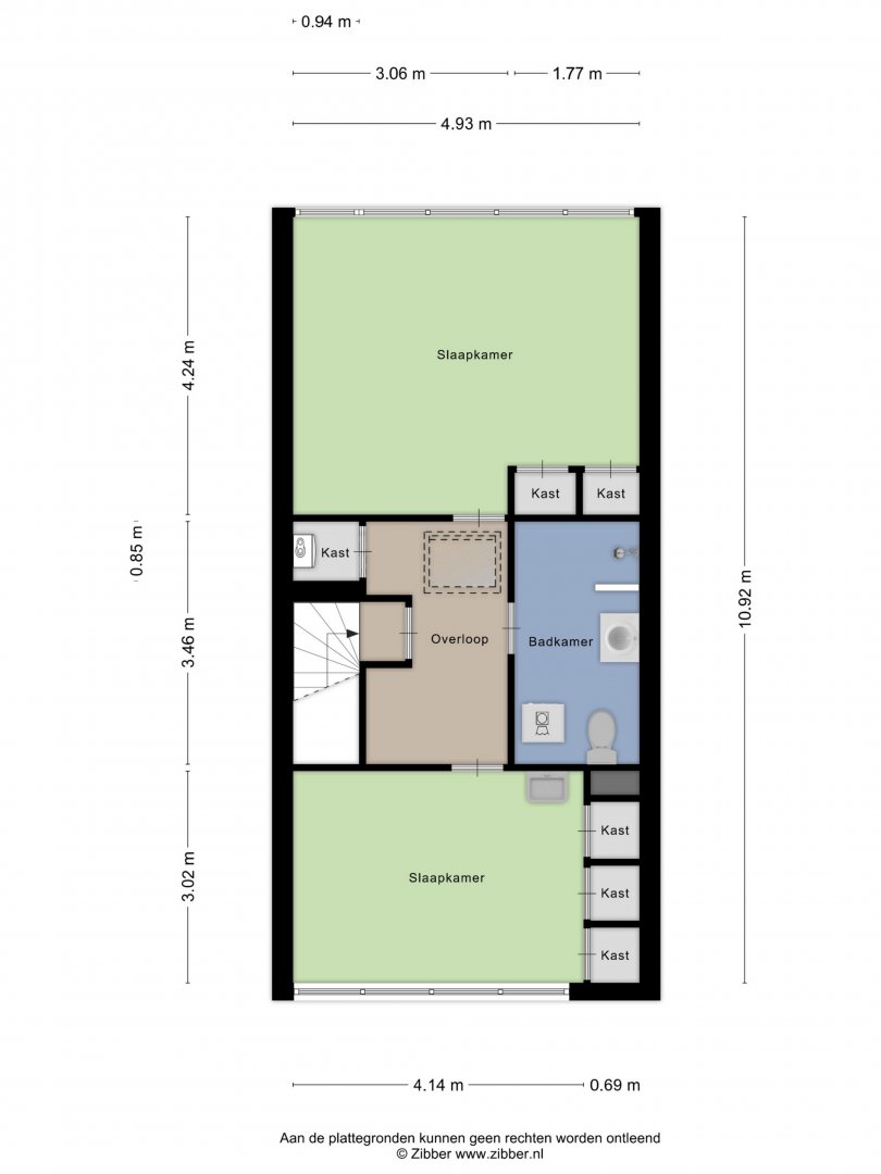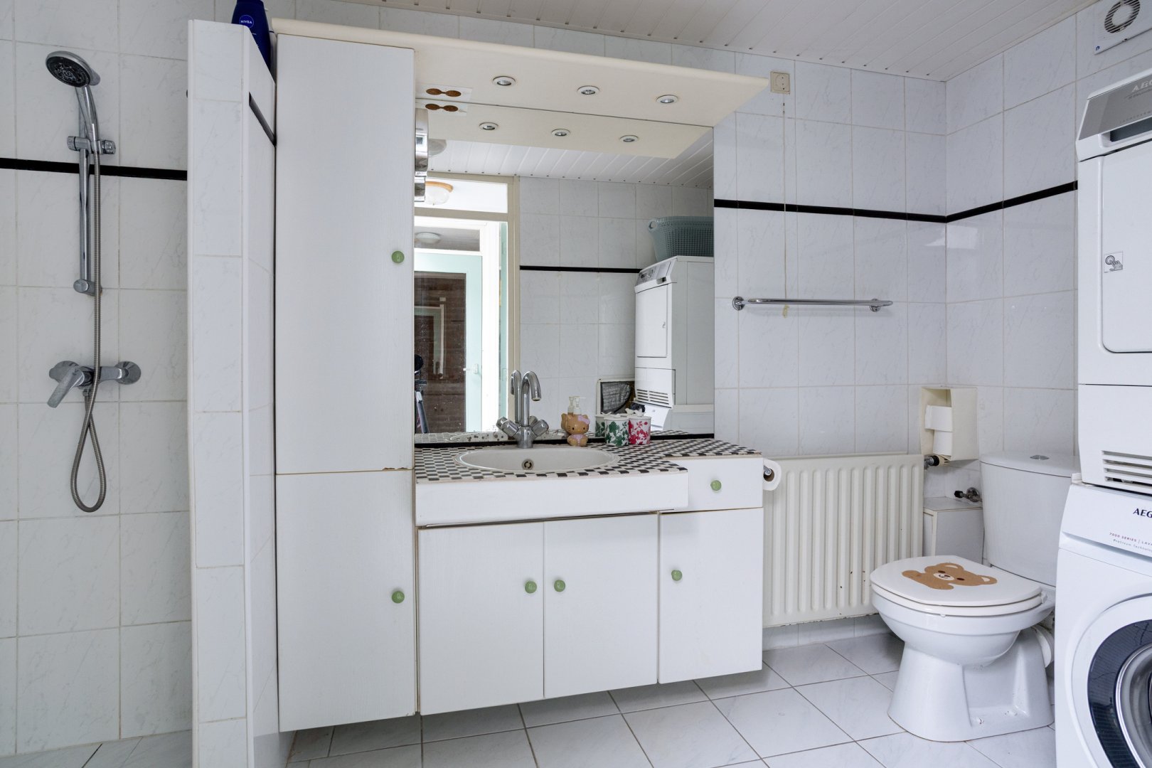 2e Verdieping: overloop, c.v. kast, slaapkamer resp. ca.21m² met inbouwkasten, slaapkamer ca.15m² met wastafel, badkamer ca.1.75x3.45m met douche, wastafelmeubel en 2e toilet.