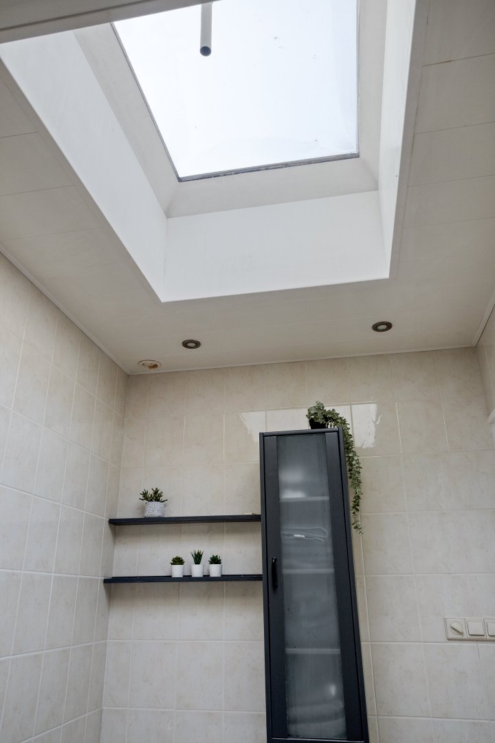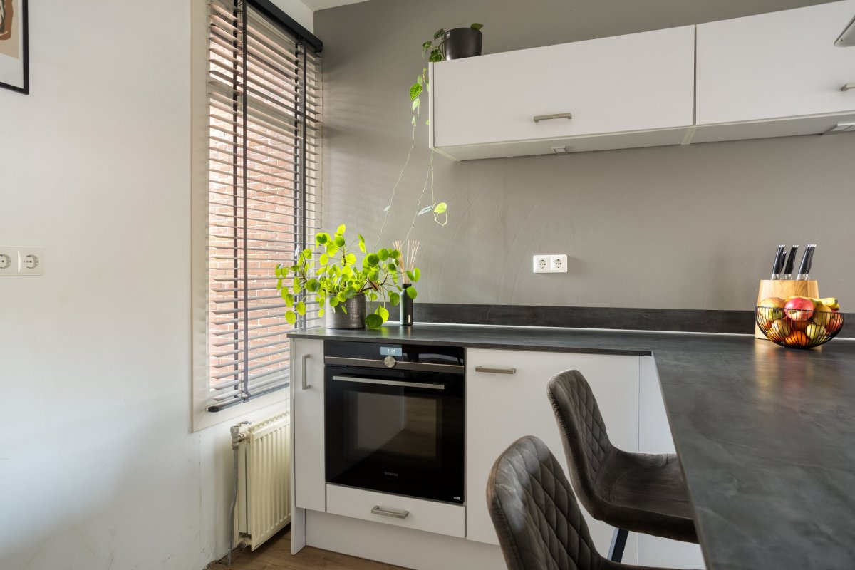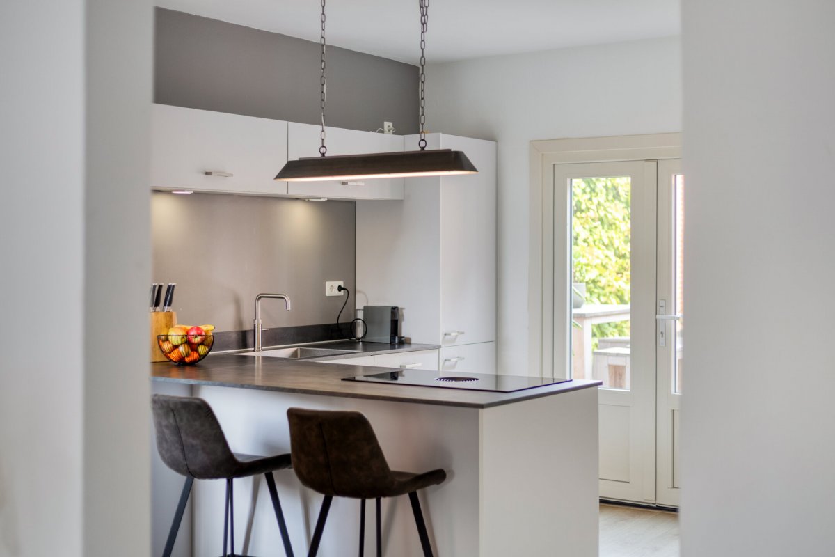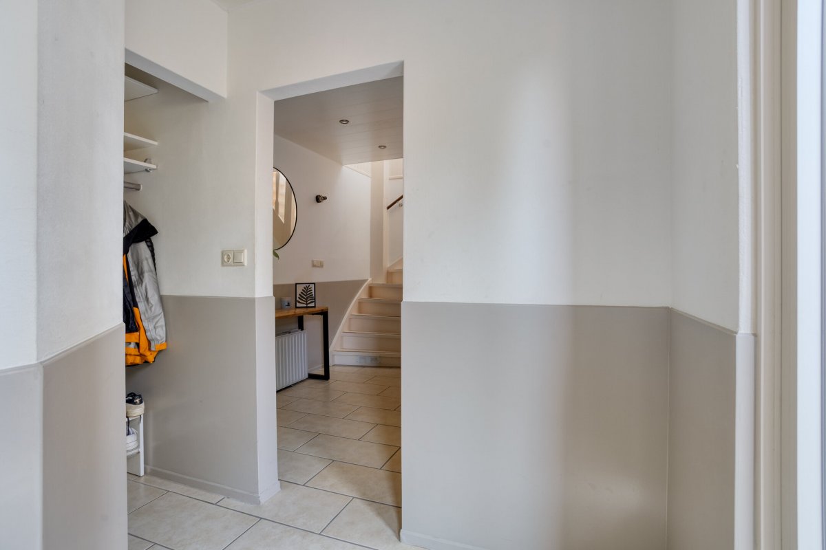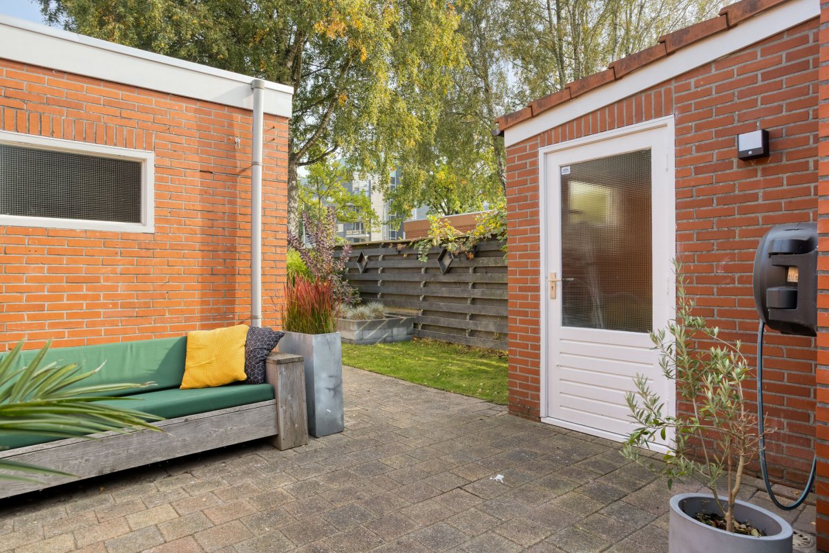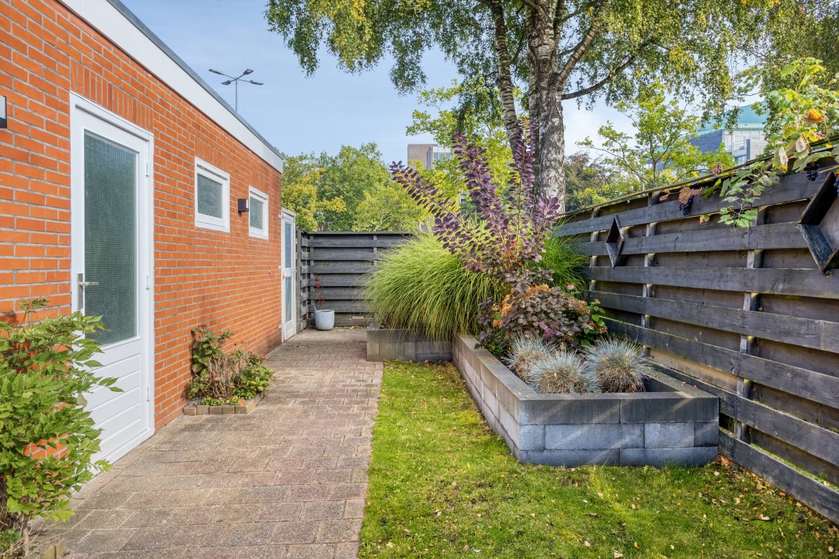 Indeling: Achterentree/hal (plavuizen) met vloerverwarming, garderobenis, hangend toilet met fonteintje en vloerverwarming, woonkamer ca. 25m (laminaatvloer), woonkeuken ca. 4.50x3.25m (laminaatvloer) met provisieruimte, openslaande terrasdeuren en lichte inbouwkeuken (2020) met semi-kookeiland voorzien van een inductie kookplaat met afzuiging (Bora), electrische combi-oven, vaatwasser, koelkast, vriezer en Quooker, bijkeuken (ca. 5m²) met vaste kastenwand, separate ruimte met witgoedaansluiting, c.v.-opstelling, royale licht betegelde badkamer met vloerverwarming en lichtkoepel, daarnaast een ligbad, aparte doucheruimte en een badkamermeubel met dubbele wastafel.
