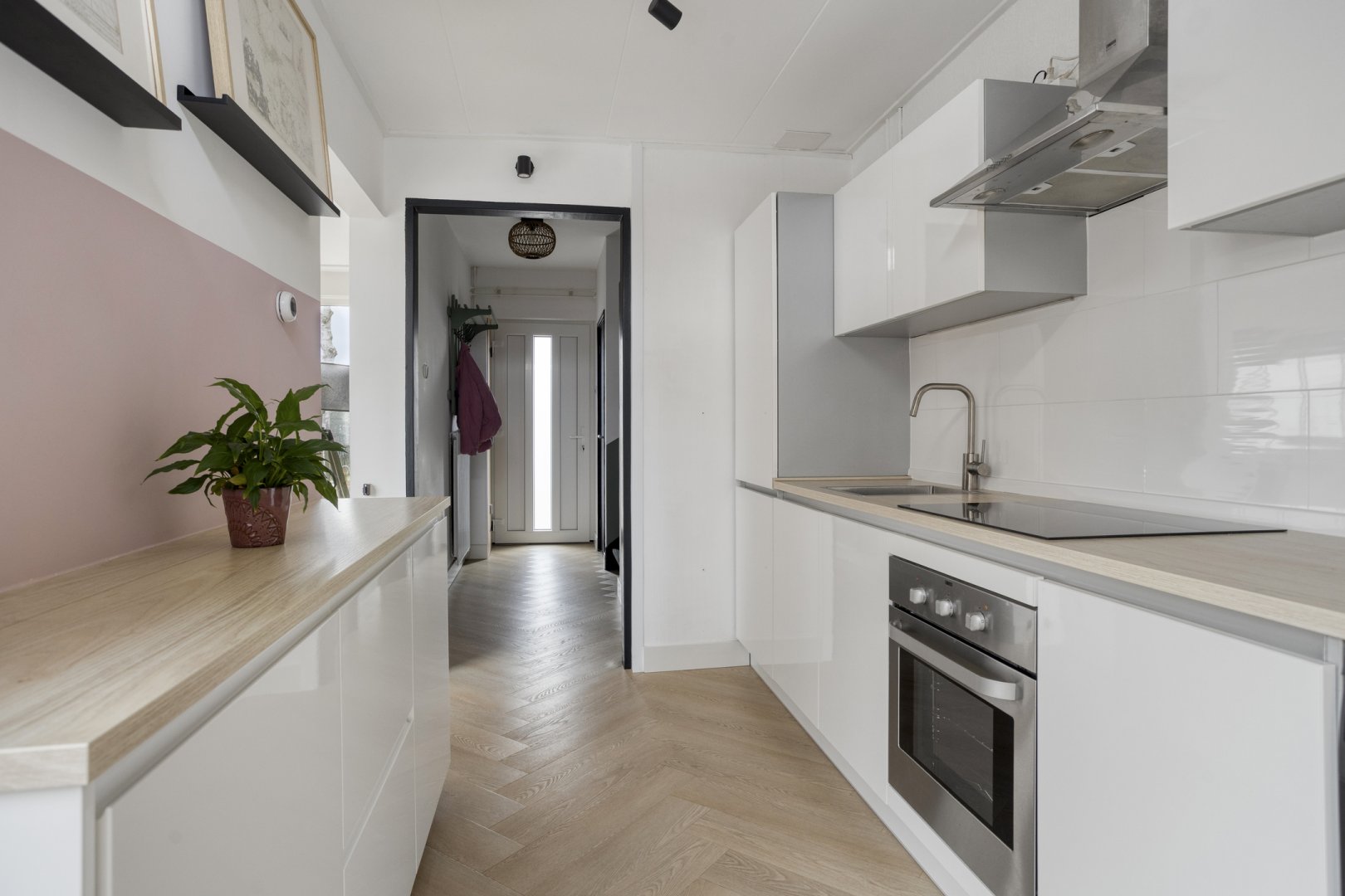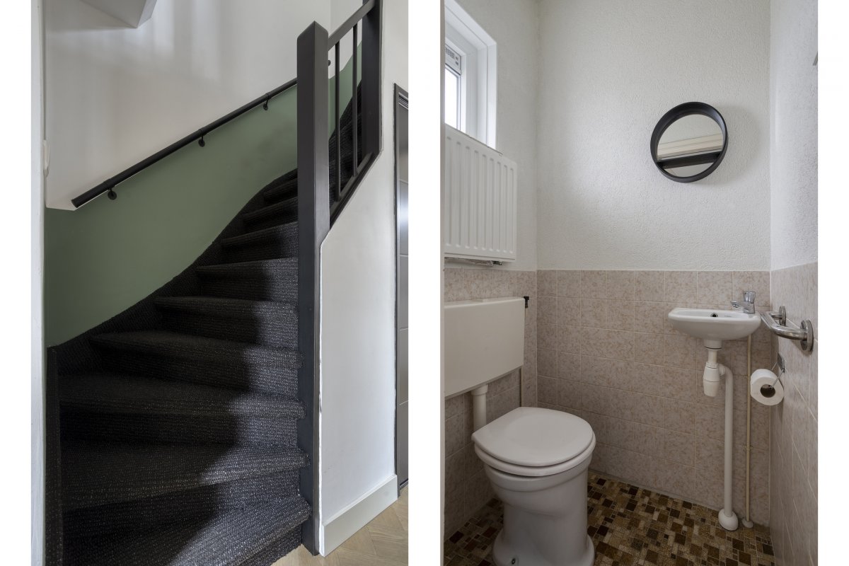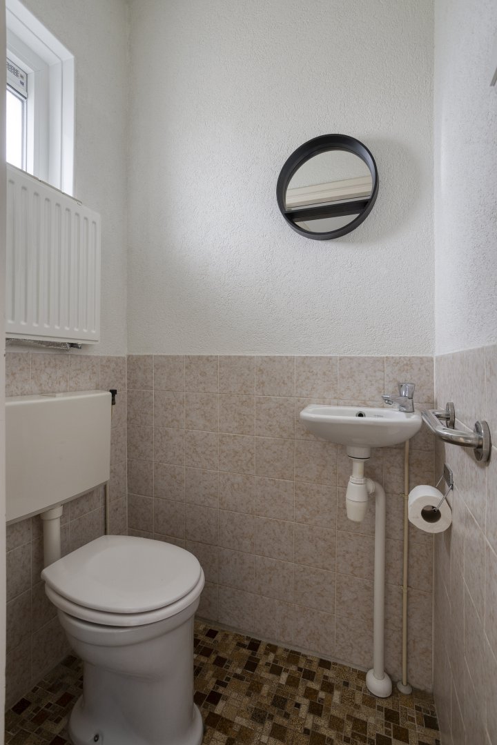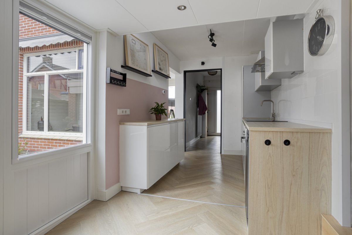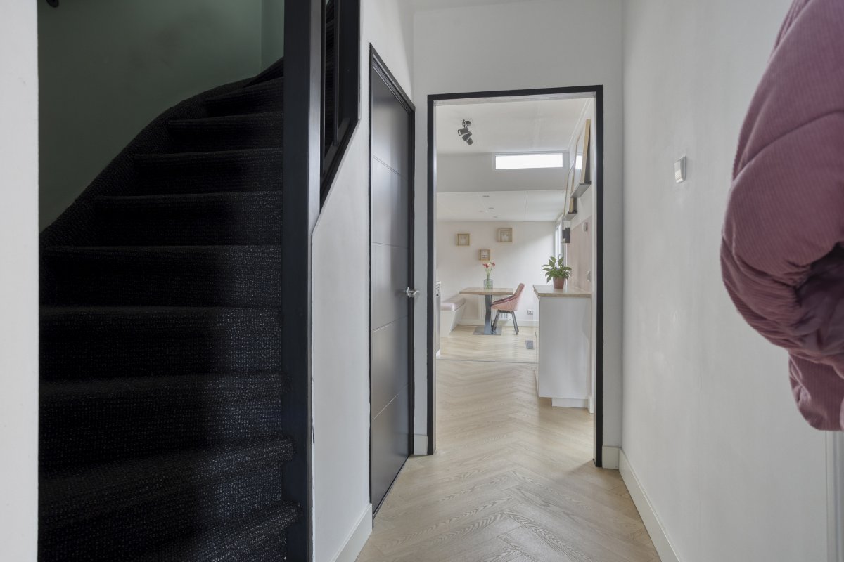 Indeling: Entree/hal, toilet met fontein, toegang tot de provisiekelder, woonkamer ca.5.65x3.60m met pvc vloer (nieuwe radiatoren), nette lichte woonkeuken ca.6.95x2.40m (pvc vloer) met inbouwkeuken voorzien van inductie kookplaat, rvs afzuigkap, oven en koelkast, toegang tot de buitenruimte.