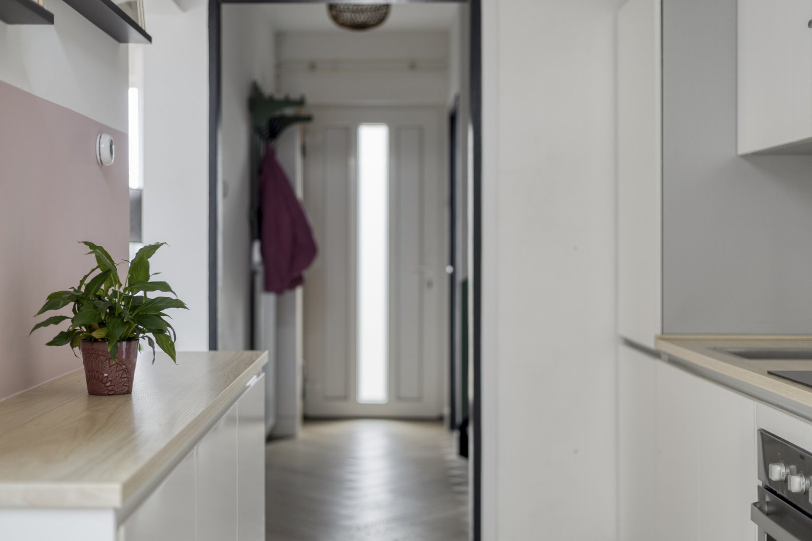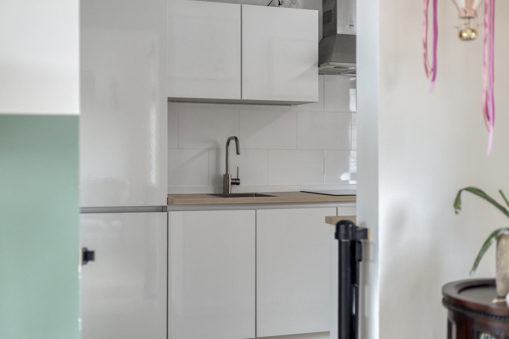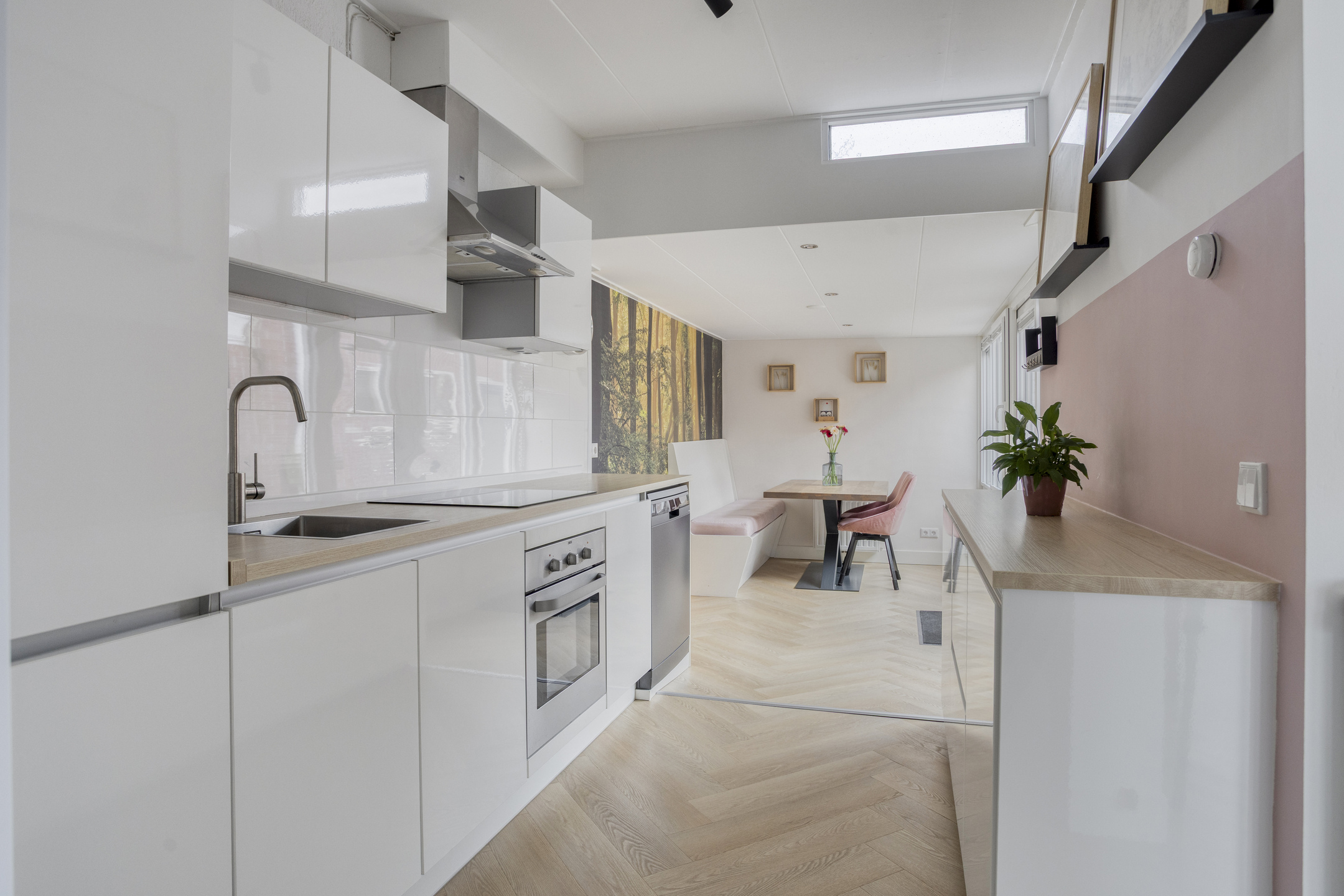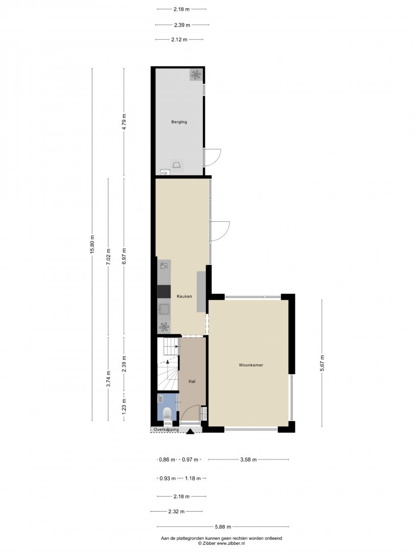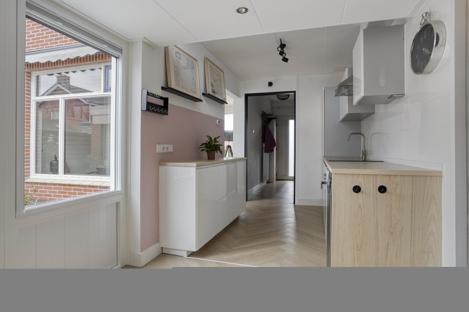 Indeling: Entree/hal, toilet met fontein, toegang tot de provisiekelder, woonkamer ca.5.65x3.60m met pvc vloer (nieuwe radiatoren), nette lichte woonkeuken ca.6.95x2.40m (pvc vloer) met inbouwkeuken voorzien van inductie kookplaat, rvs afzuigkap, oven en koelkast, toegang tot de buitenruimte.