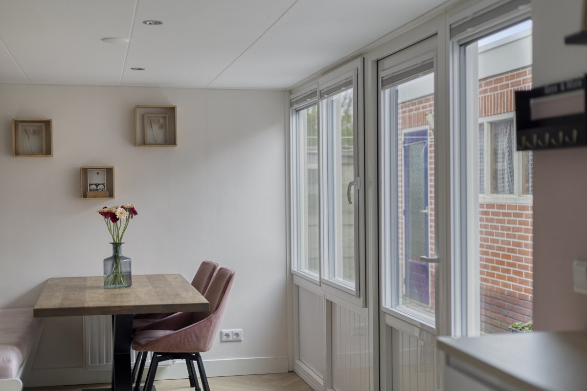 - Gedeeltelijk voorzien van kunststof kozijnen met HR++ glas
